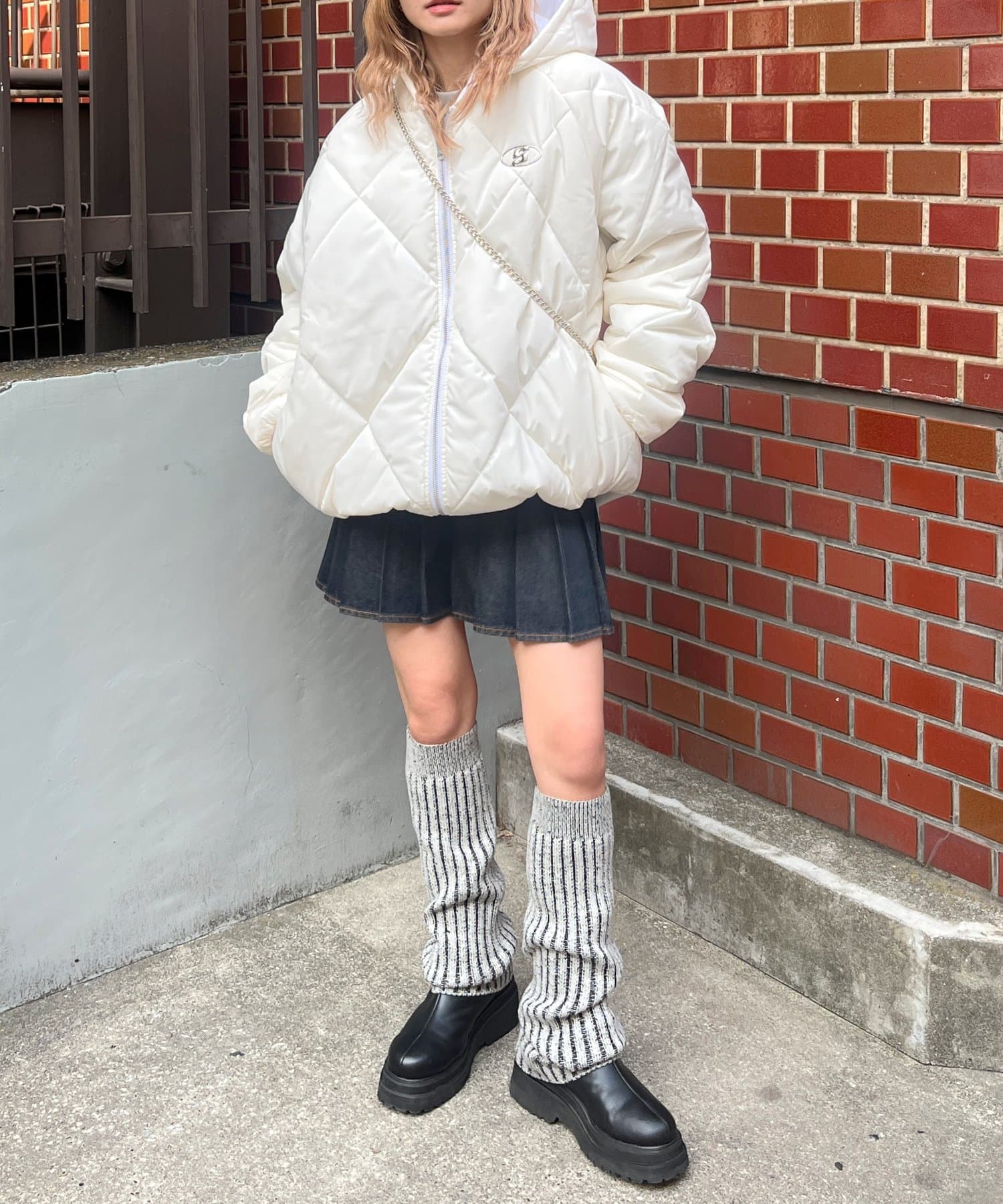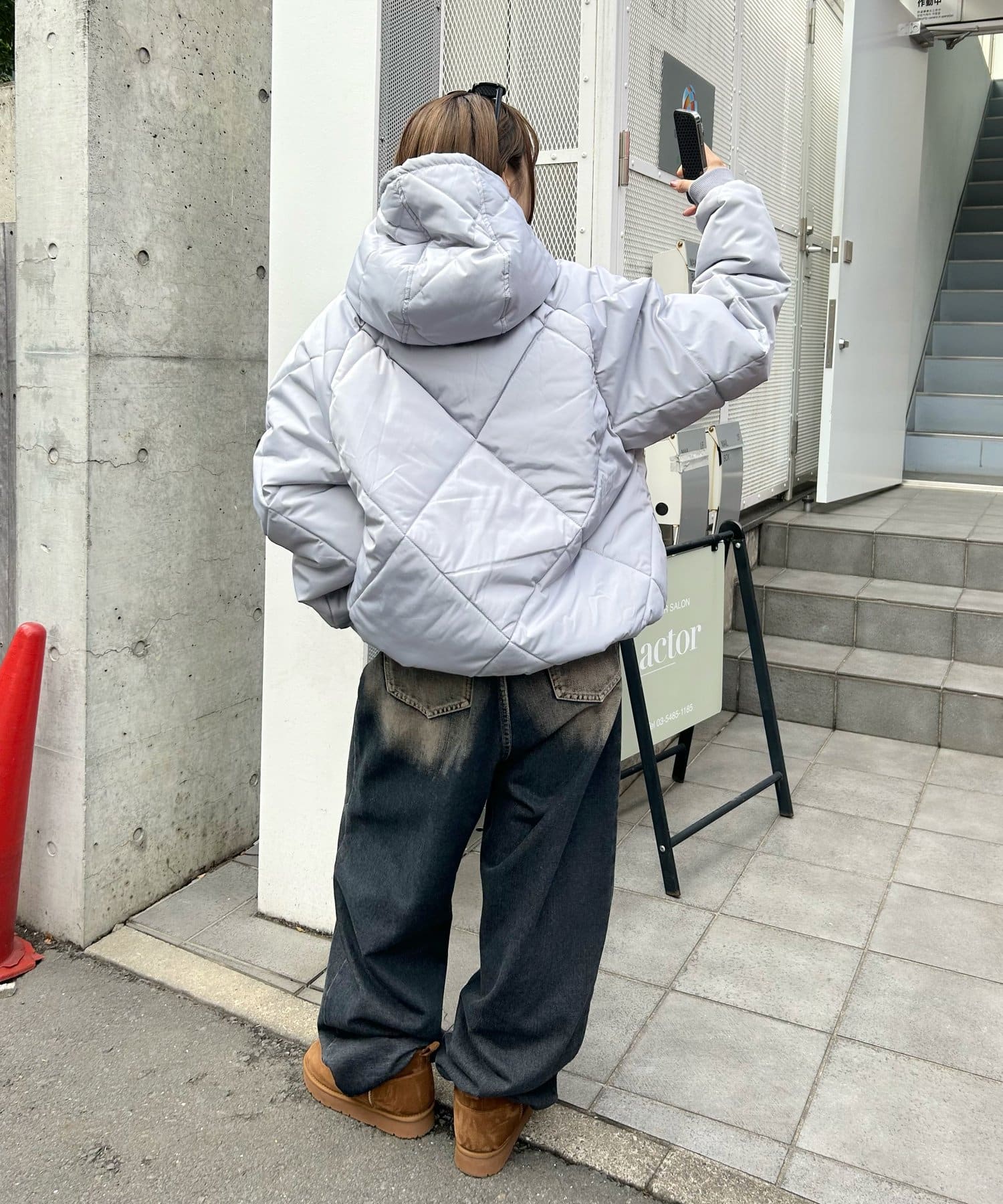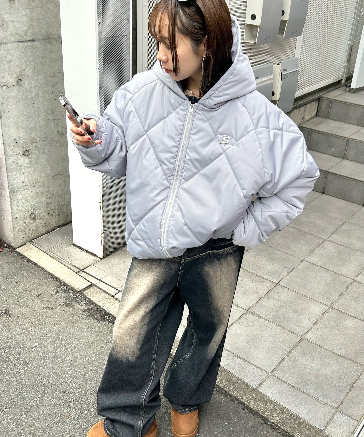 ・フード付きにキルト素材がカジュアルな雰囲気を。