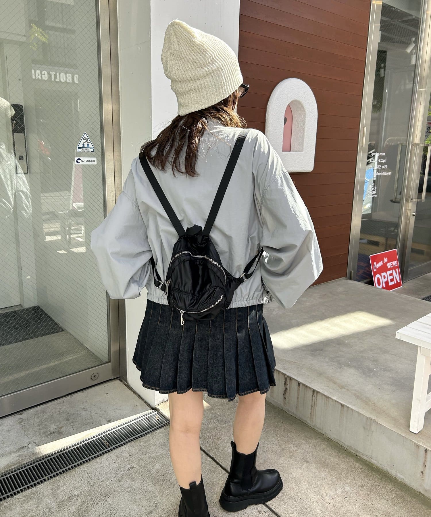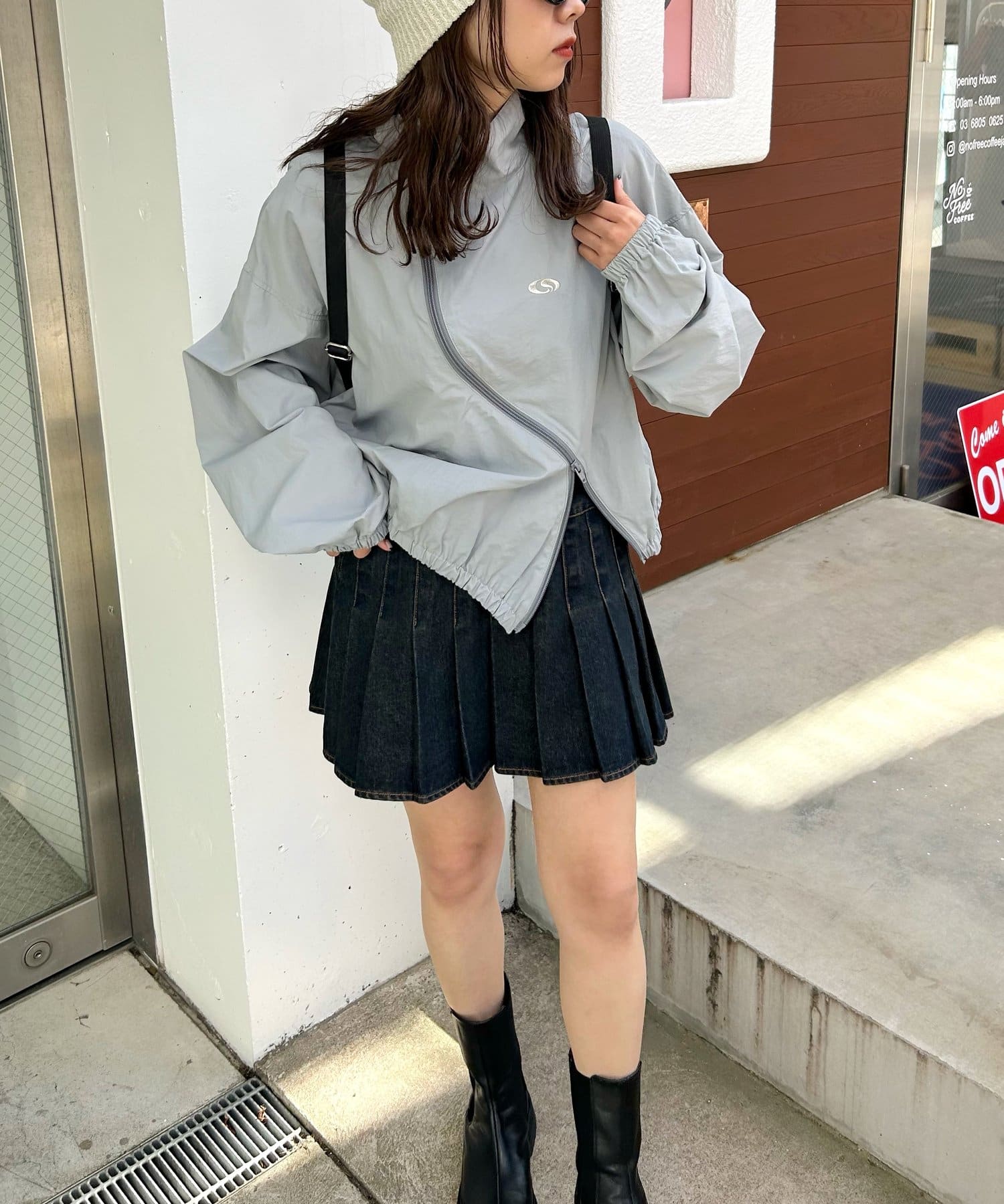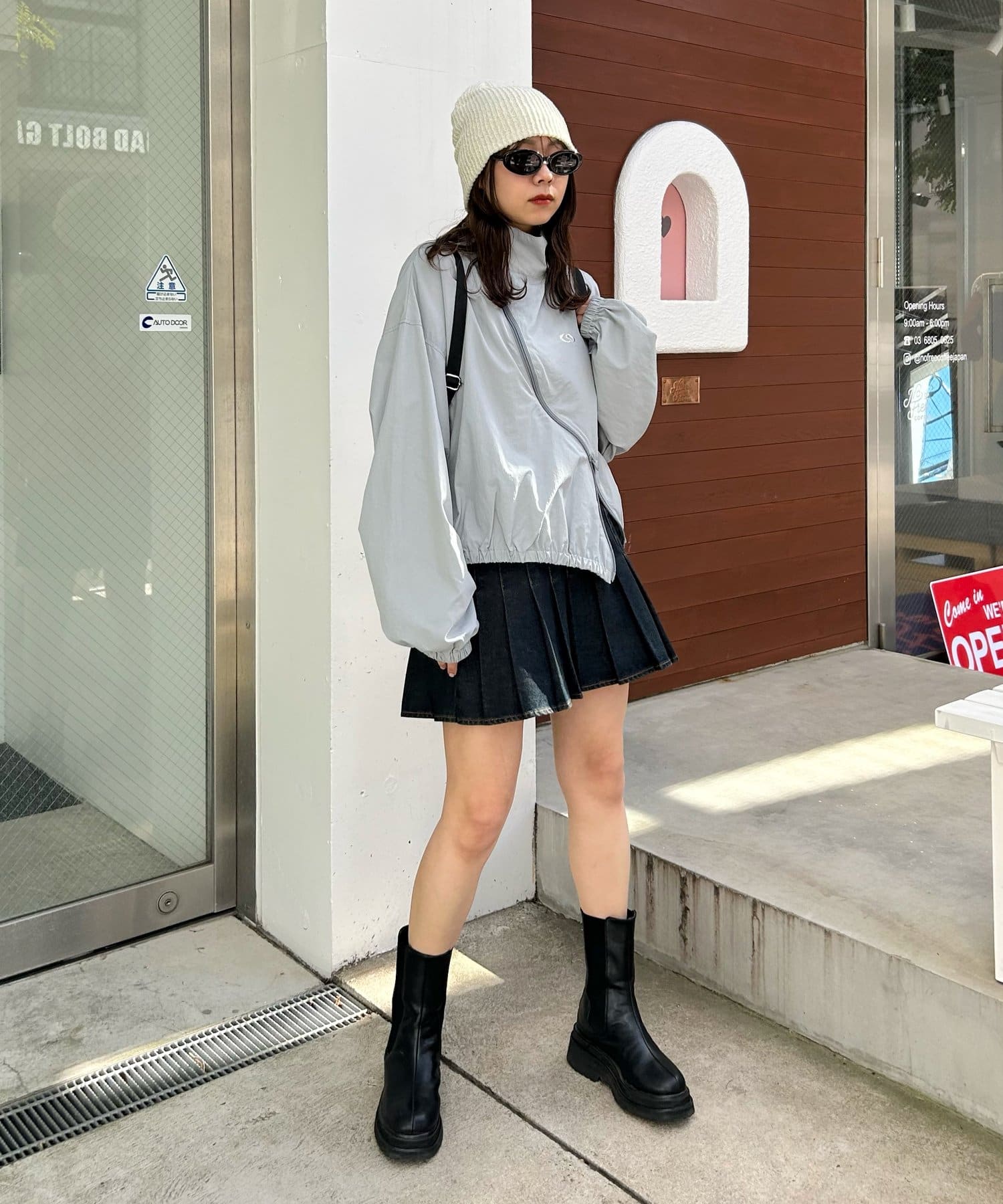 ・トレンドのY2Kな雰囲気にはミニスカートでギャルっぽく。