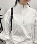 ・ハーフジップが甘すぎないカジュアルな印象に。