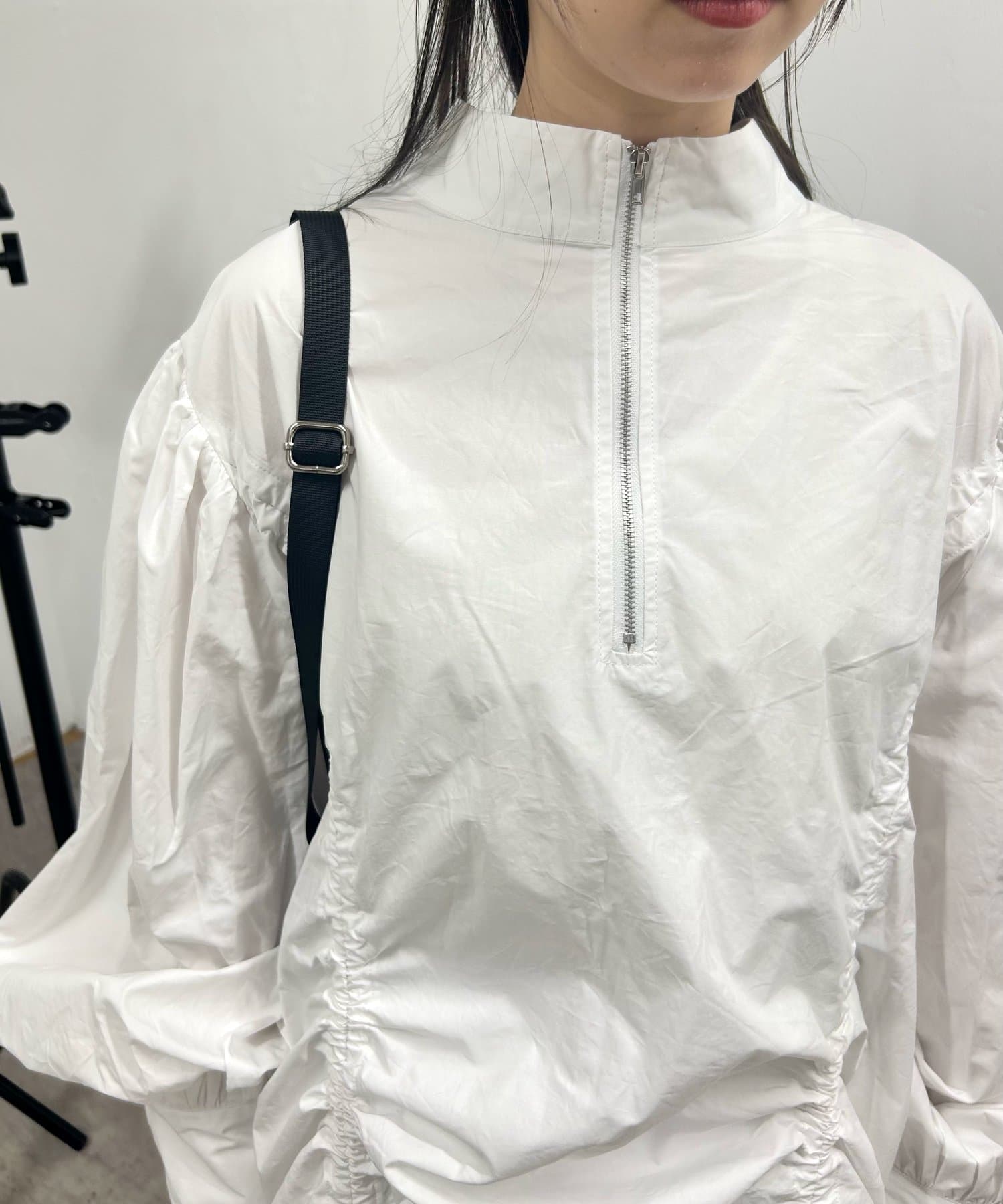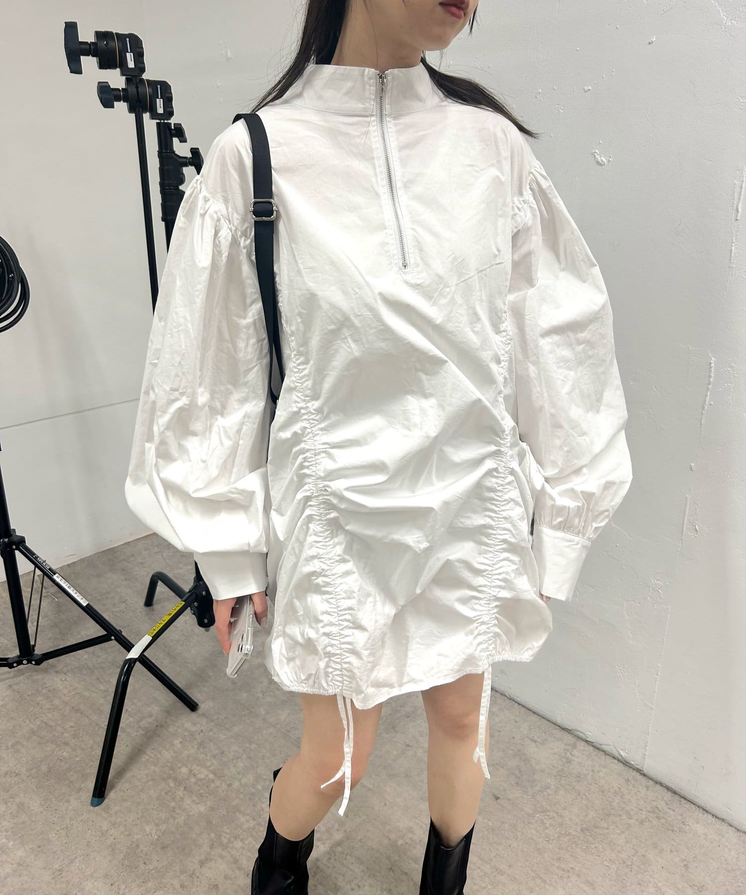 ハーフジップギャザーボリュームワンピ