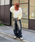 ・トレンドの加工感のある太めのボトムスとカジュアルに着こなすのがおすすめ。