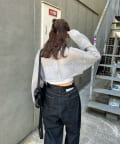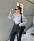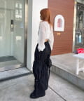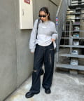 ・コンパクトな丈感にはルーズなボトムスがバランスよく、ベストマッチ◎