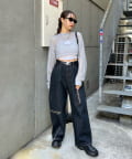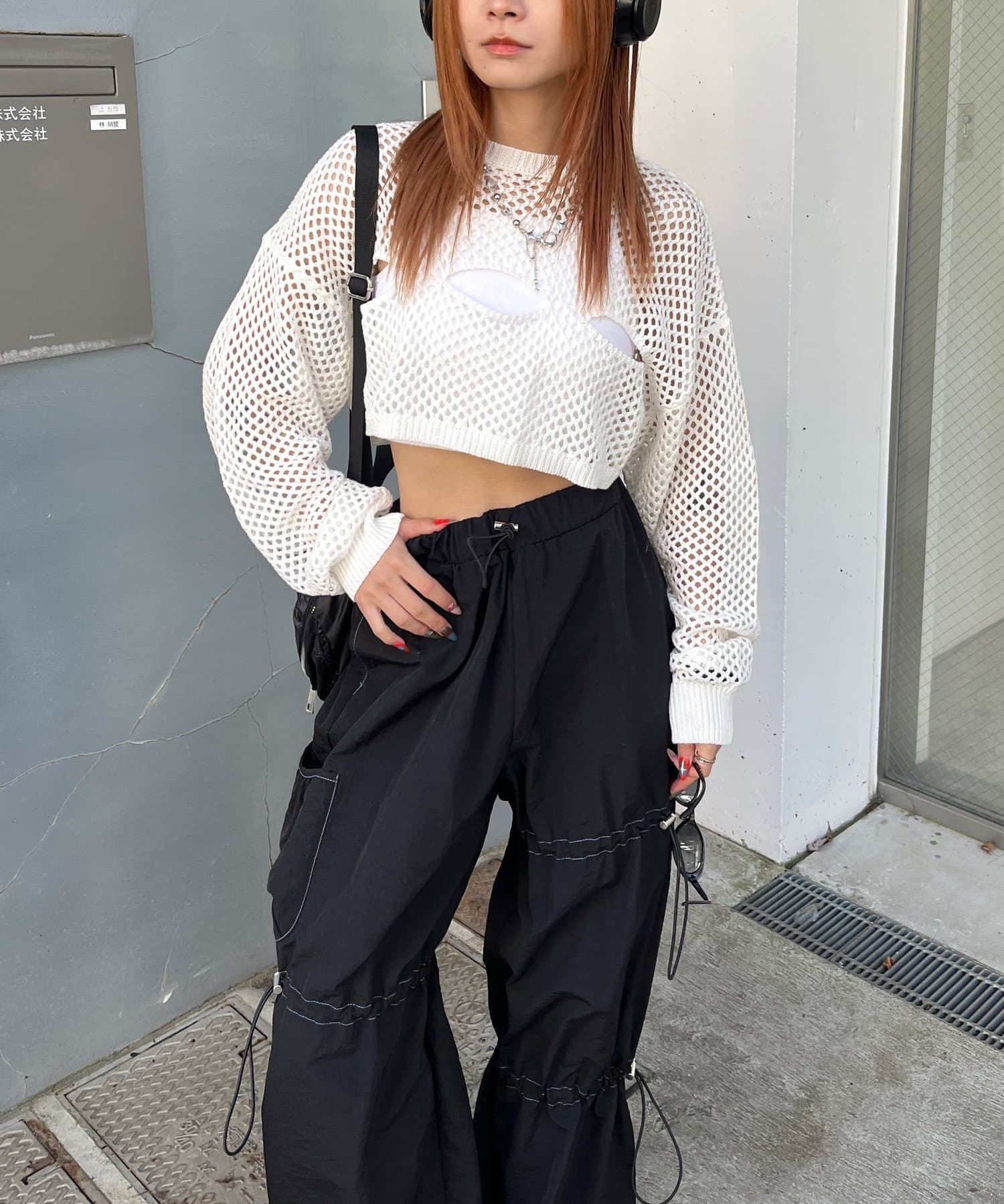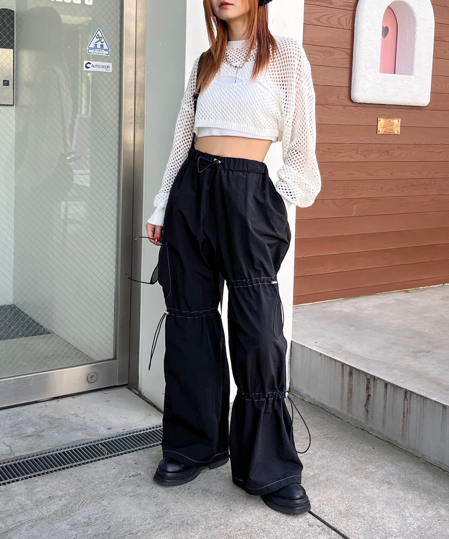 ・トレンドのY2Kスタイルにはナイロンパンツがおすすめ。今っぽいスタイリングが完成します。