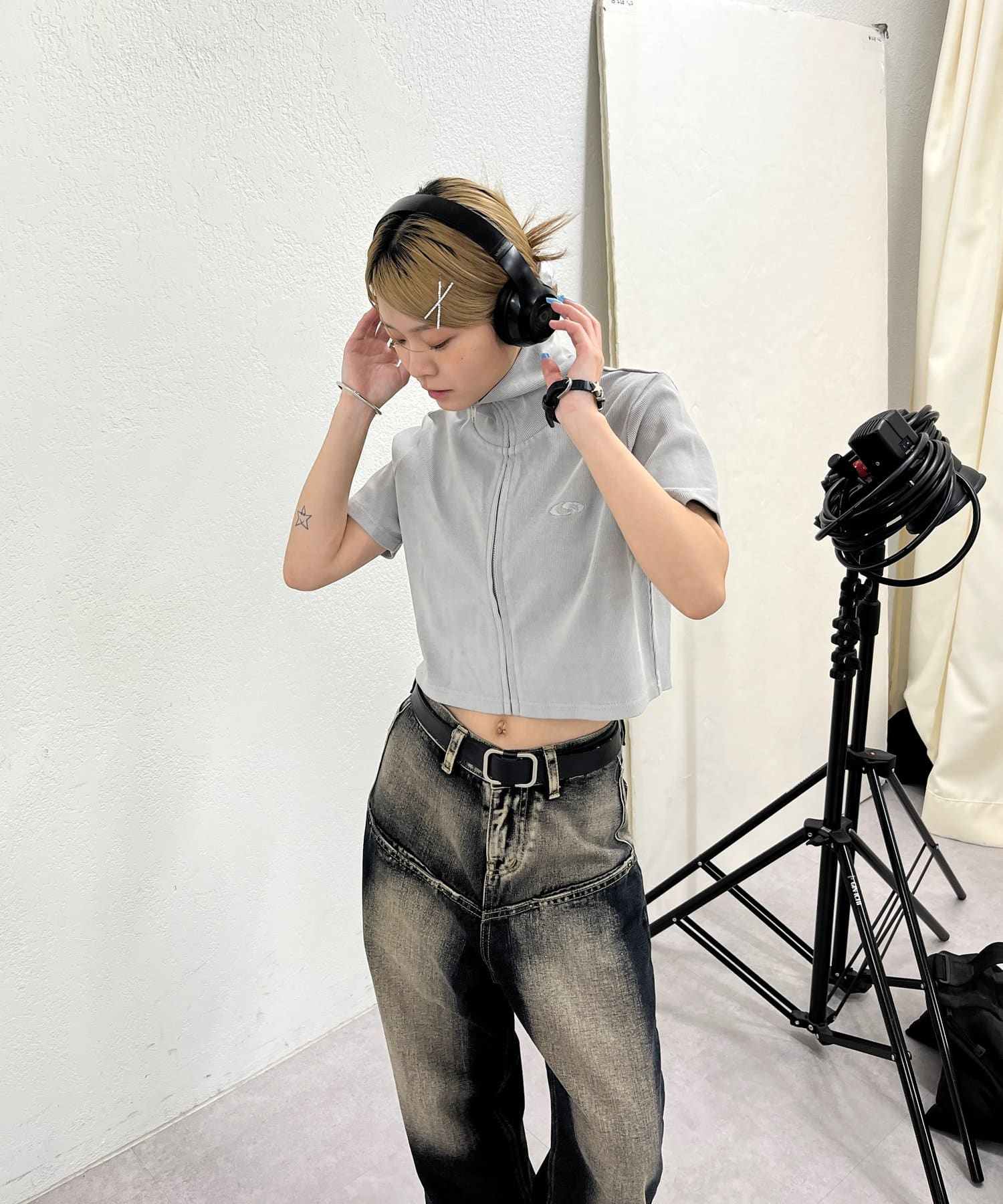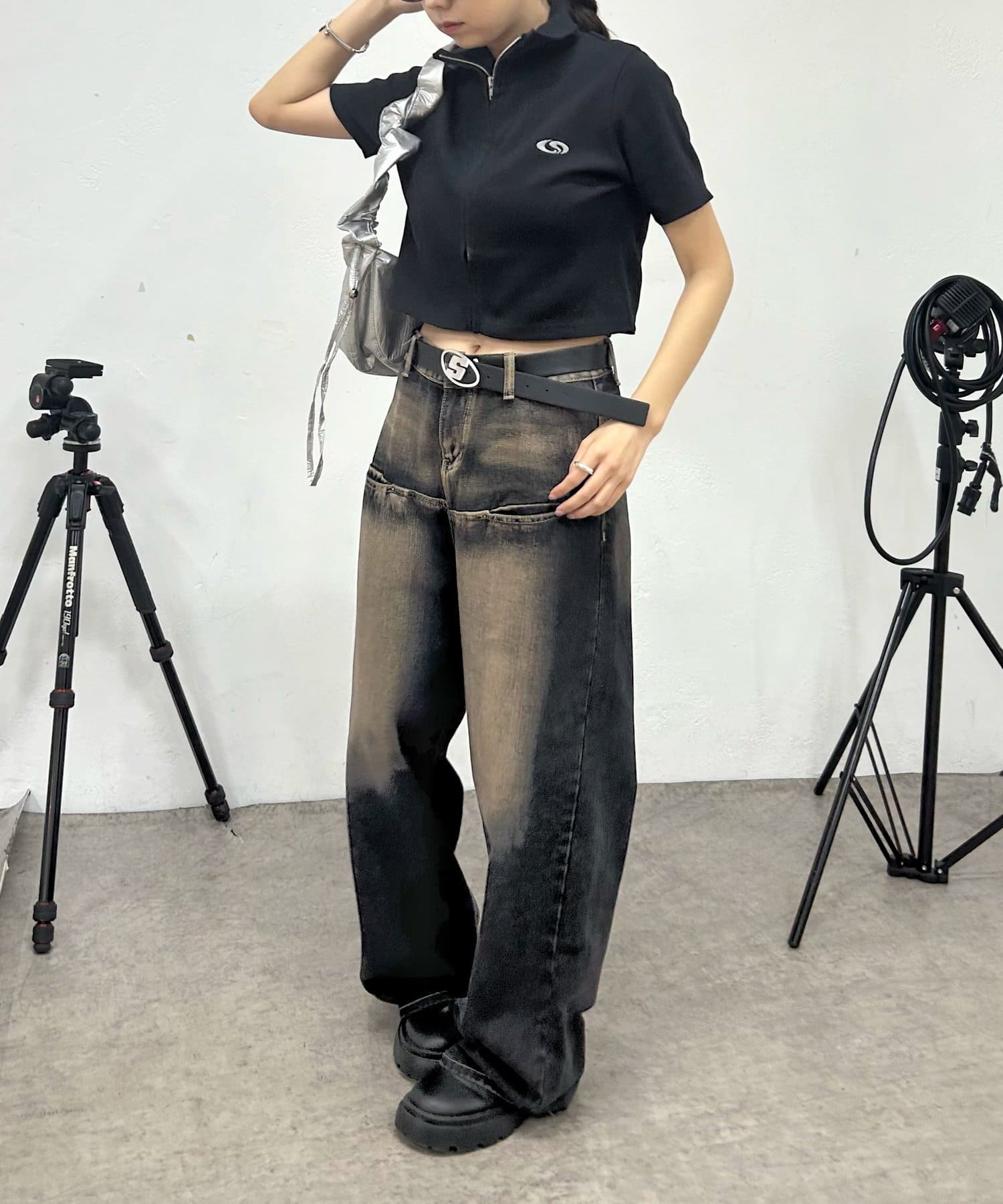 ・コンパクトなトップス×ワイドパンツでバランスのいいトレンドのスタイリングを。