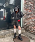 ・今年の春夏にマストなハーフパンツ。パーカーのサイズ感にハーフパンツの程よい肌見せが