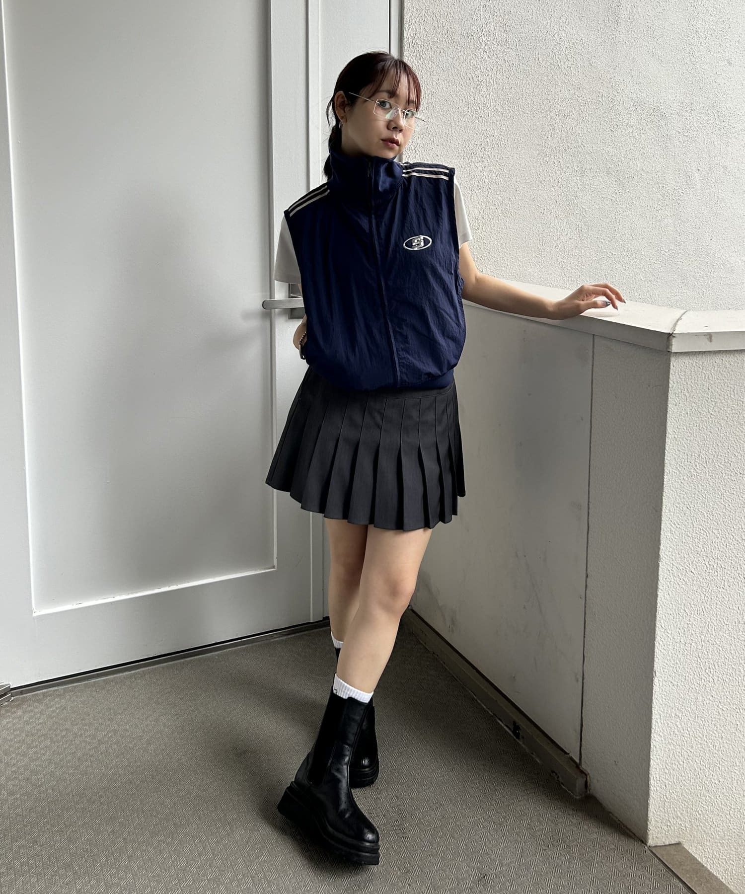 ・ミニ丈のスカートでスクールライクな雰囲気に。