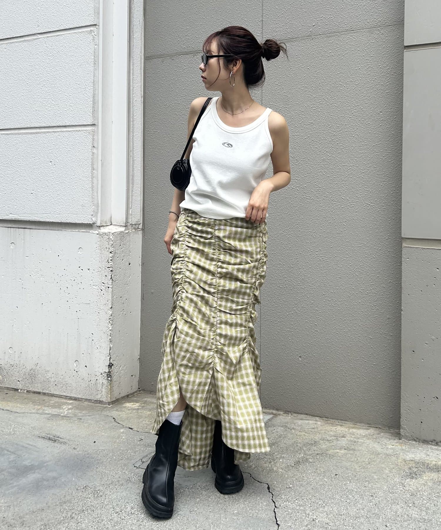 • 157cm/骨格ウェーブSK:ギャザーデザインチェックスカート