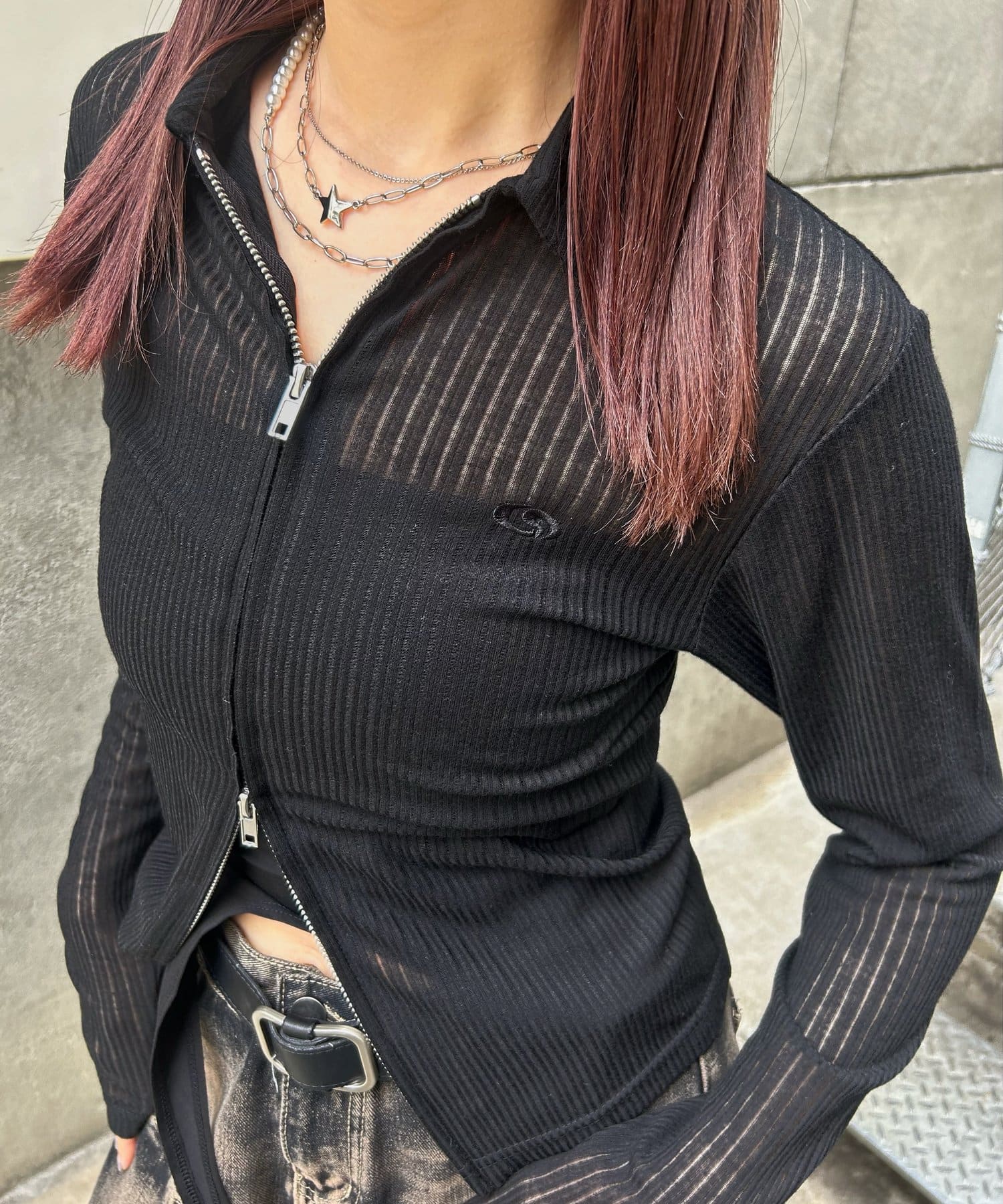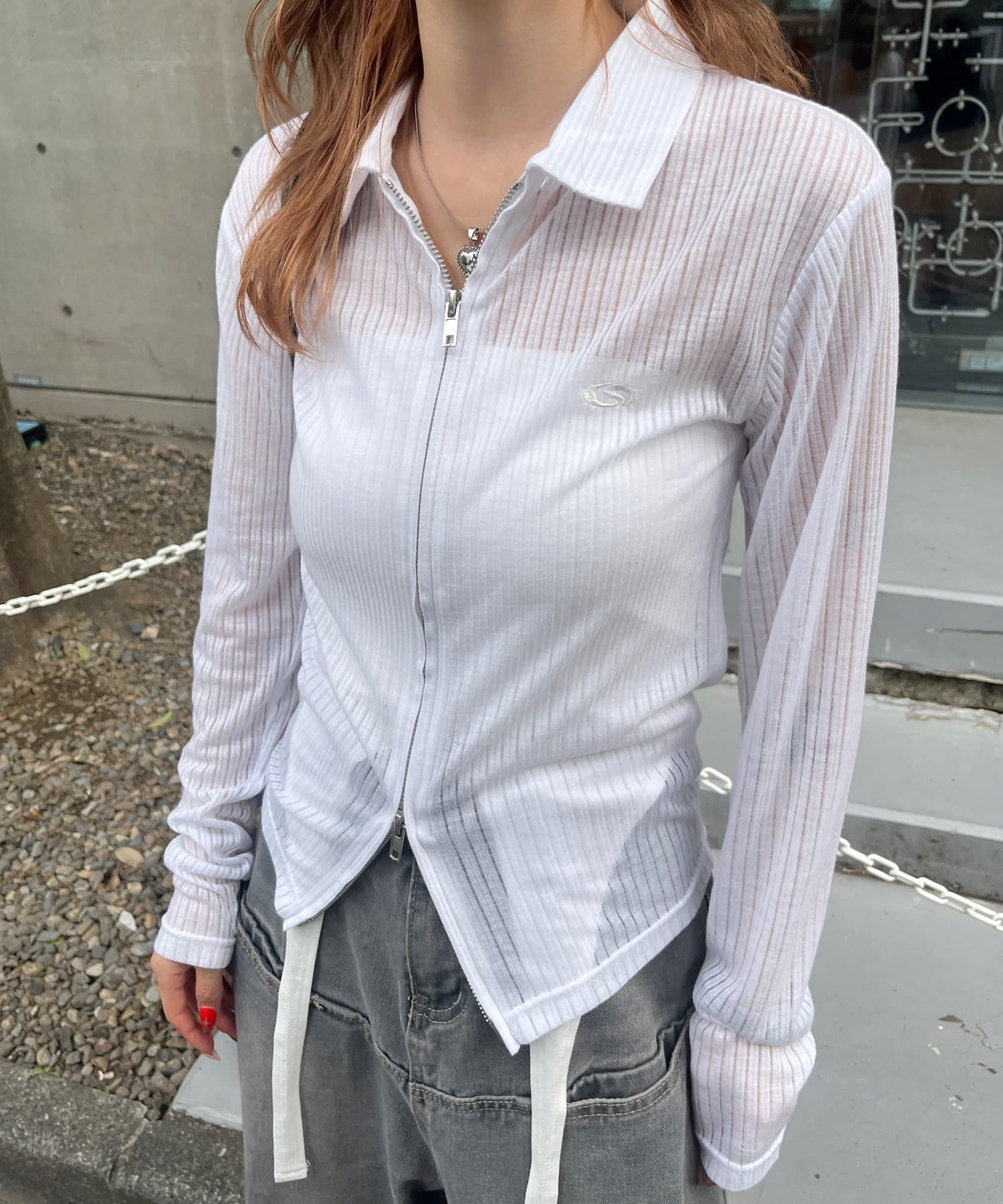 【SLOPPY/スロッピー】フューチャーロゴダブルジップシアーシャツカーデ