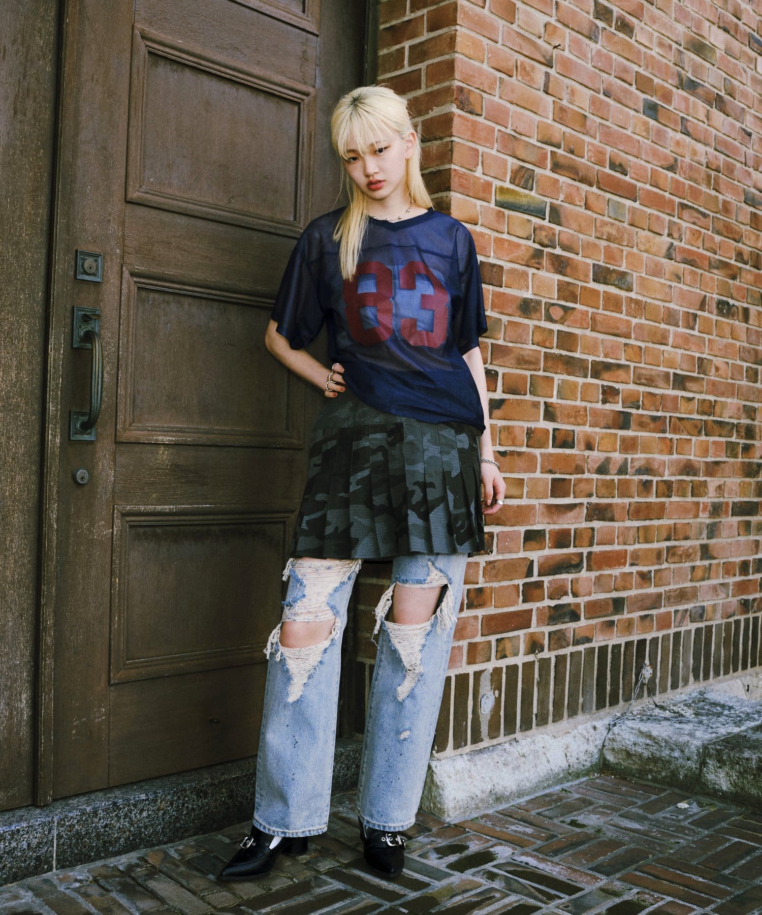 ・トレンドのヴィンテージ感のあるワイドデニムでストリートに