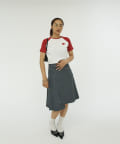 トレンドのミディ丈スカート!アシンメトリーのデザインでオシャレな印象に。