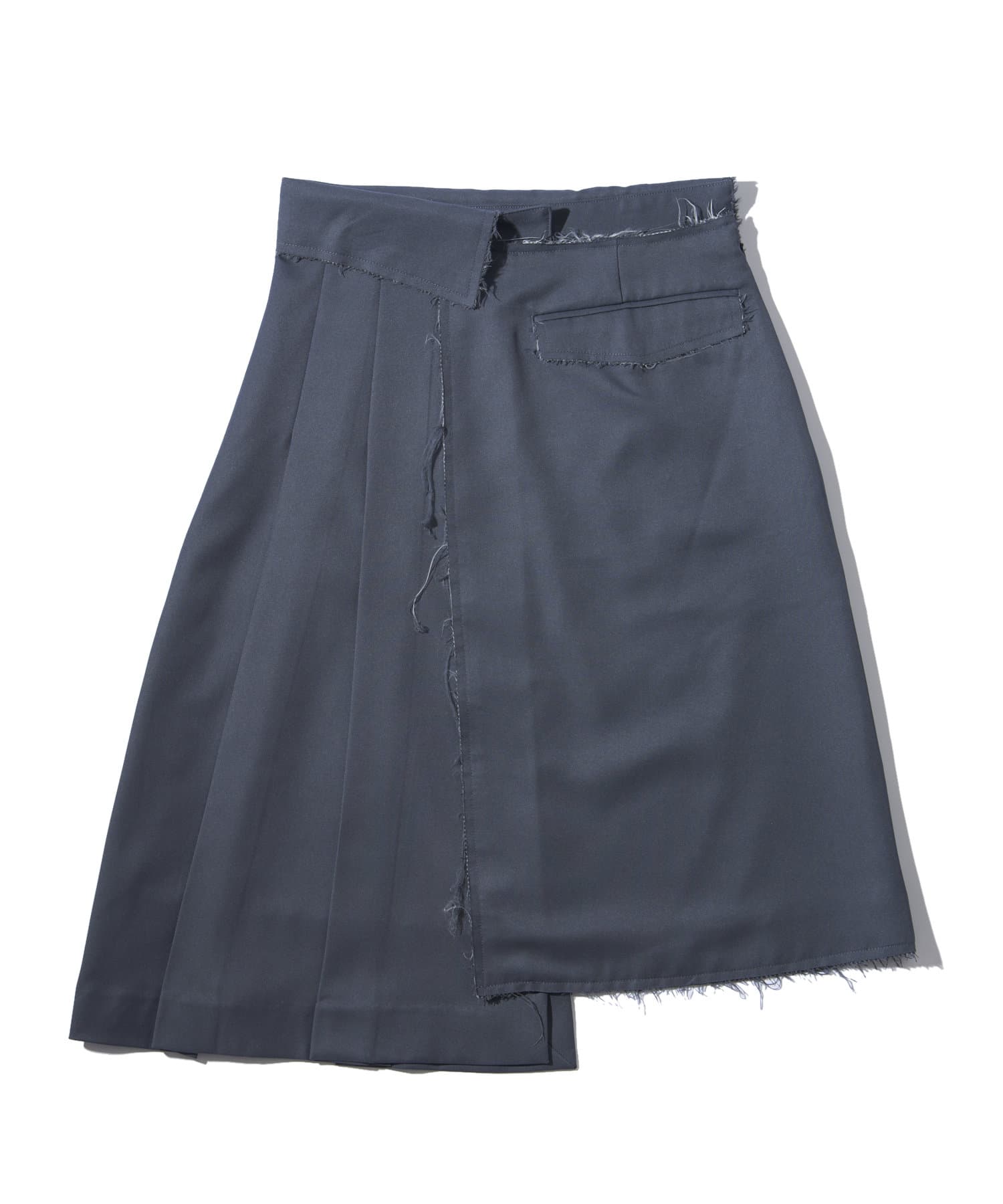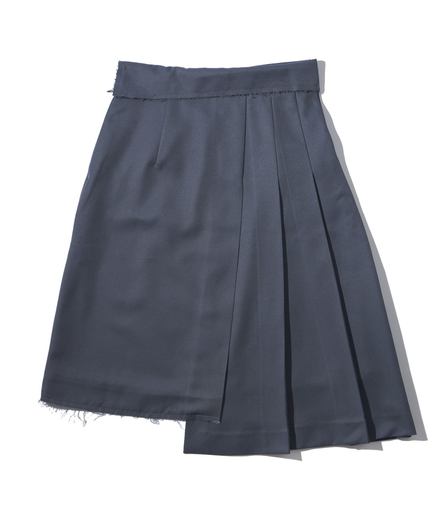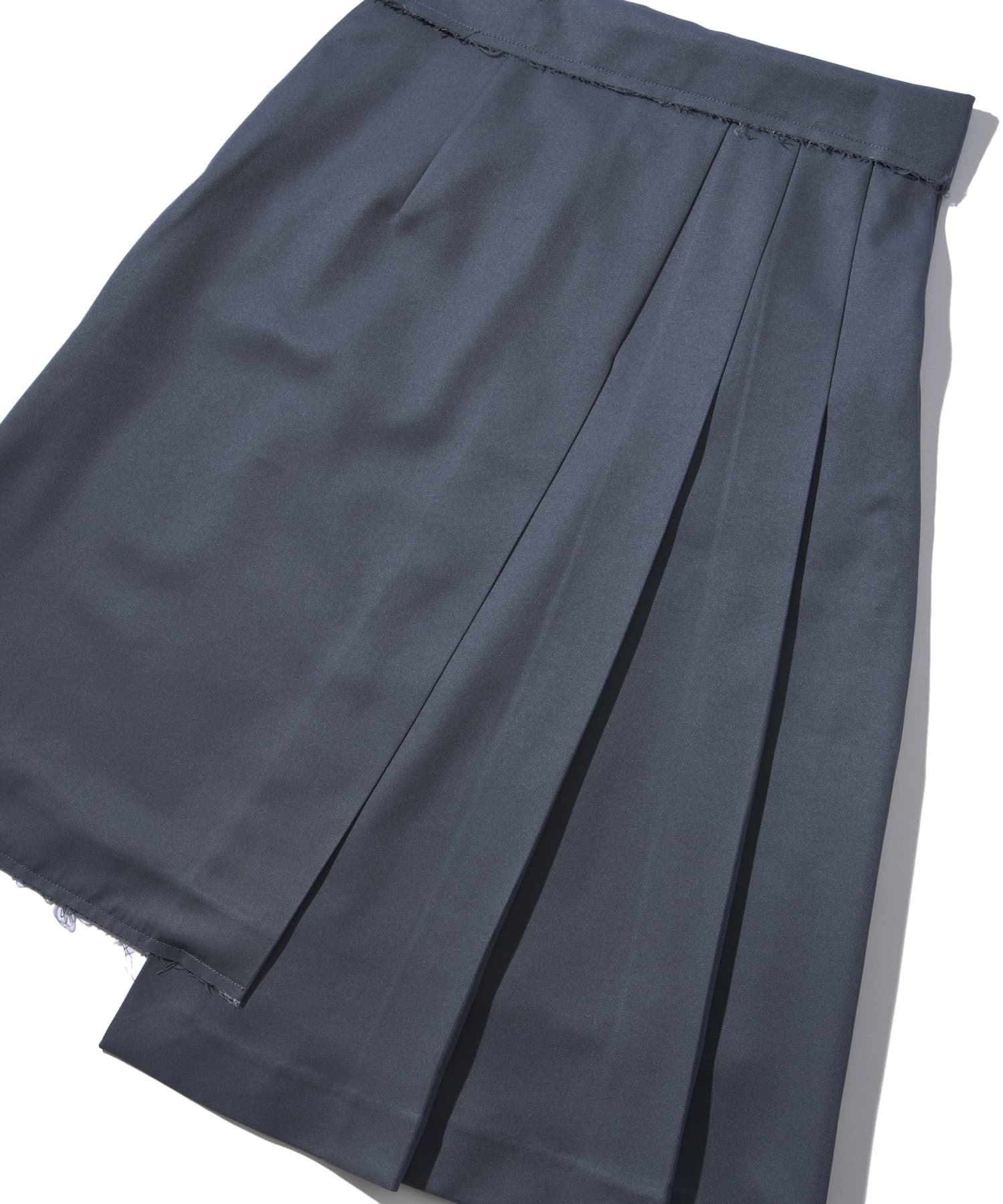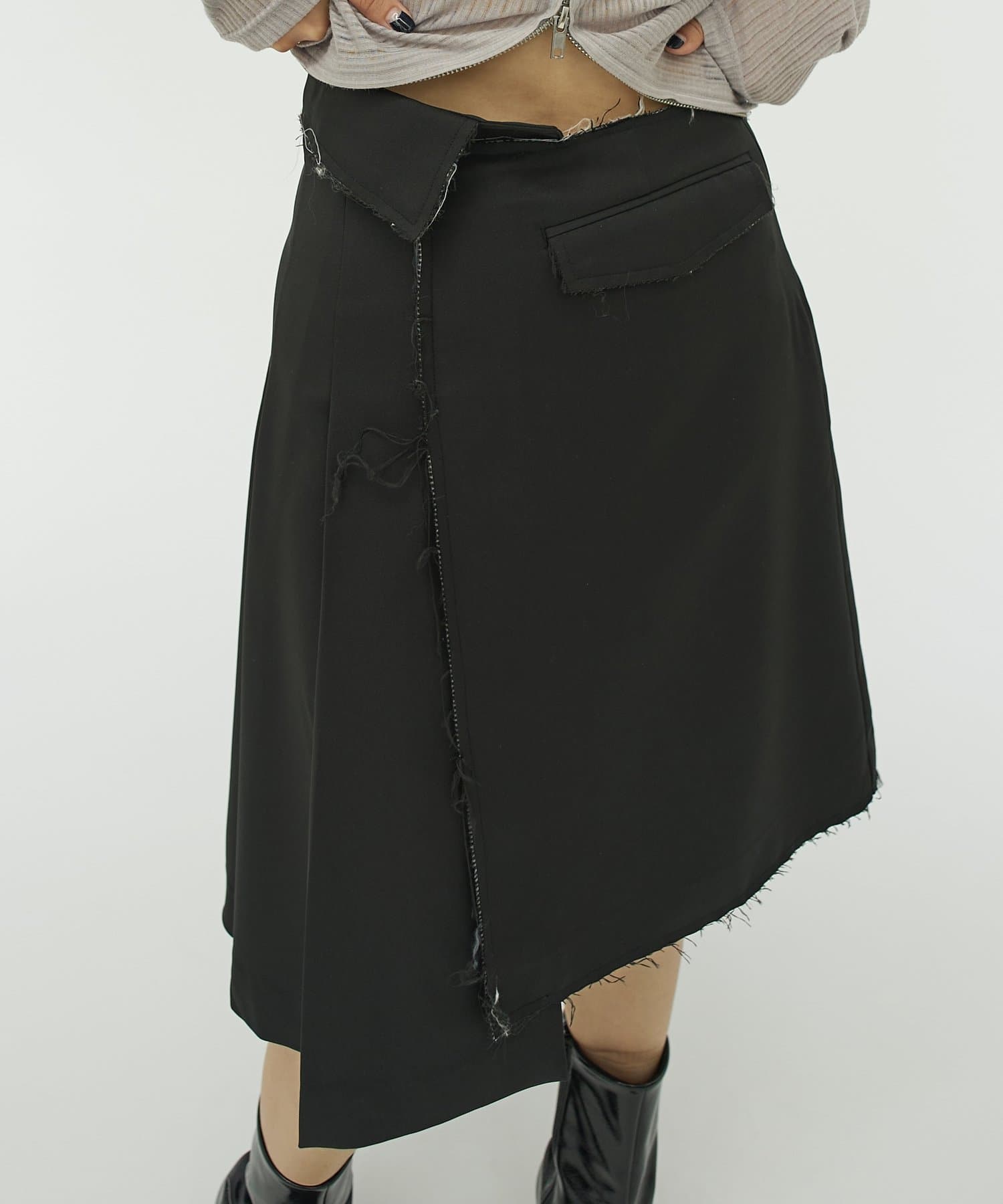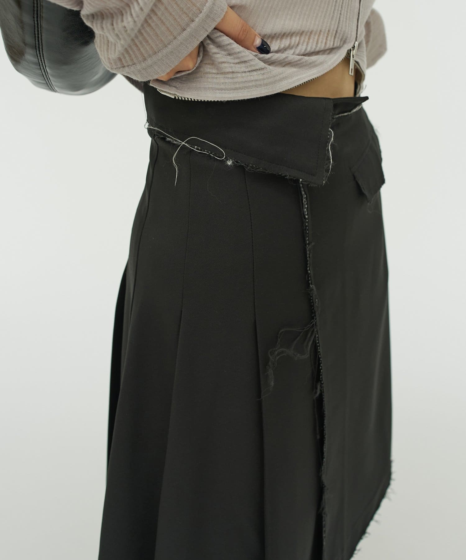 ・プリーツとダメージスカートのアシンメトリーのデザイン。