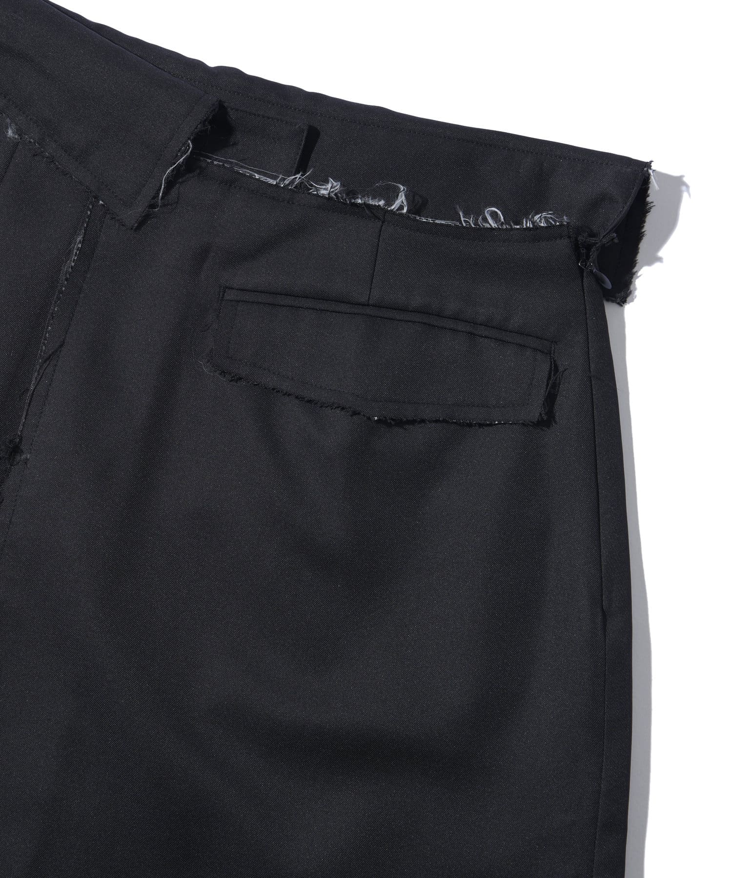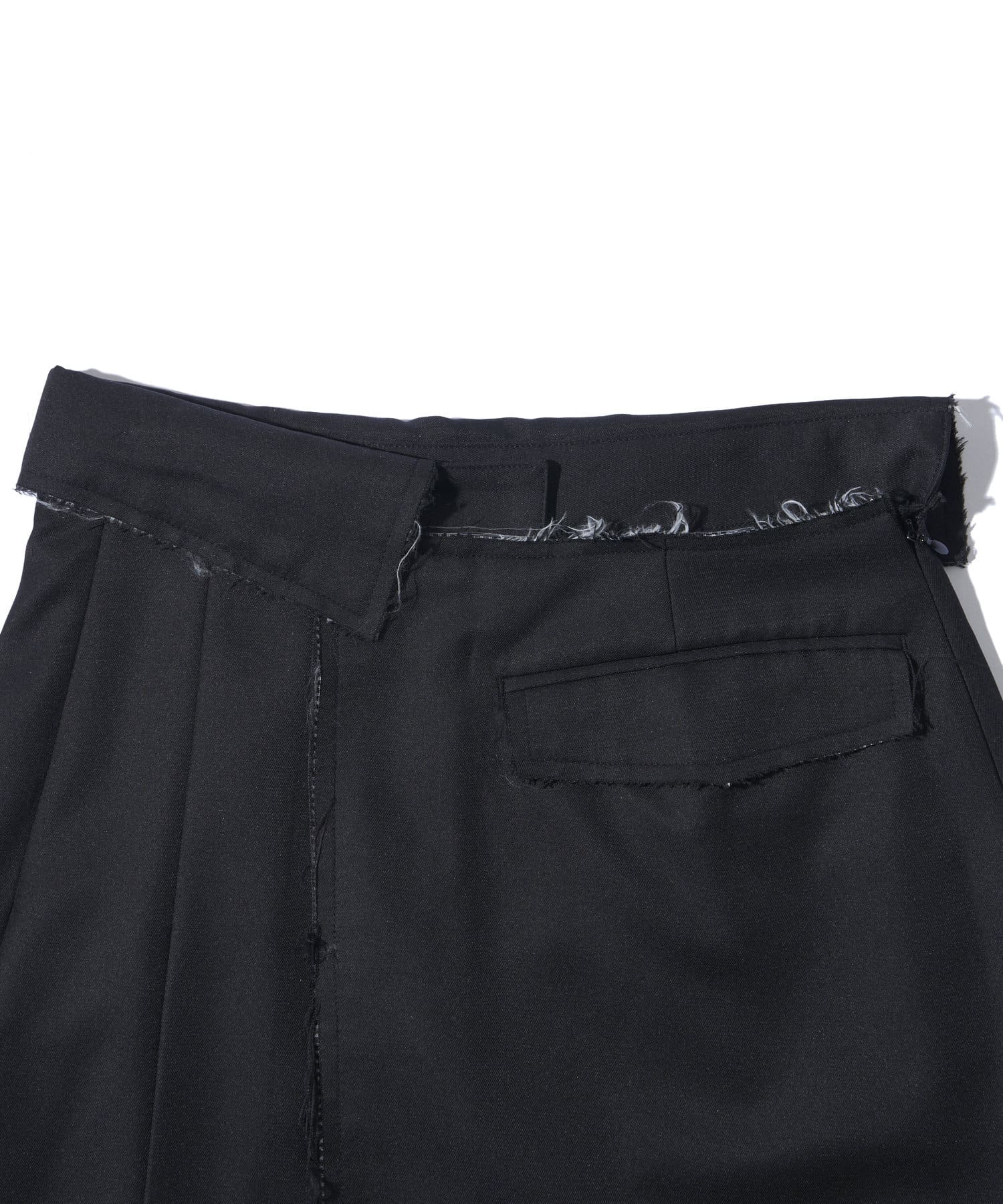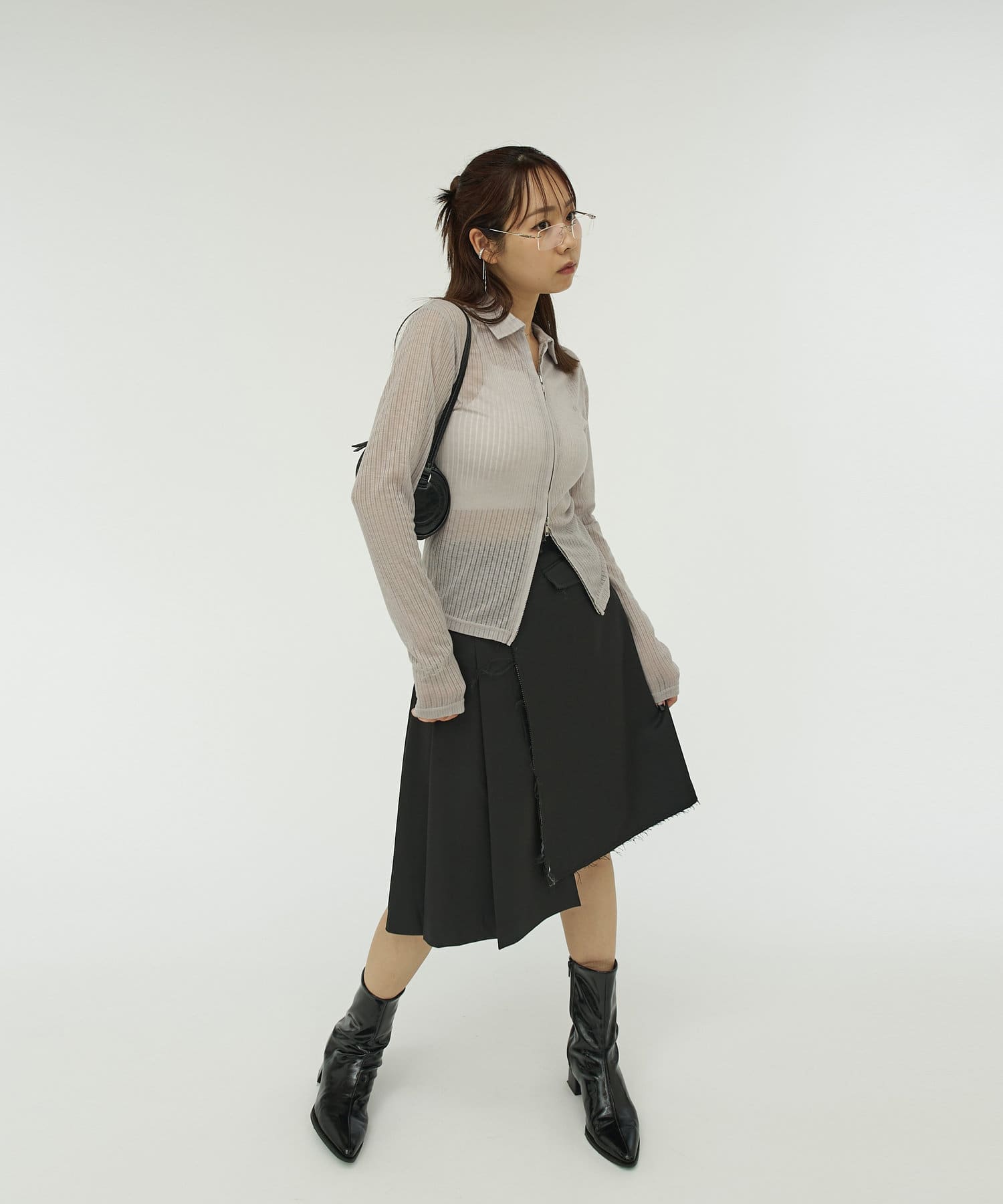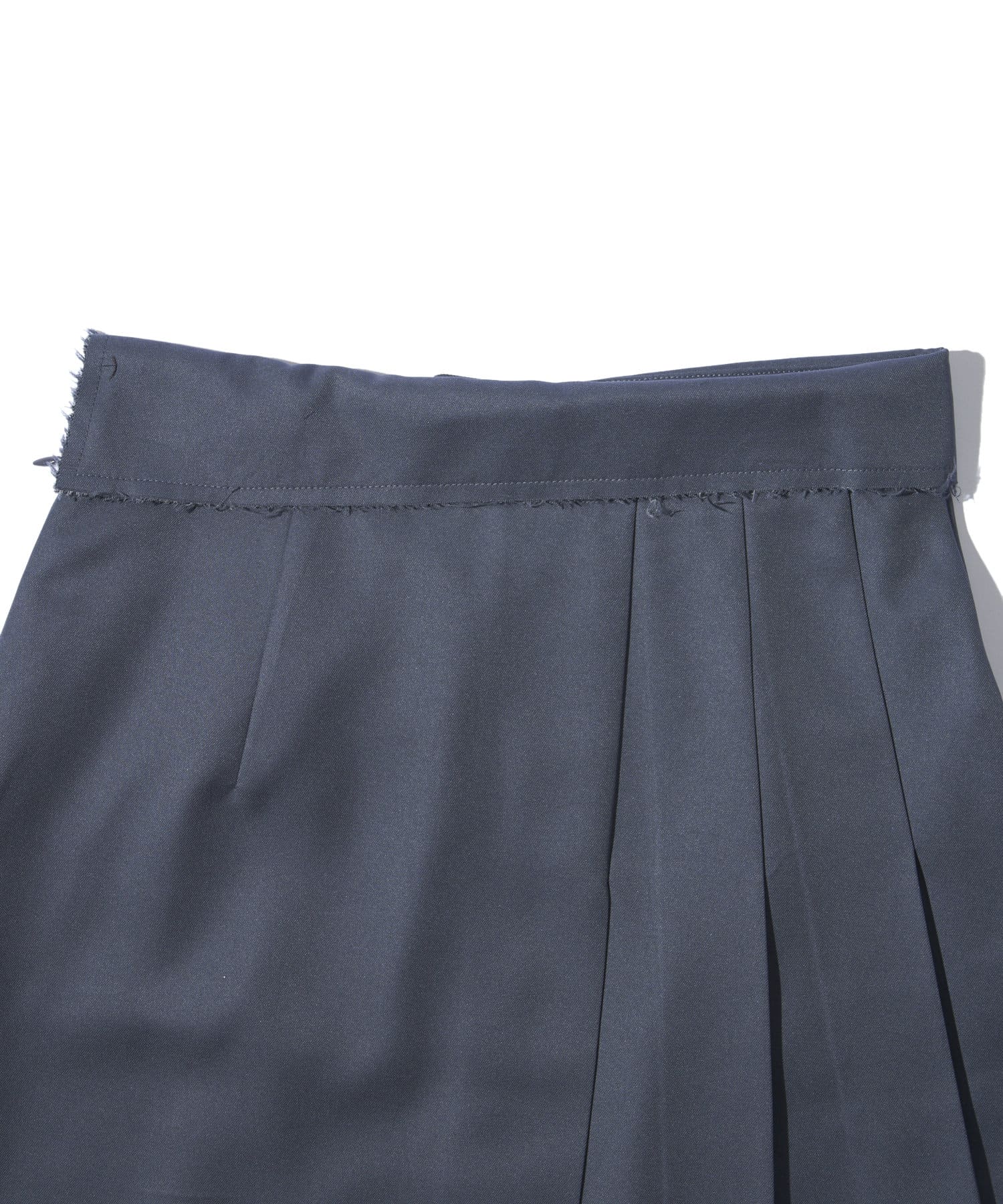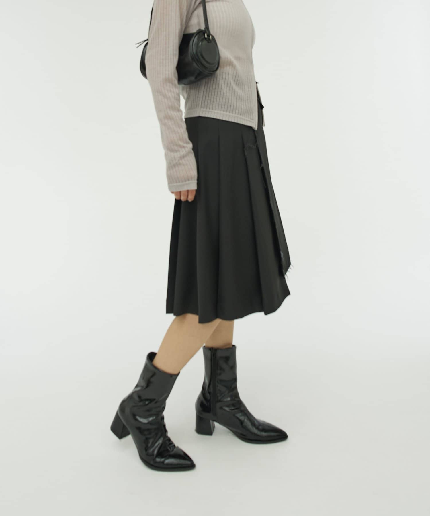 ・プリーツとダメージスカートのアシンメトリーのデザイン。