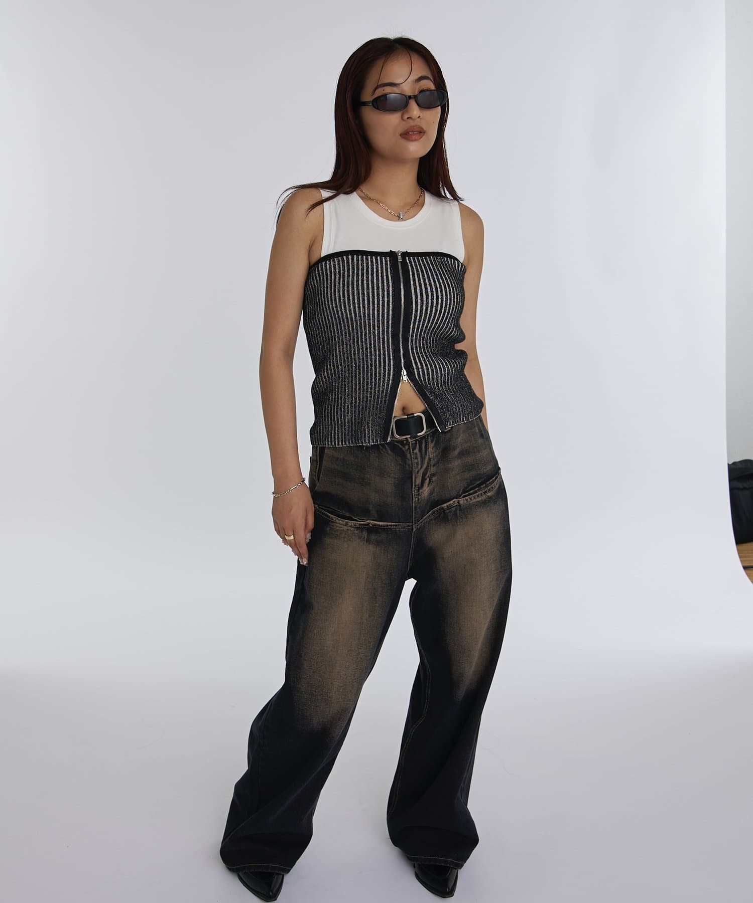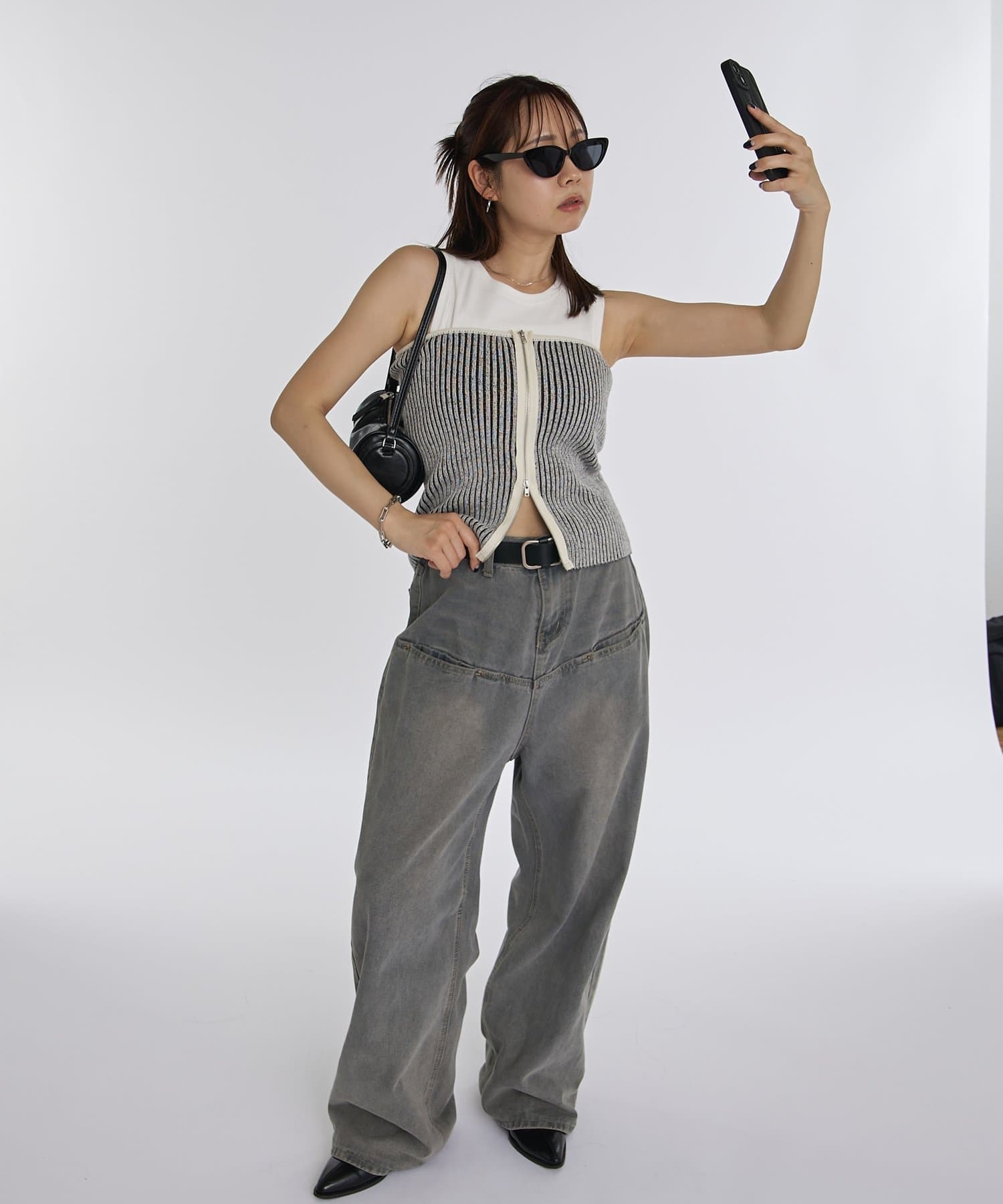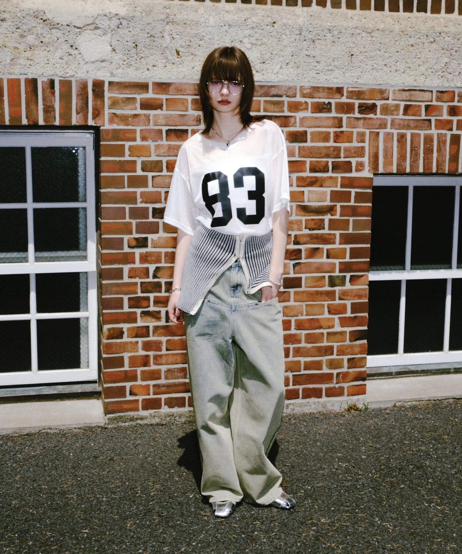 ・トレンドの加工感のあるワイドデニムで韓国ストリート風に。