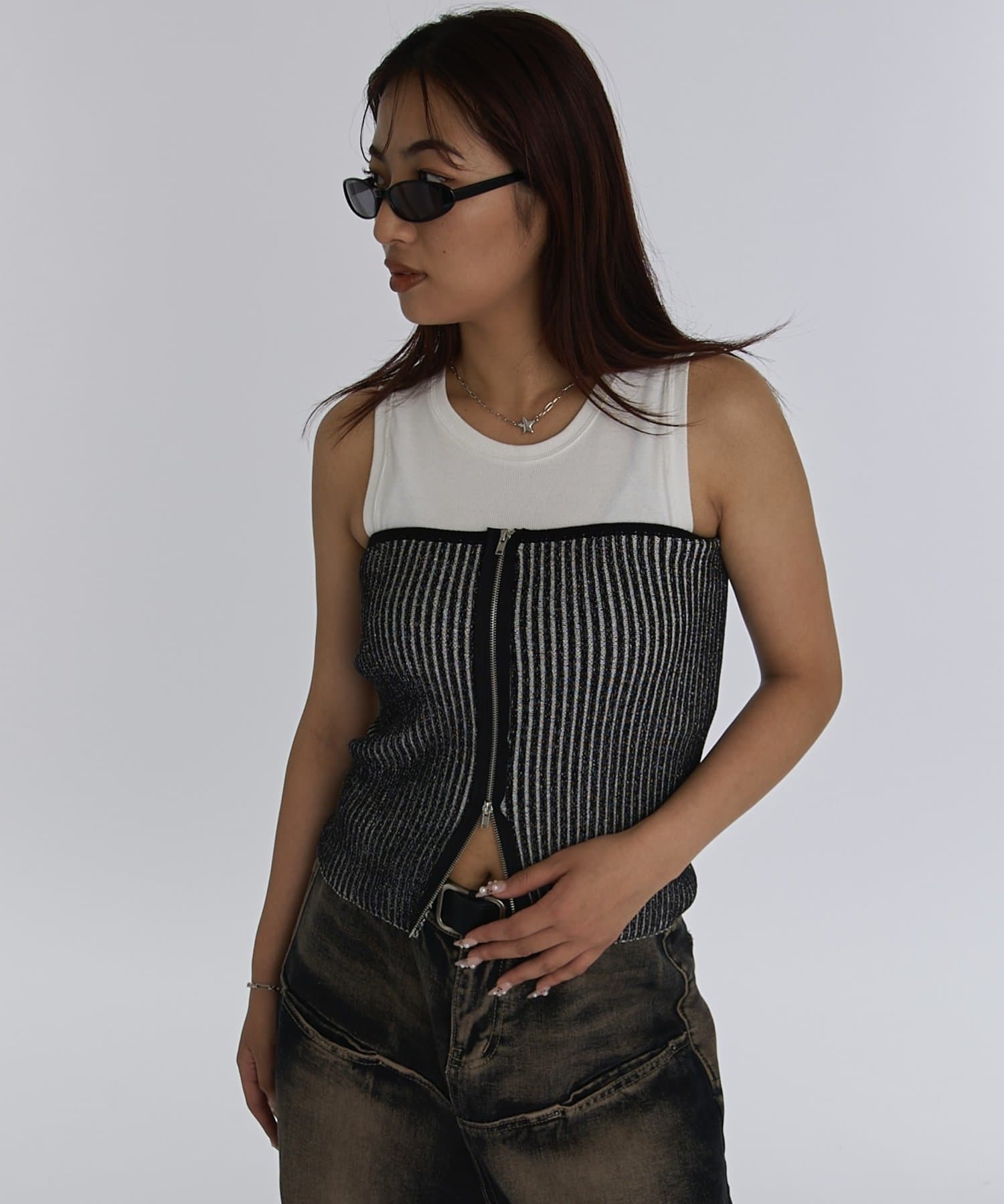 ・ダブルジップになっているので、少し開けることによってトレンドスタイルに。