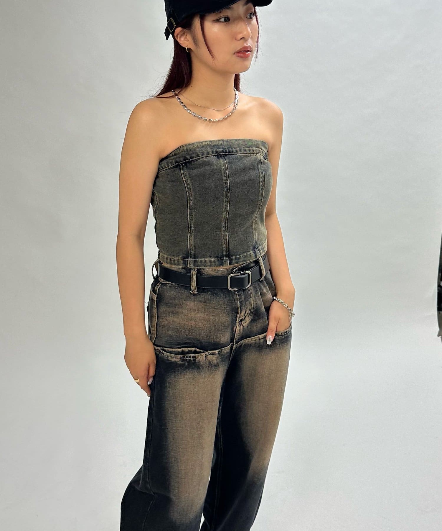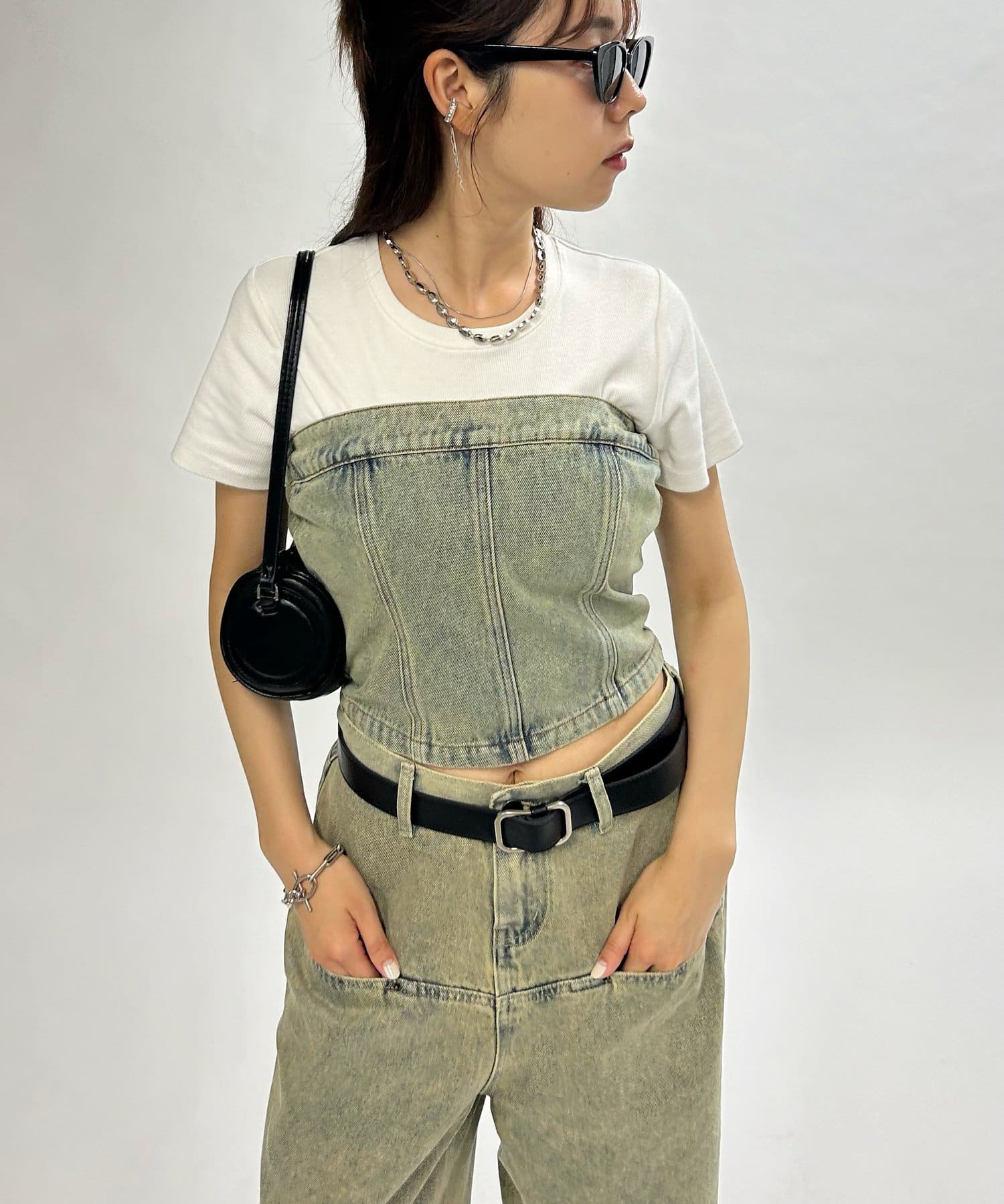 ・トレンドの加工感のあるデニムベア、1枚でもTシャツやタンクトップと
