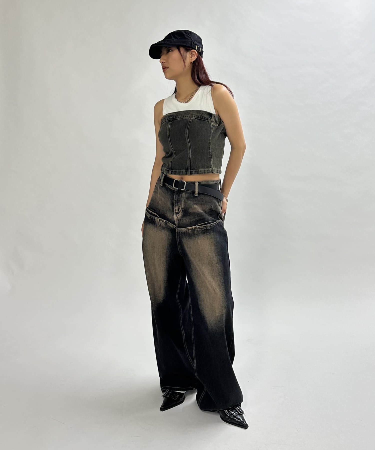 →スラッシュポケットブラスワイドデニム(WWZ1031403A0002)