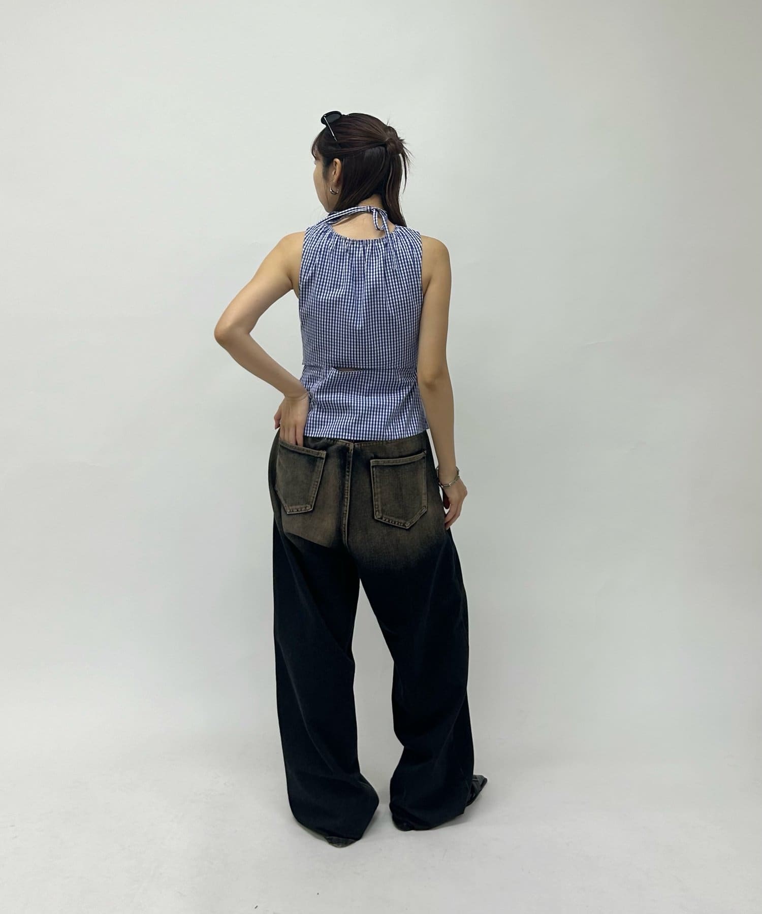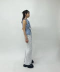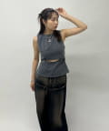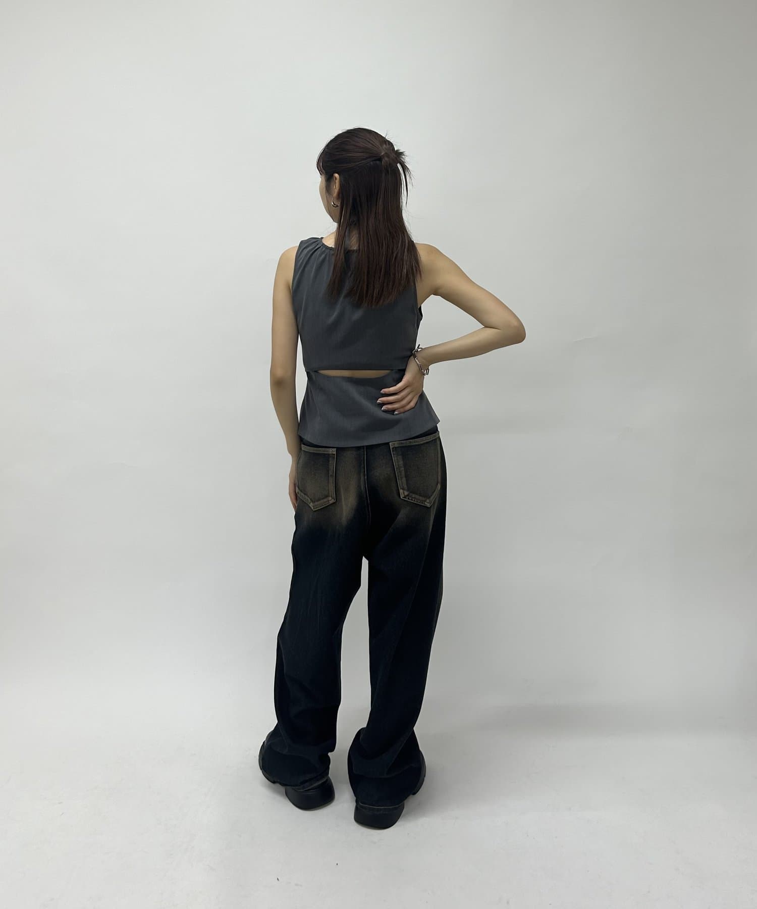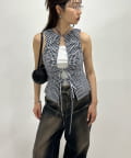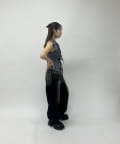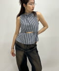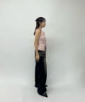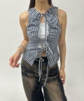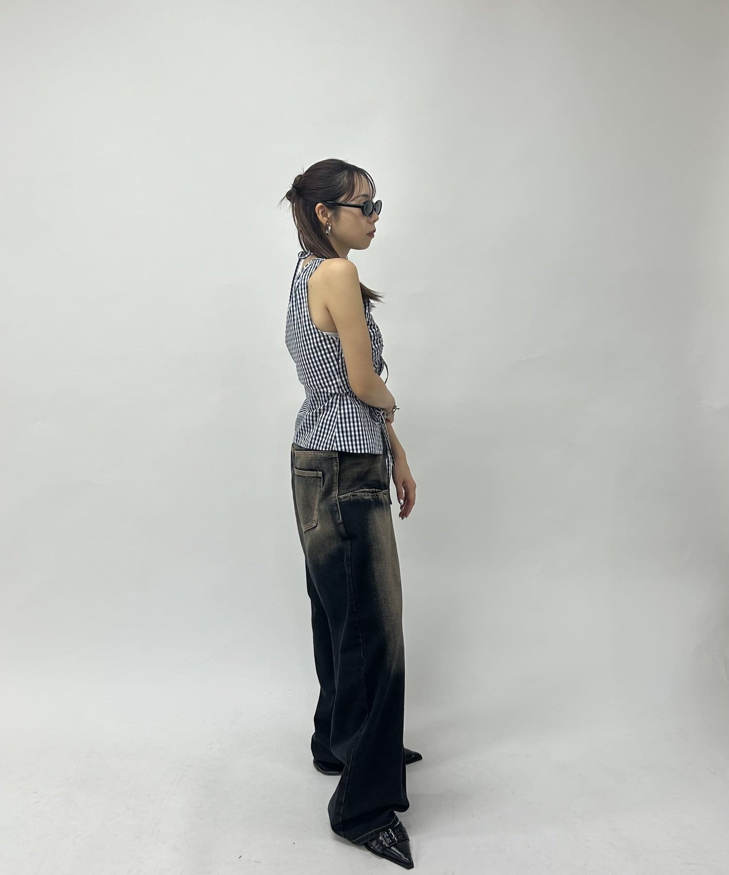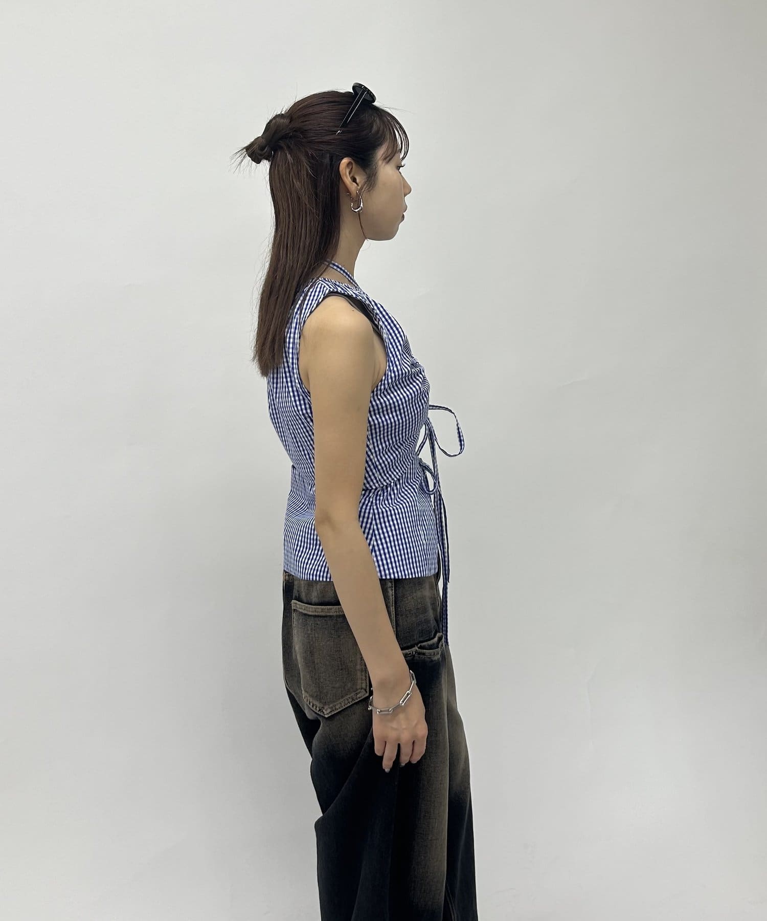 ・ガーリーなベストにはハーフデニムで甘辛ミックスコーデ。