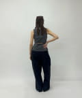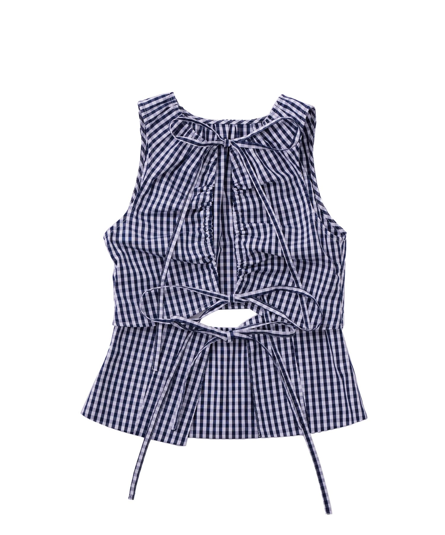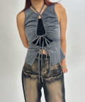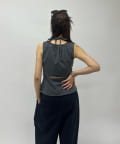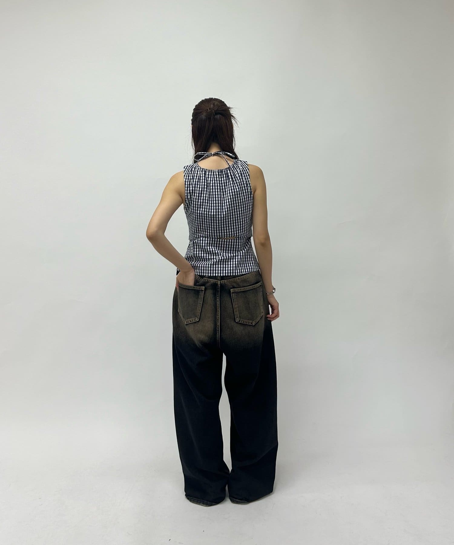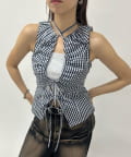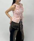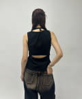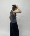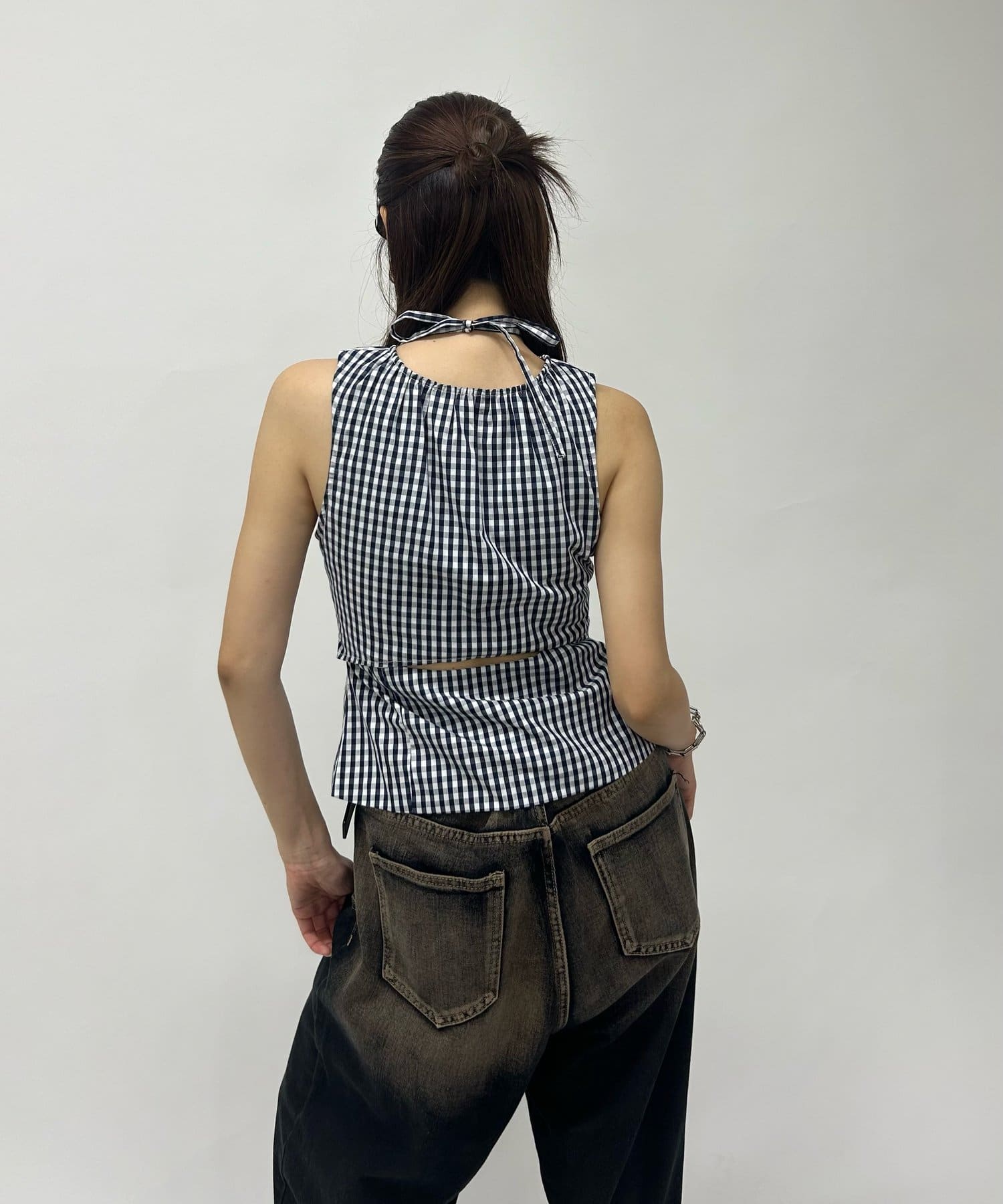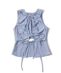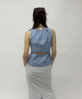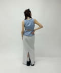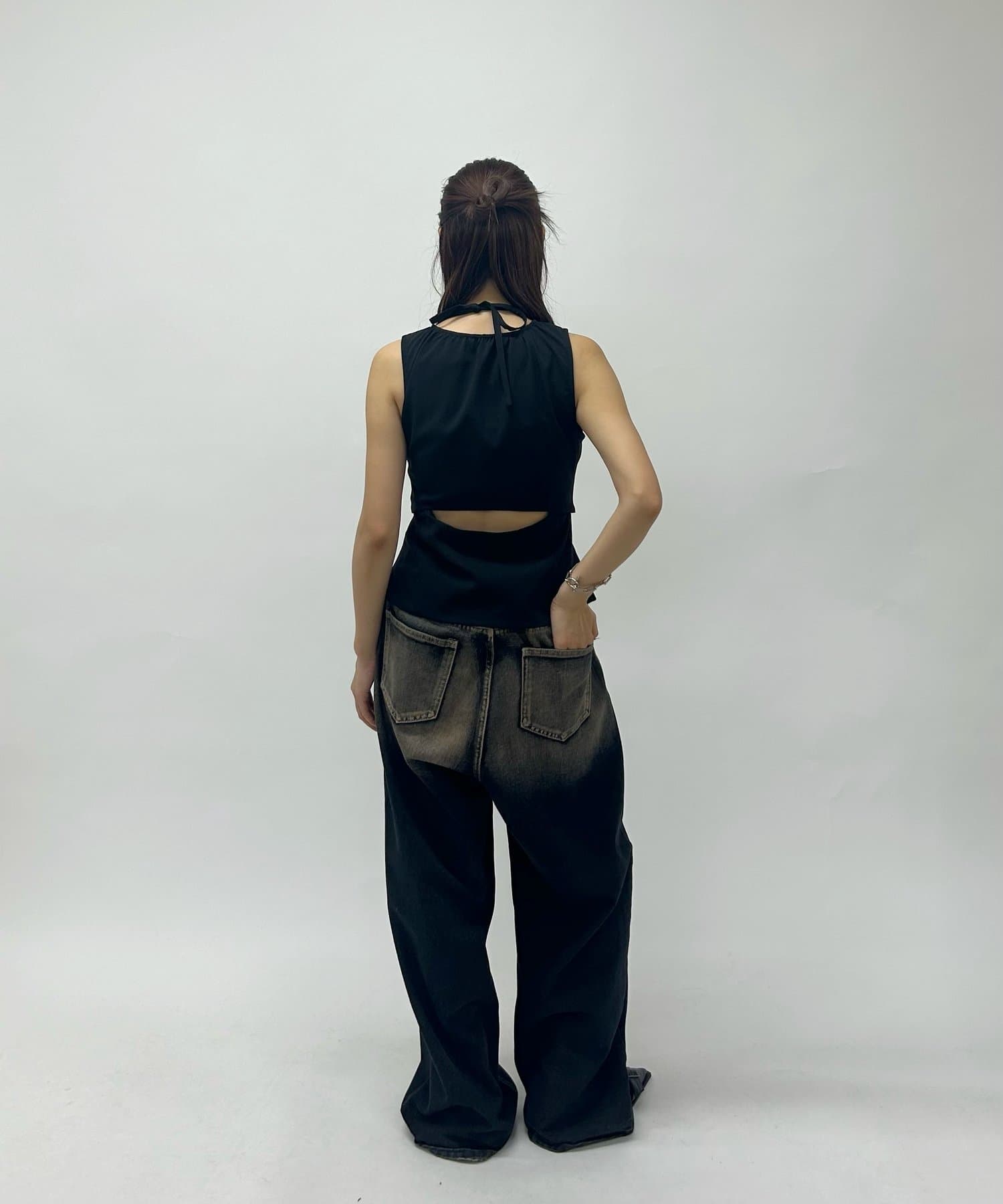 ・ガーリーなベストにはハーフデニムで甘辛ミックスコーデ。