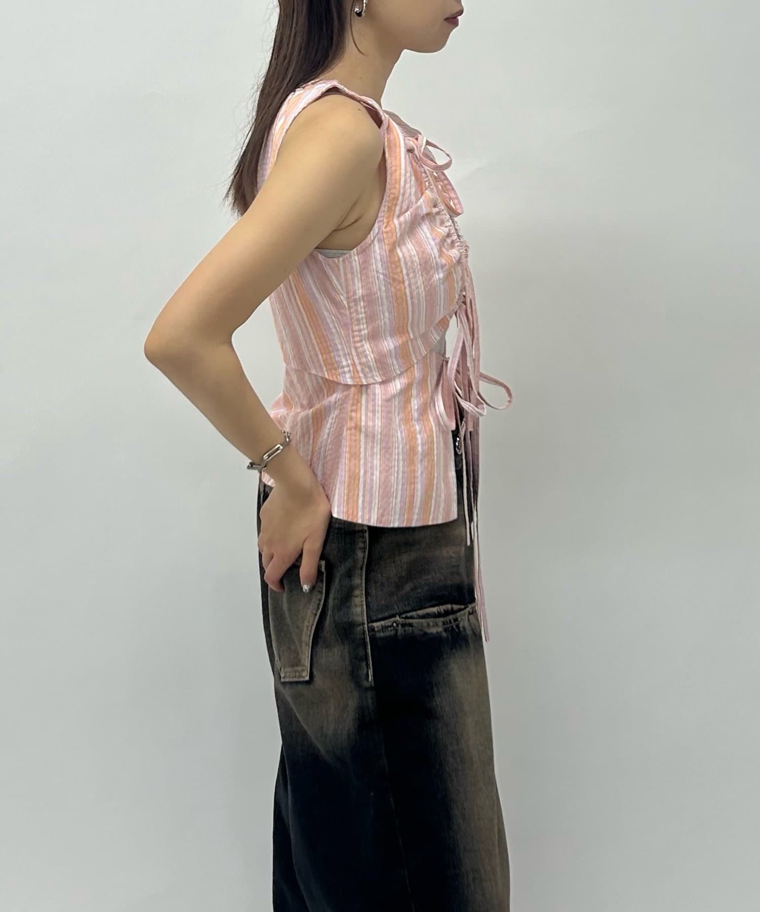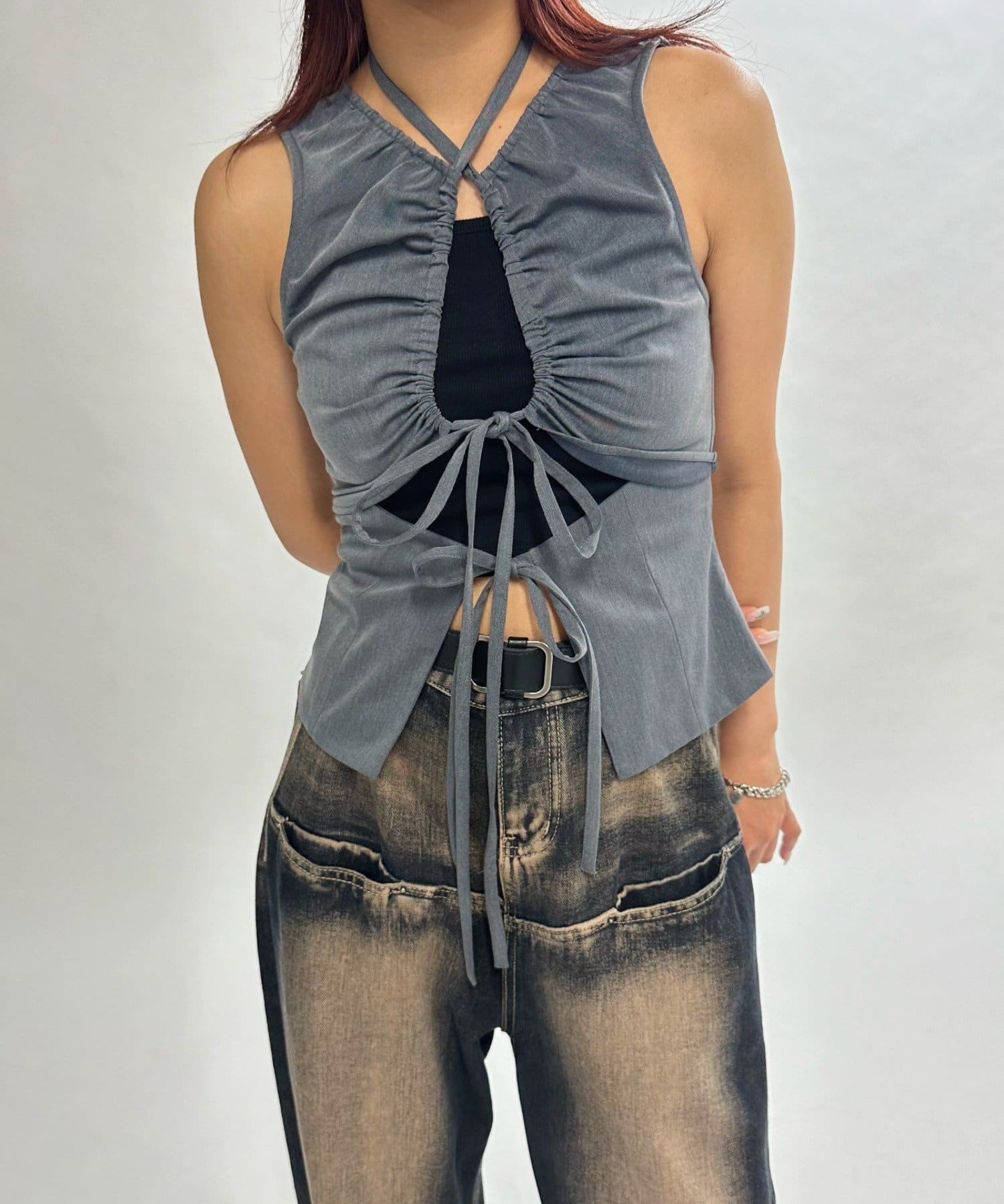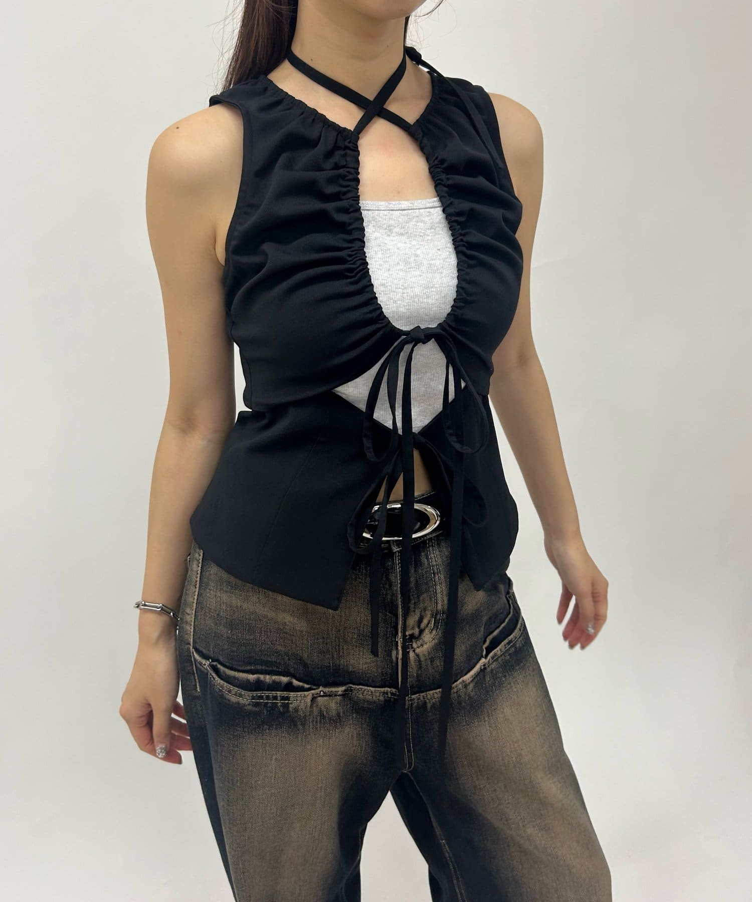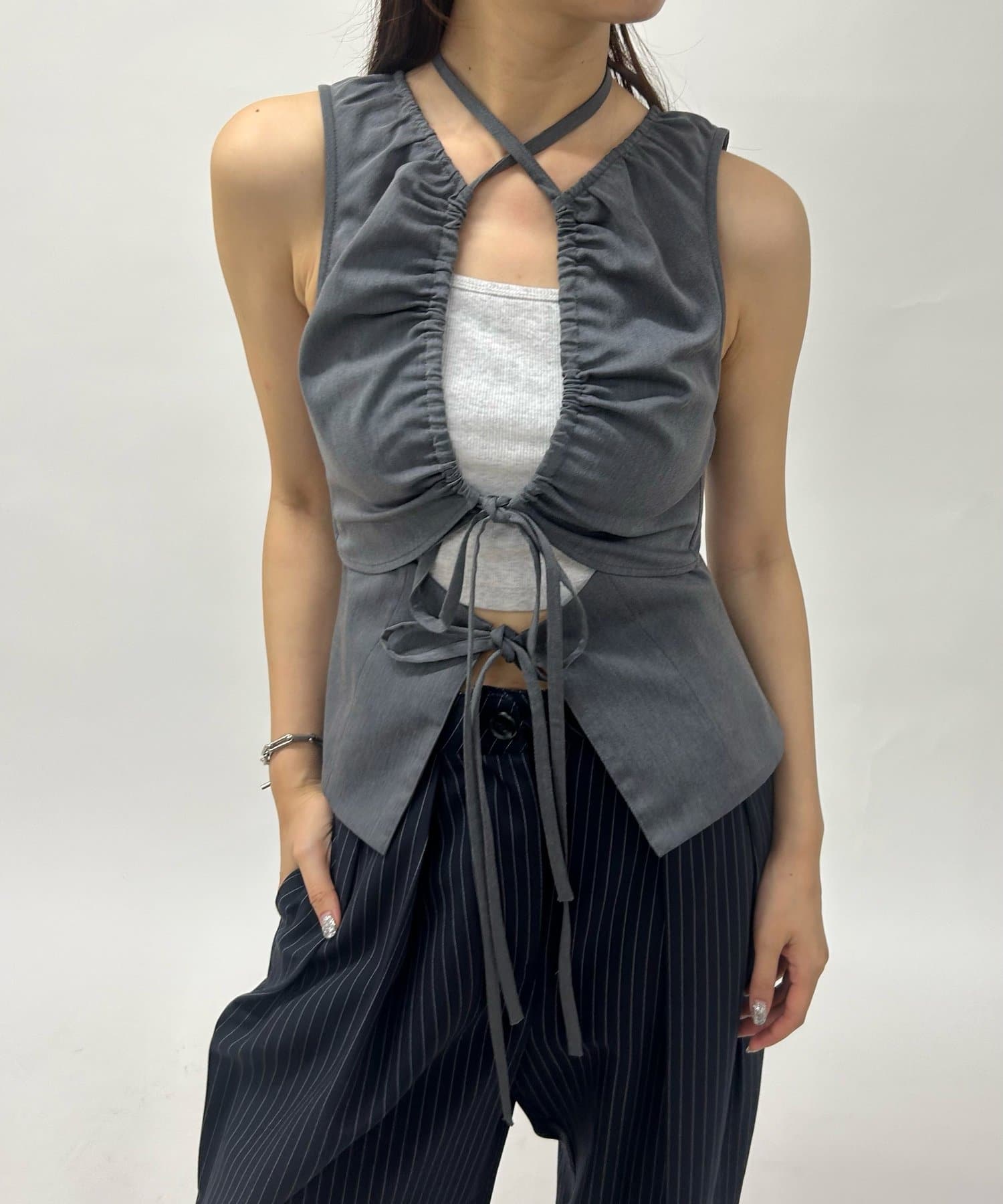 ・1番上の紐は首元に巻くだけでもまた雰囲気が変わるのでオススメです。