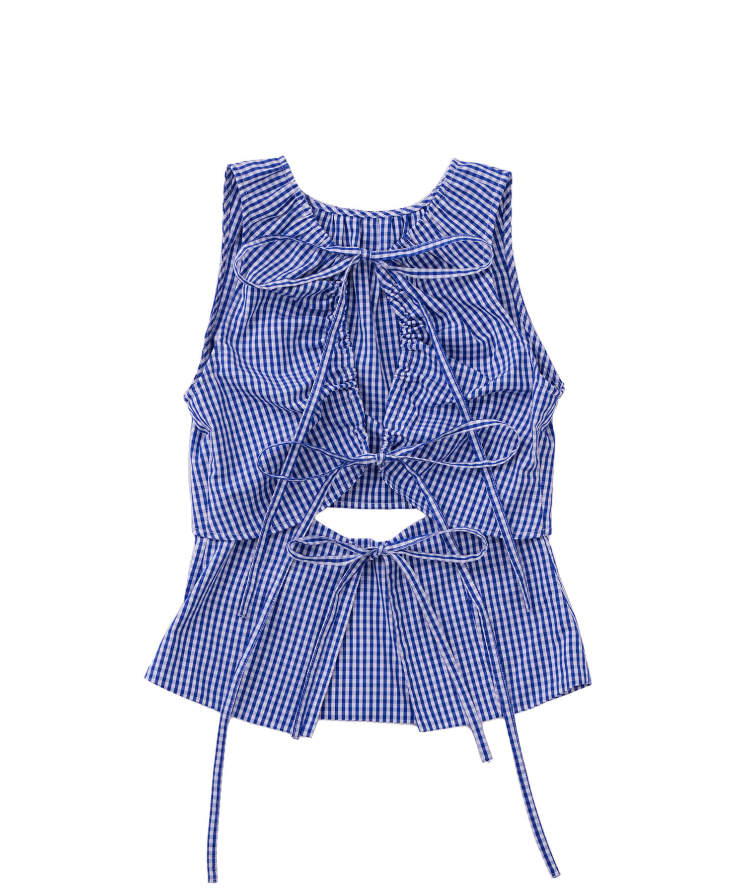 ・ギャザーデザインに加えて3連リボンがトレンディーな雰囲気に。