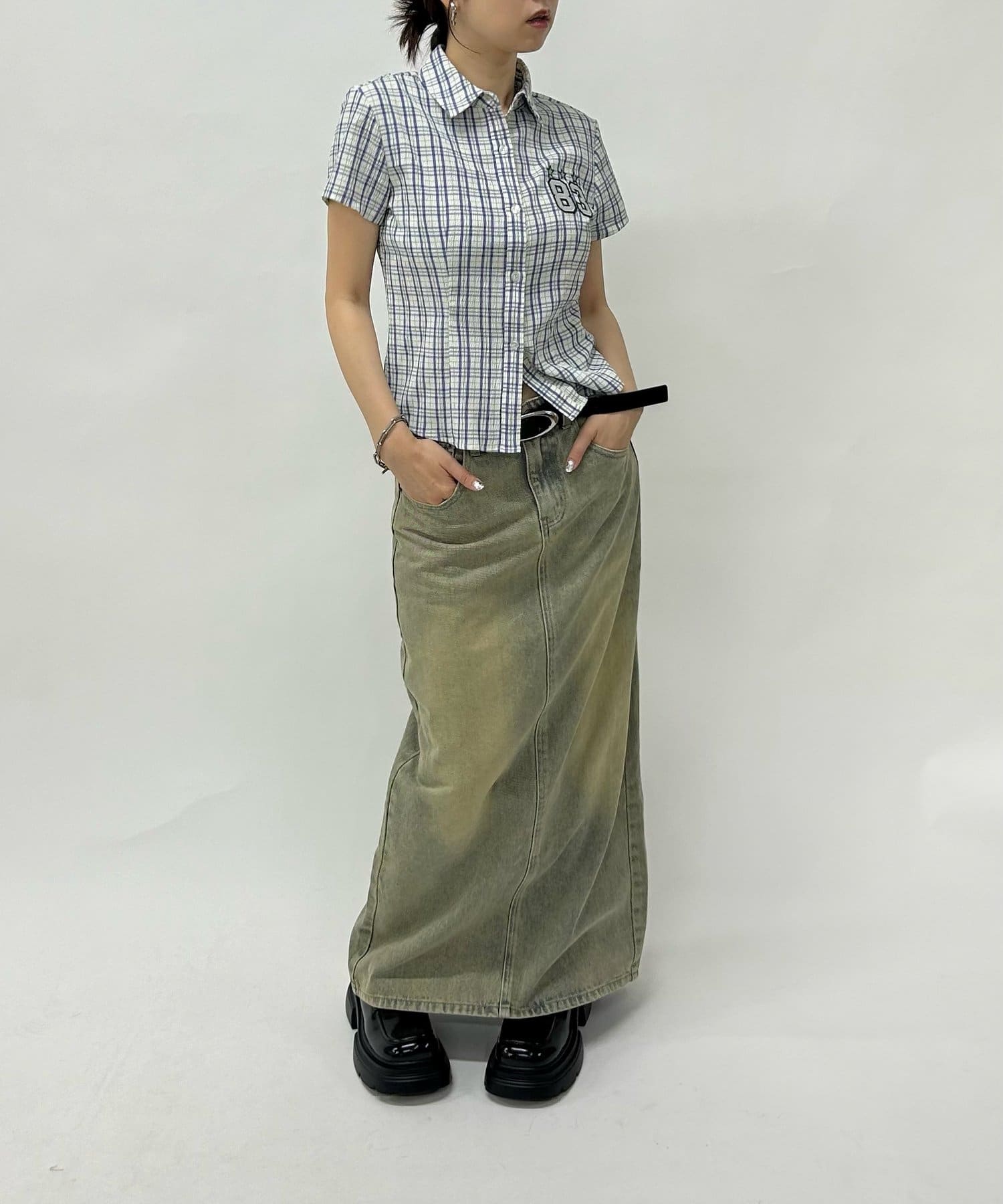 *同じく加工が特徴のワイドデニムとミニスカートもあります。