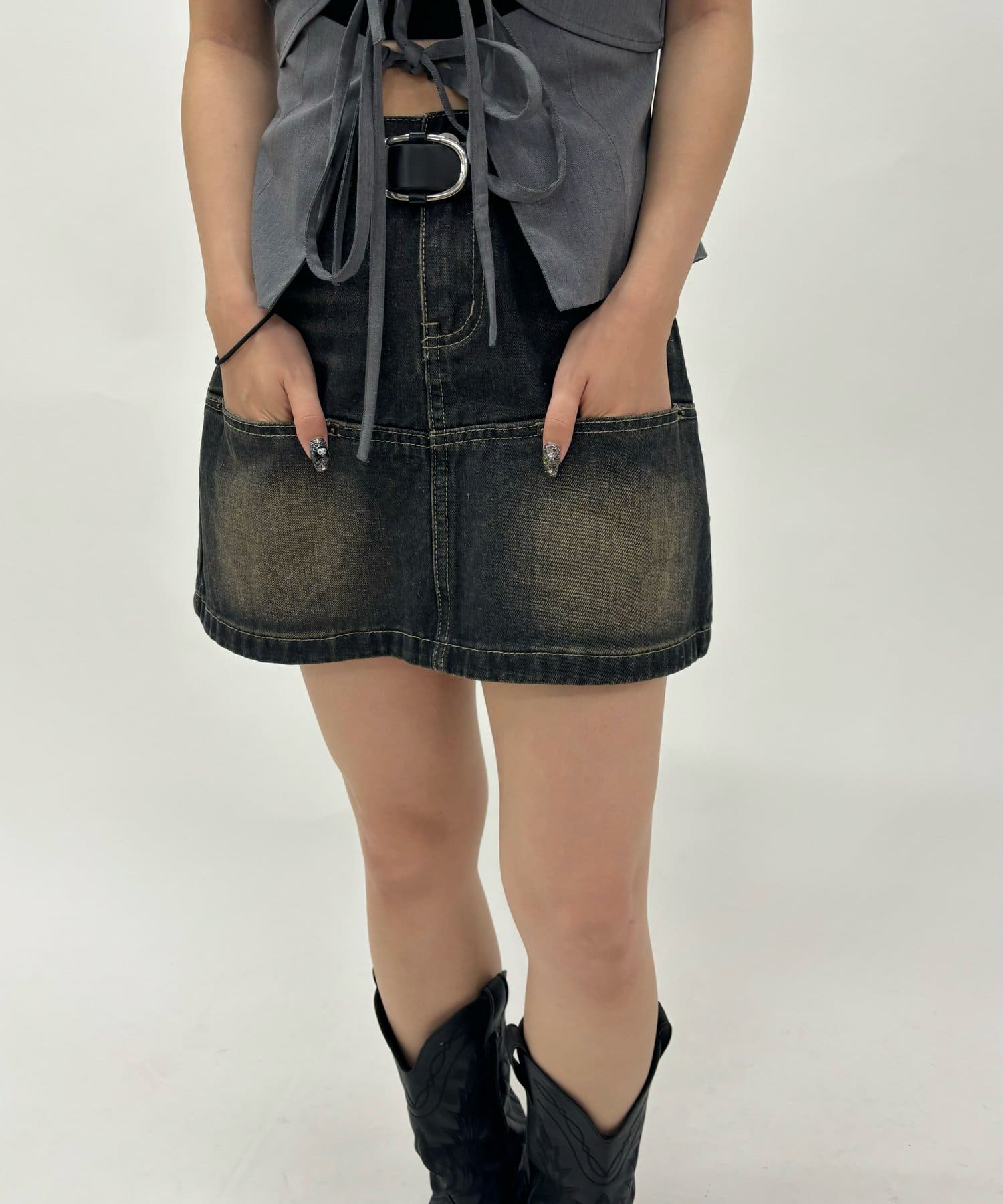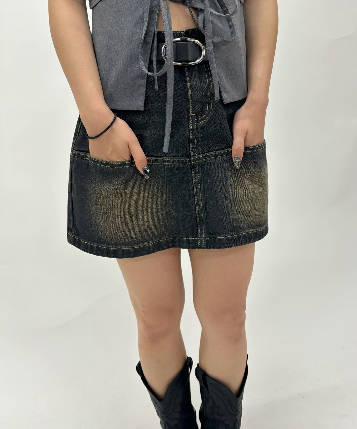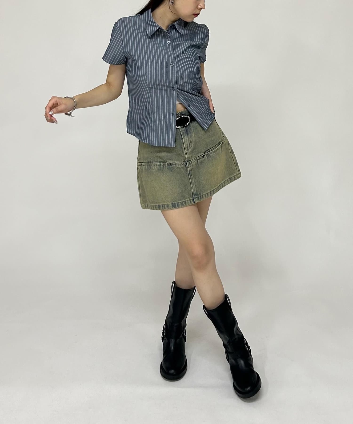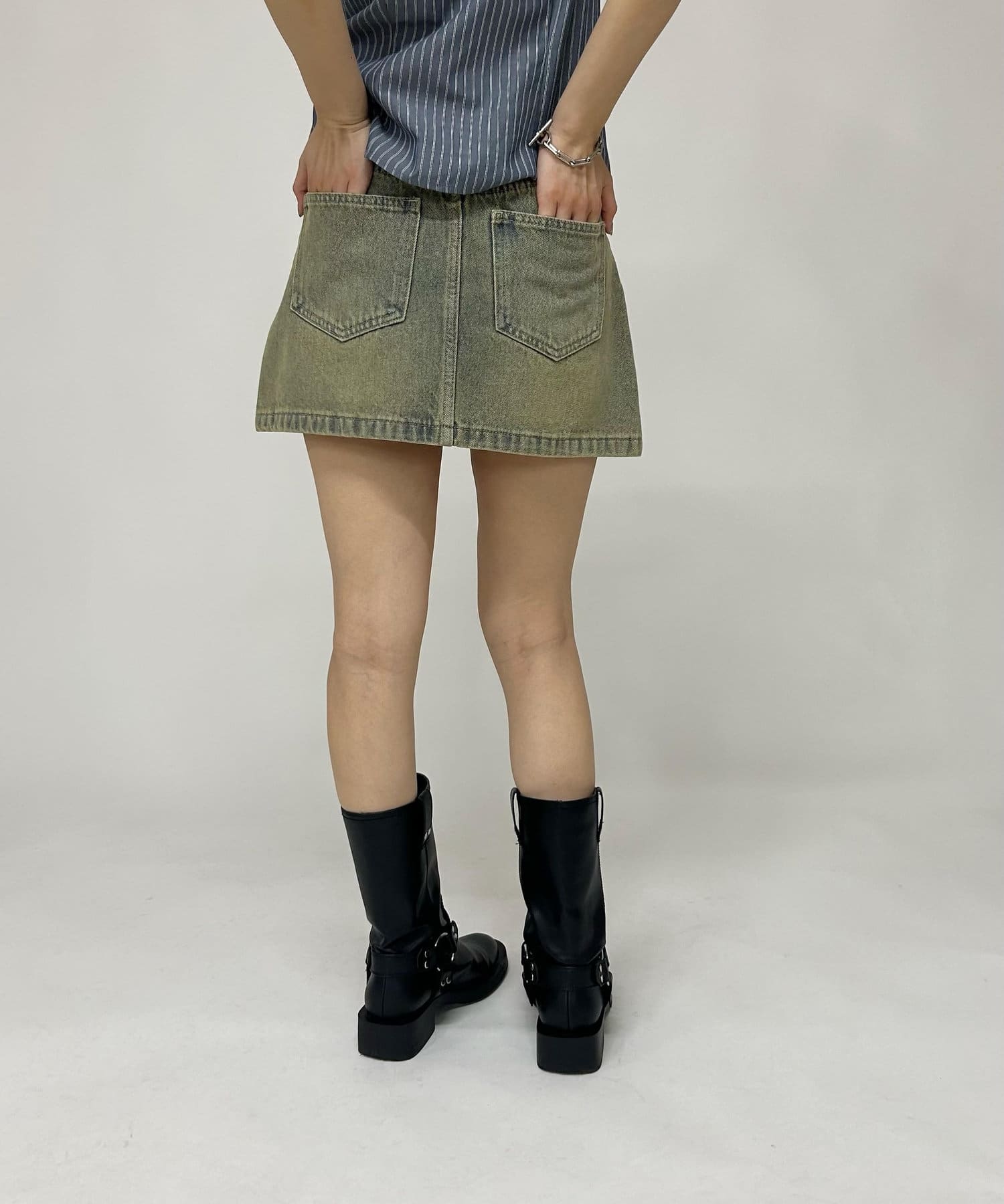・トレンドの加工感とミニ丈でギャルっぽさもあるスカートです。
