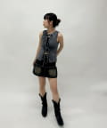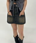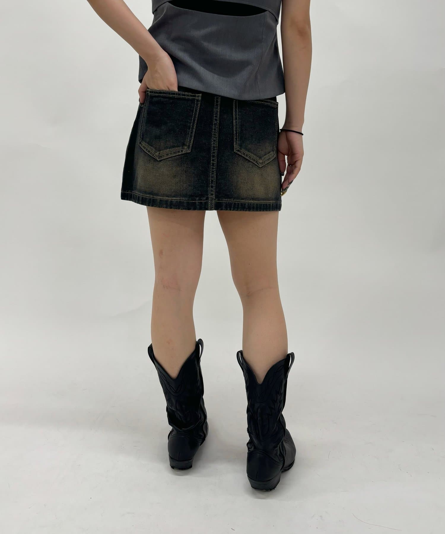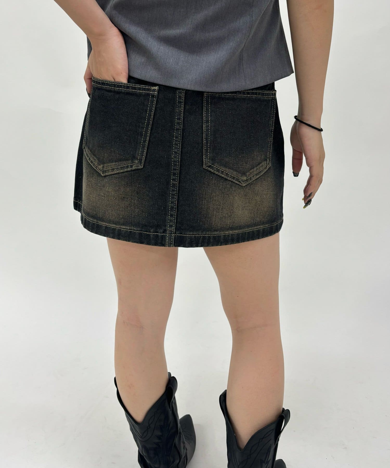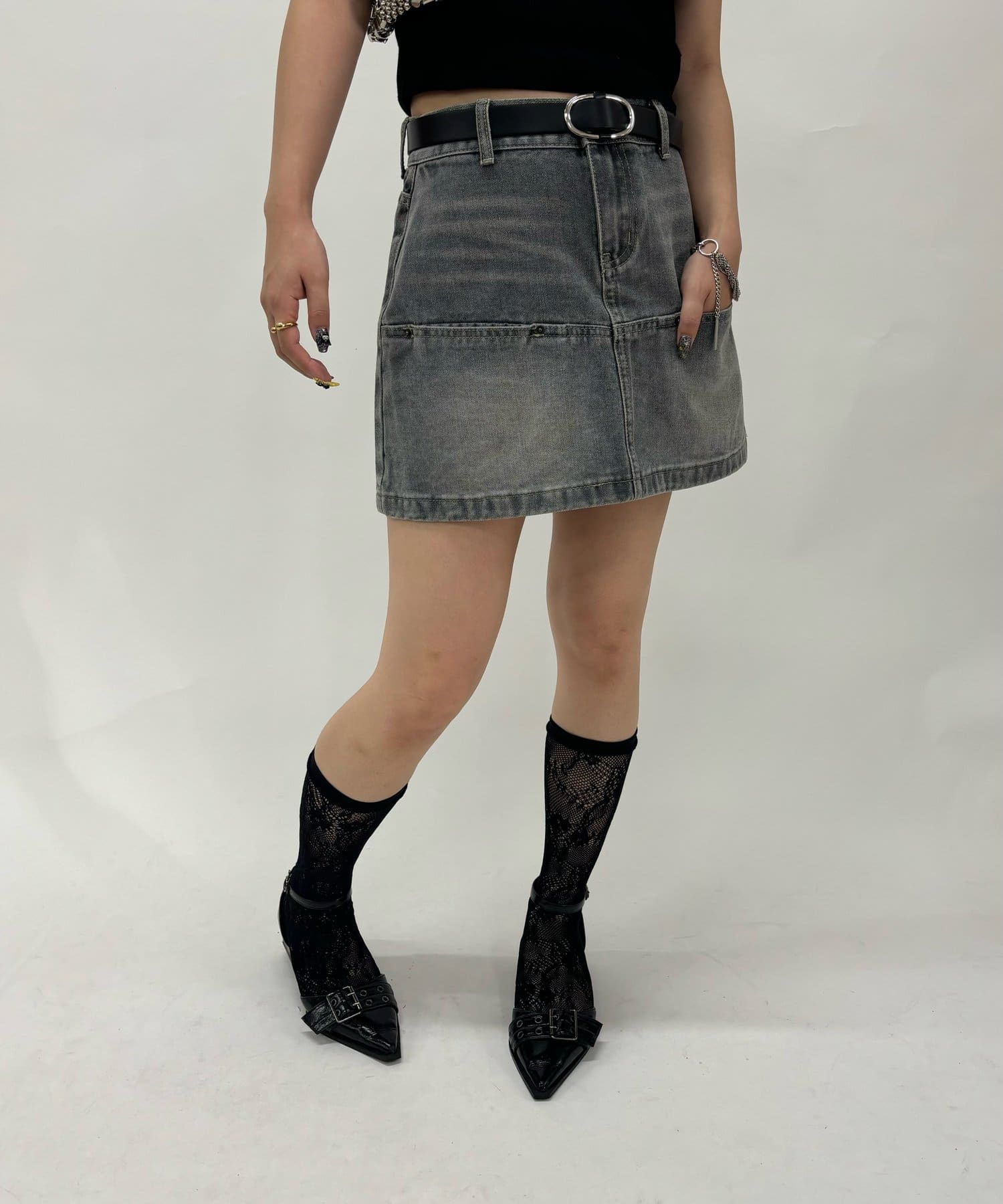 ・トレンドの加工感とミニ丈でギャルっぽさもあるスカートです。