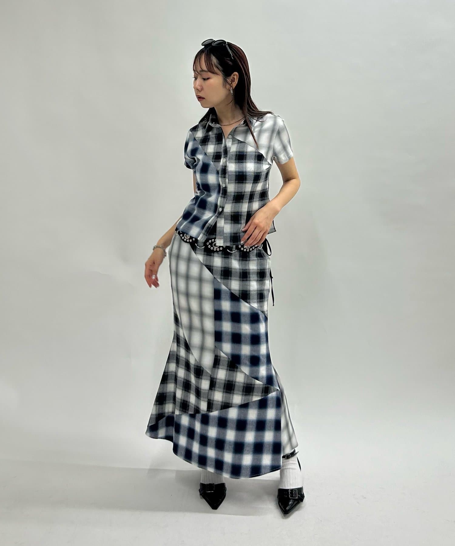 ・チェック柄でカジュアルに見えるので、シャツでモード要素もプラスワンすると
