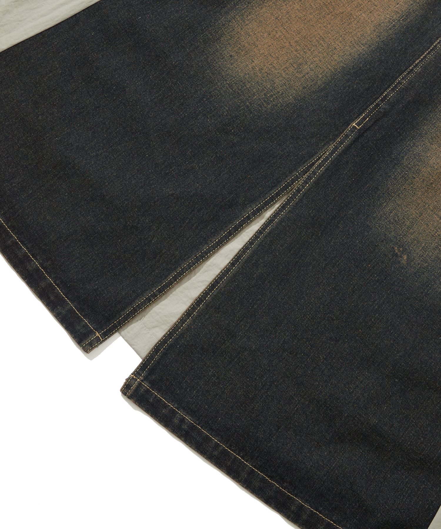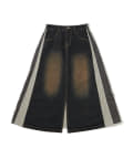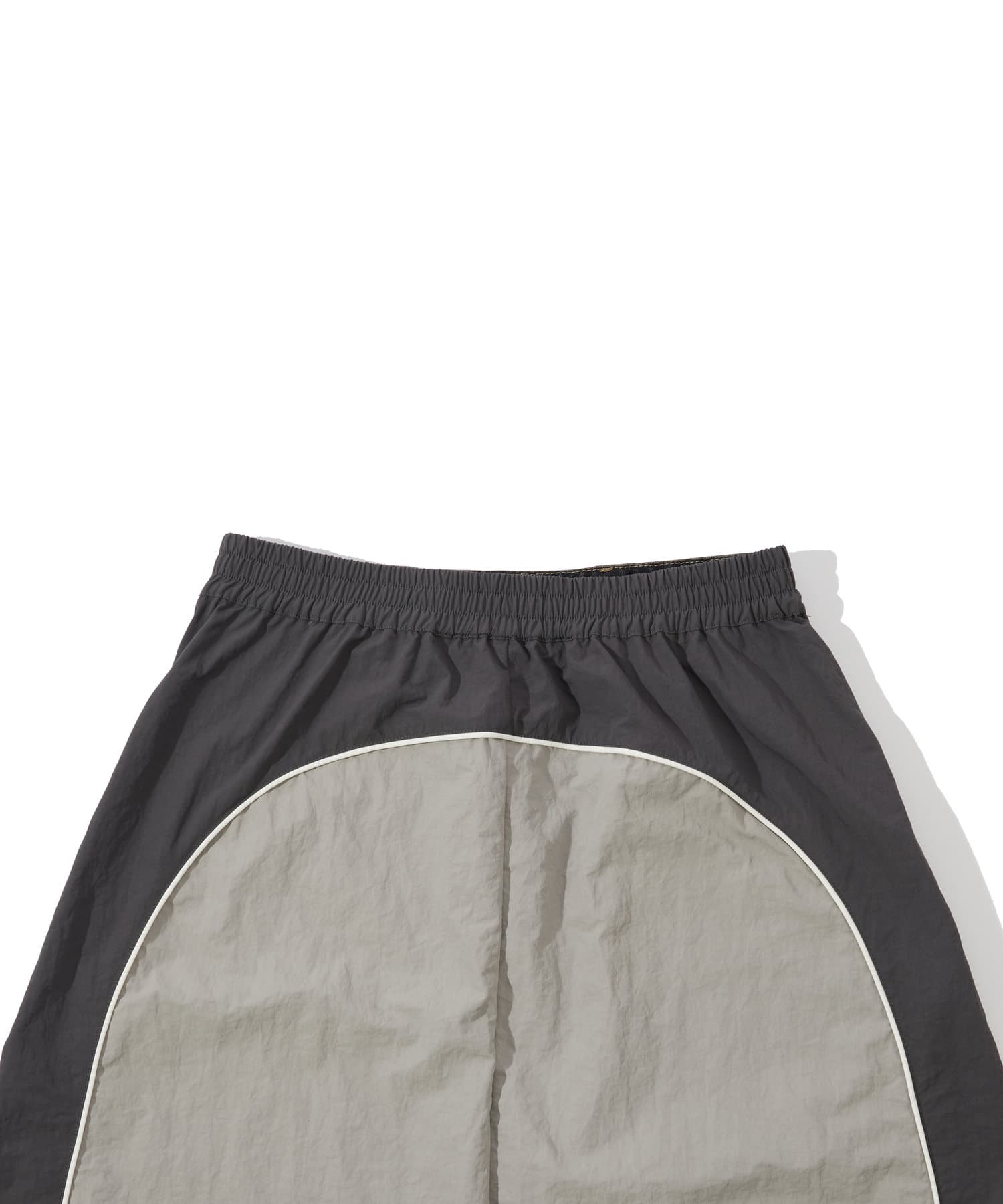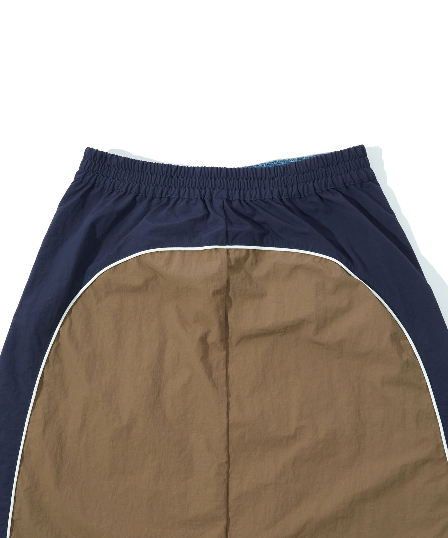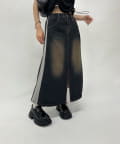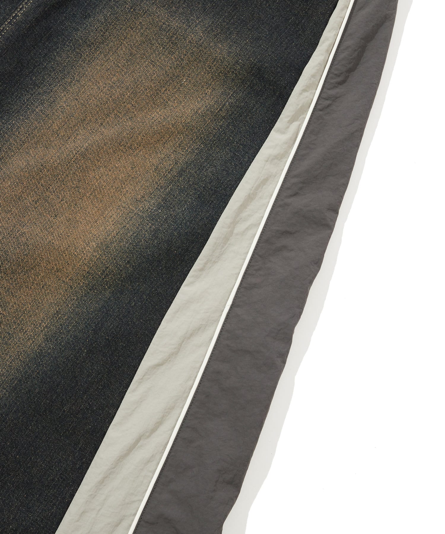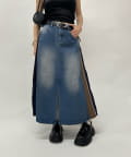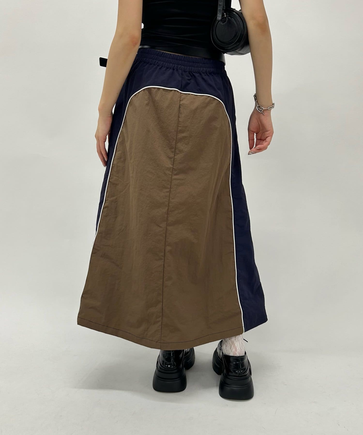 ・前がデニムで後ろがナイロンで切り替わっているデザインスカート。