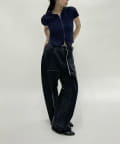 ・ルーズなボトムでメリハリをつけたスタイル、細身のボトムでY2Kスタイル、