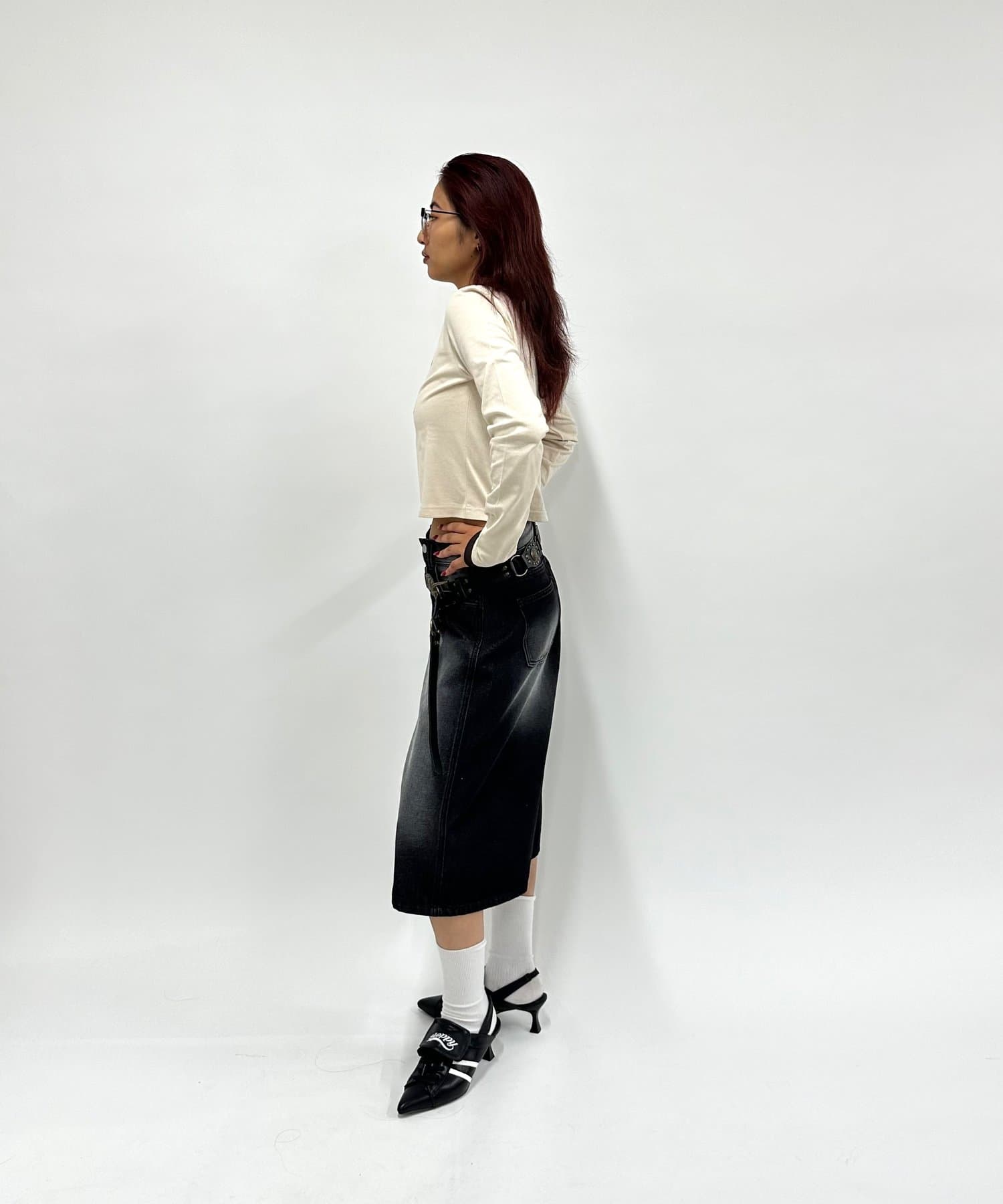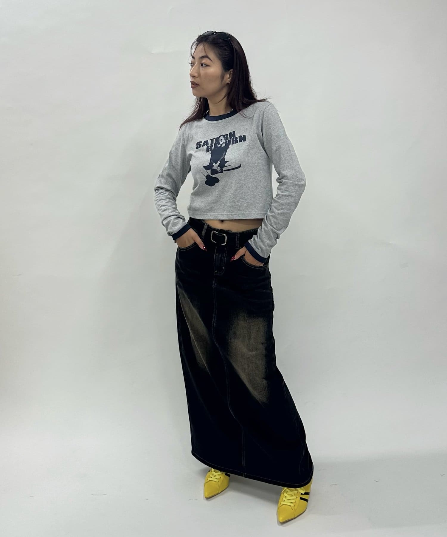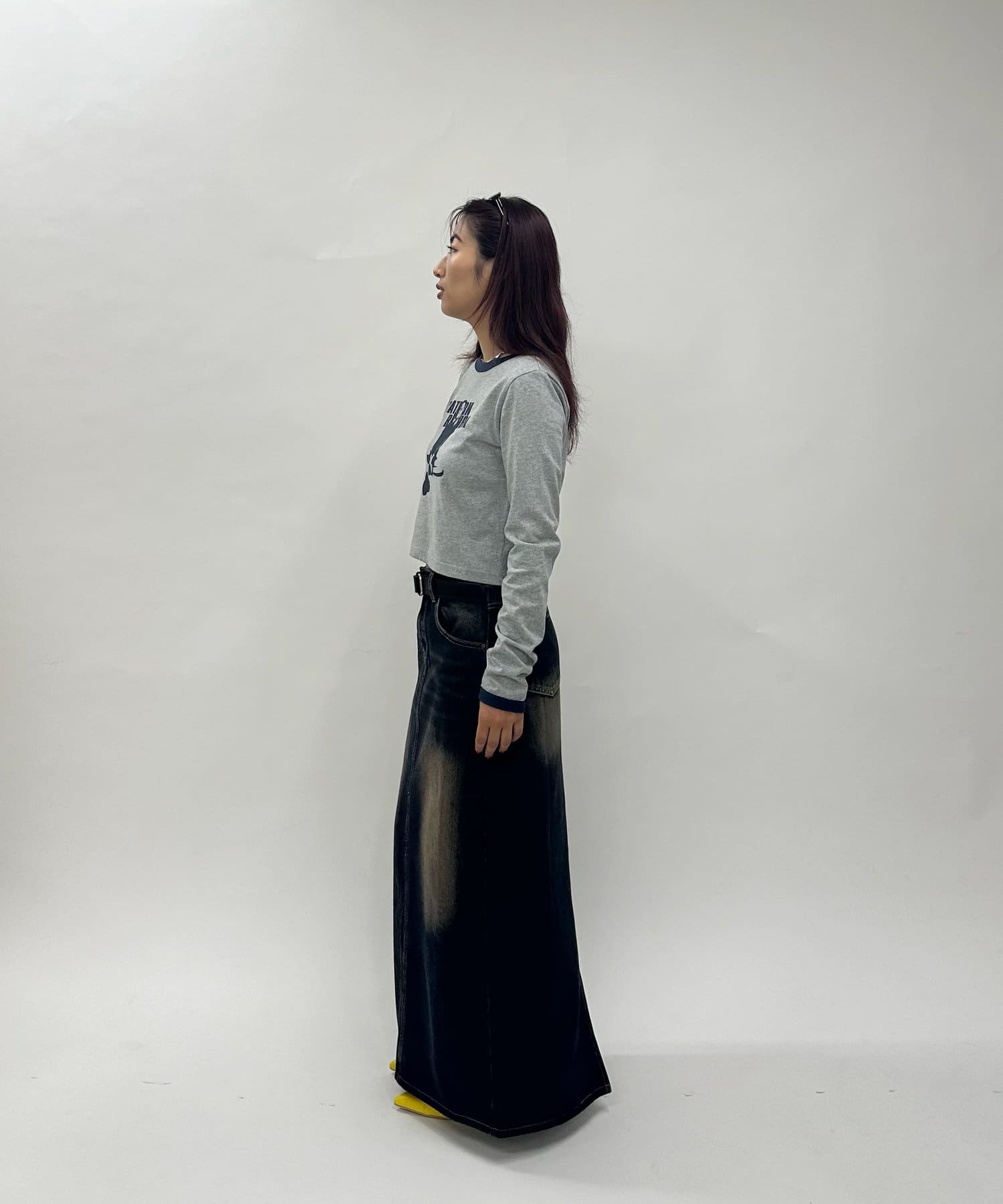 ・Fサイズは、少しタイトなロングスカートでバランス良く縦のラインでスタイルアップ。