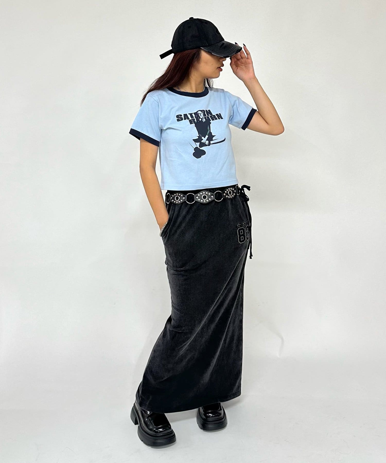 ・Fサイズは、少しタイトなロングスカートでバランス良く縦のラインでスタイルアップ。