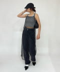 ・シアー素材なので、トレンドの加工感のあるボトムスと重ね着で少し透けるのがポイント。