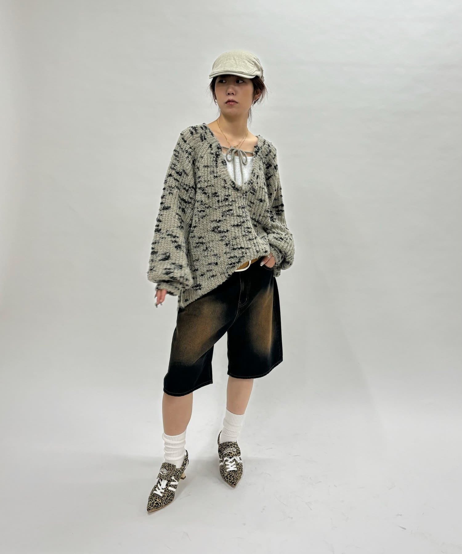 • 158cm/骨格ウェーブPT:SLOPPYハーフデニム
