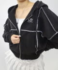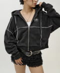 リンキングデザインが特徴的なトレンドのジップパーカー。