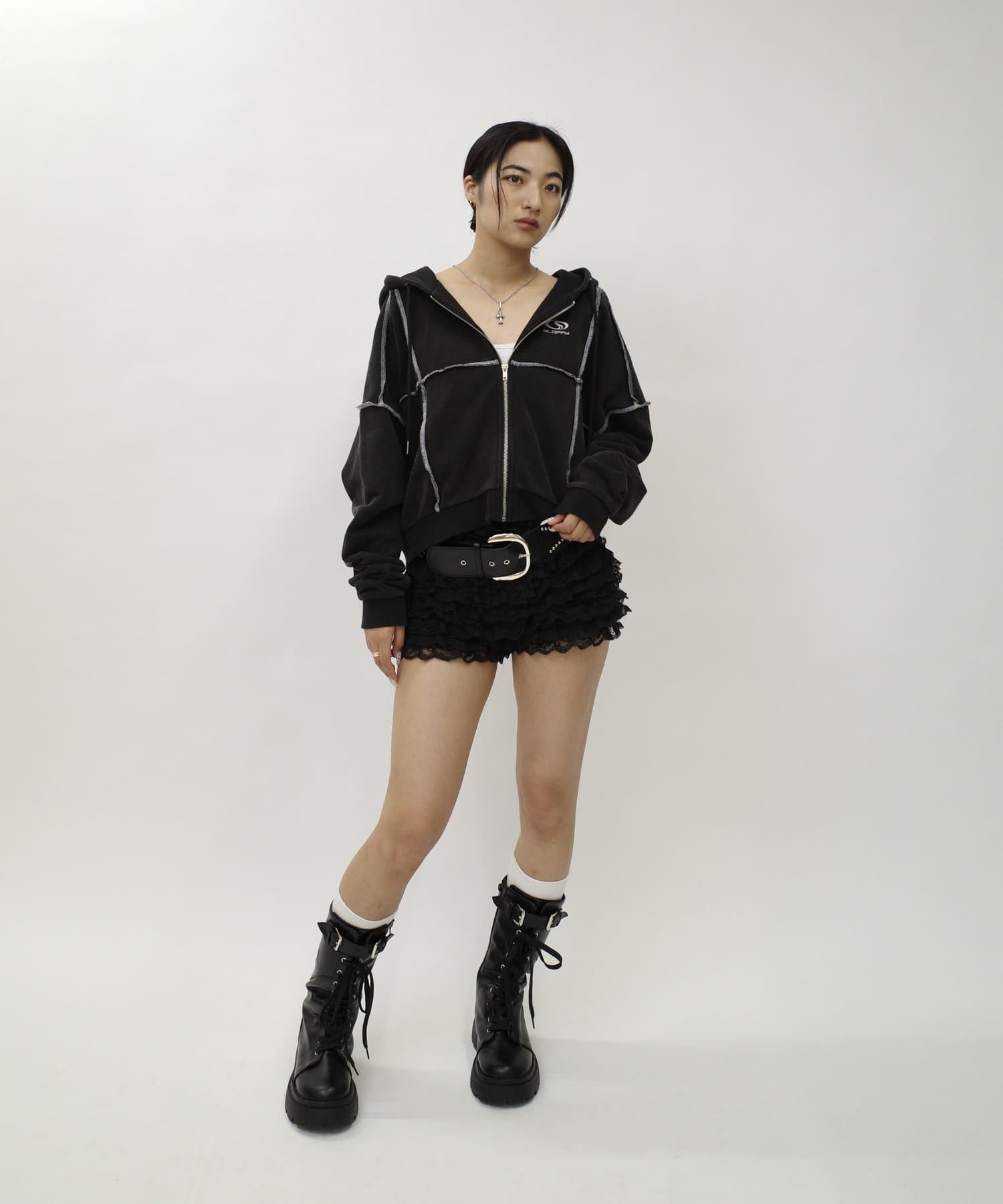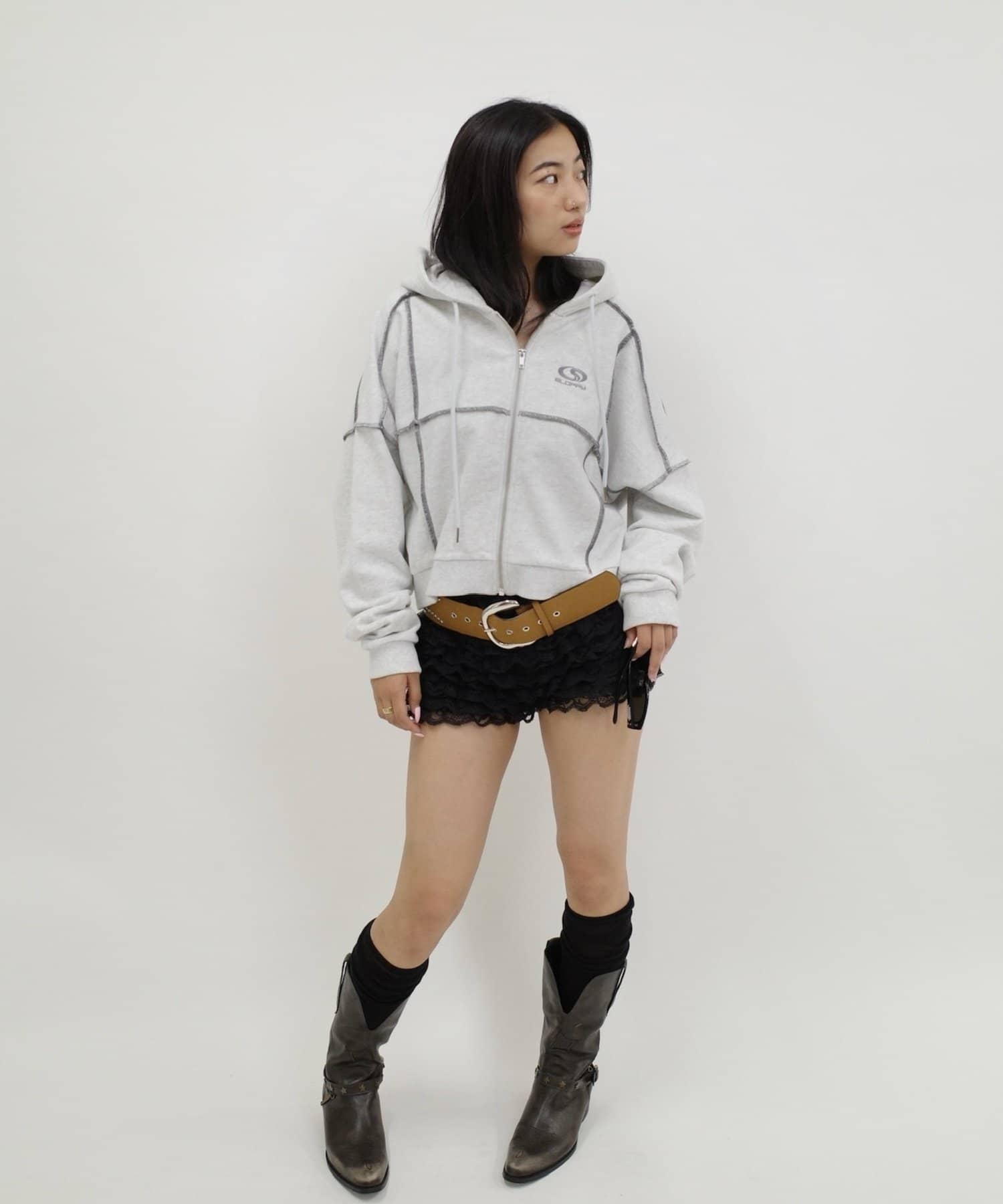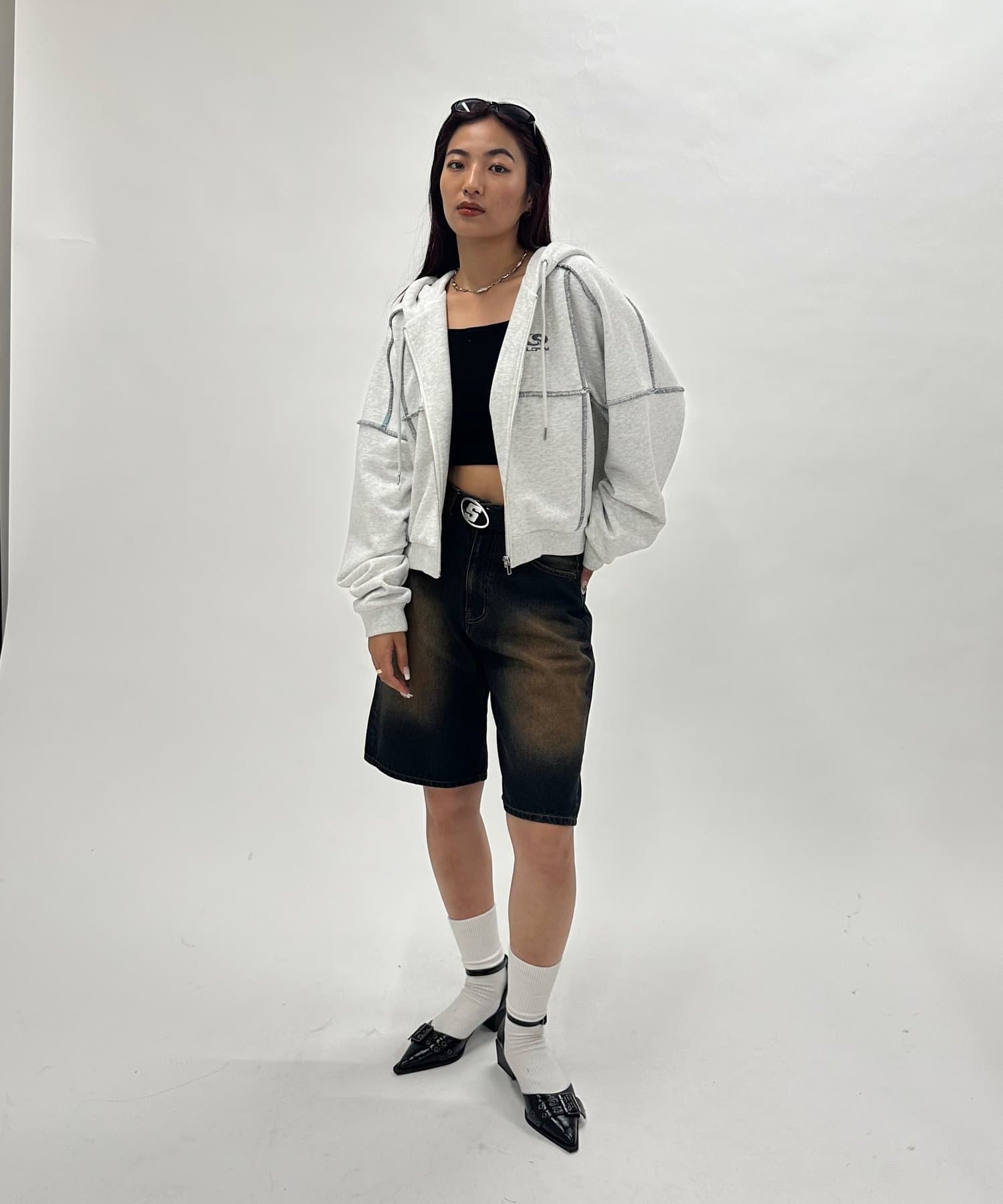 ミニ丈ボトムと合わせると、今年らしいギャルストリートスタイルにアップデート。