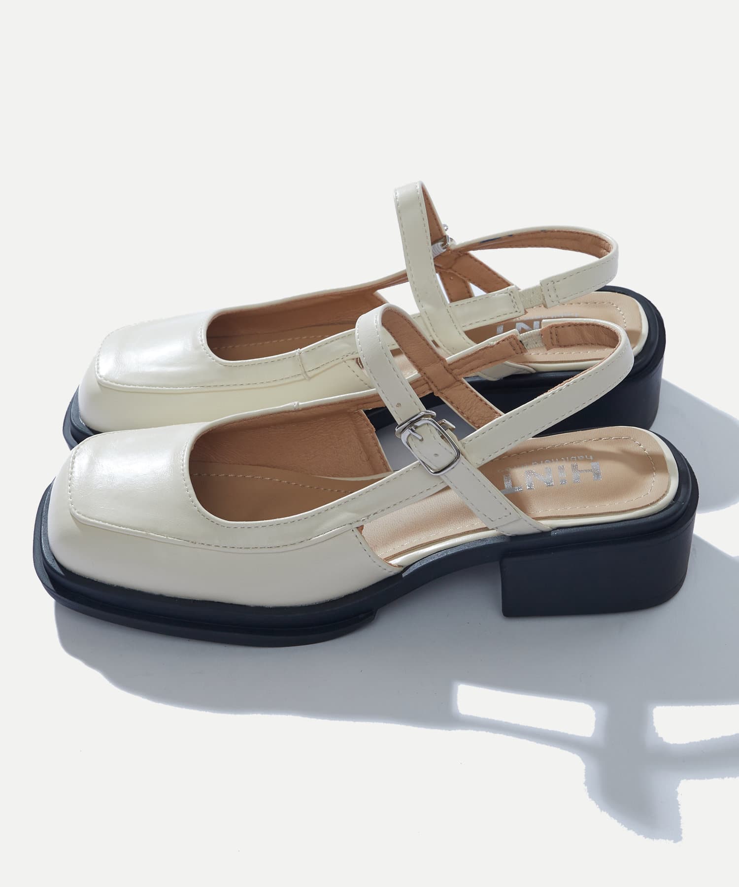 ・カジュアルからモードまで幅広いスタイルにハマる、スクエアのミュール。
