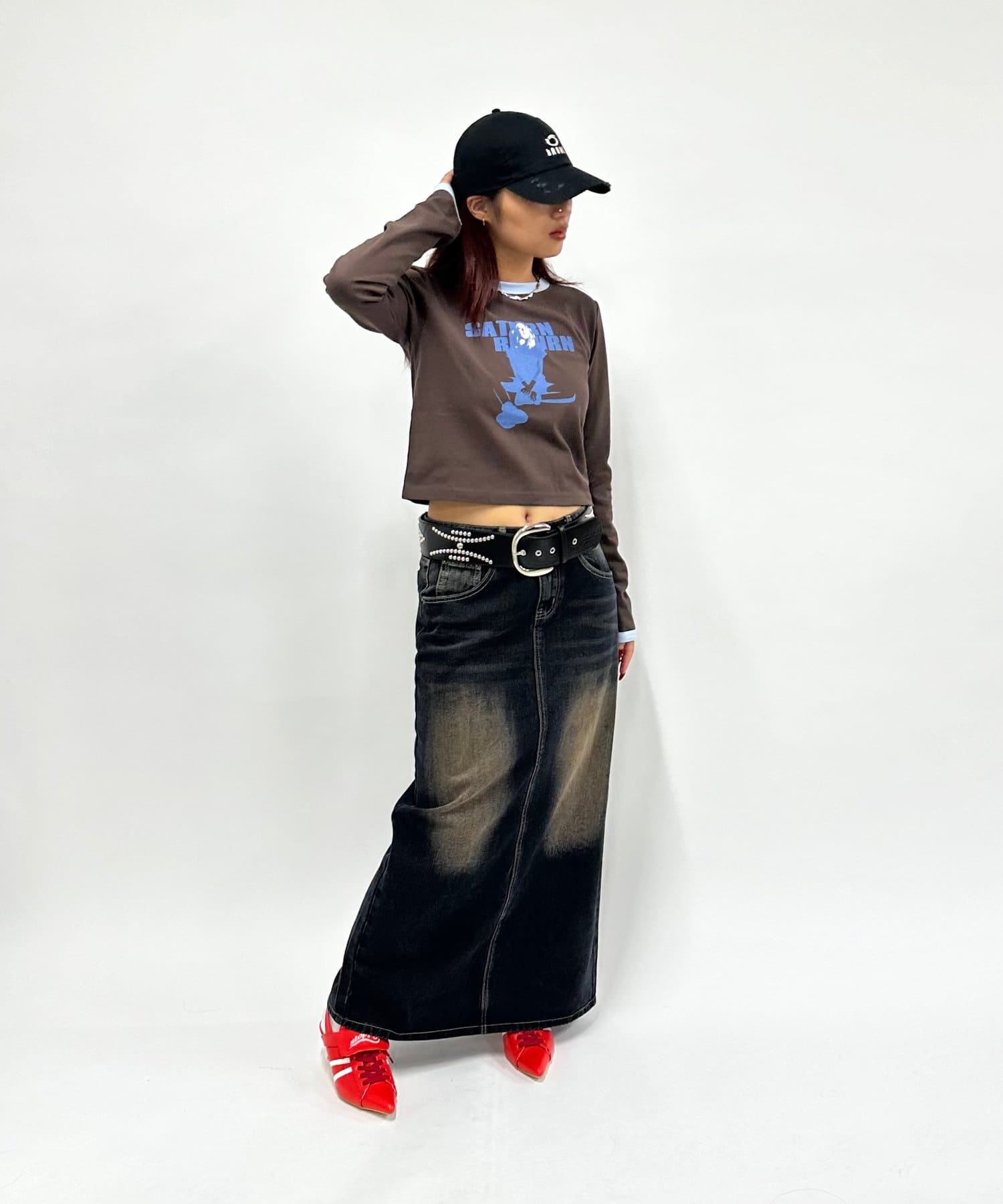 →オーバーダイデニムロングスカート