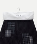 ・パッチワークと糸のほつれ感とストライプが、モードな雰囲気を演出