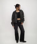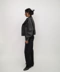 ゆったりとしたトップスでシルエットをバランスよくスタイルアップにつながります。