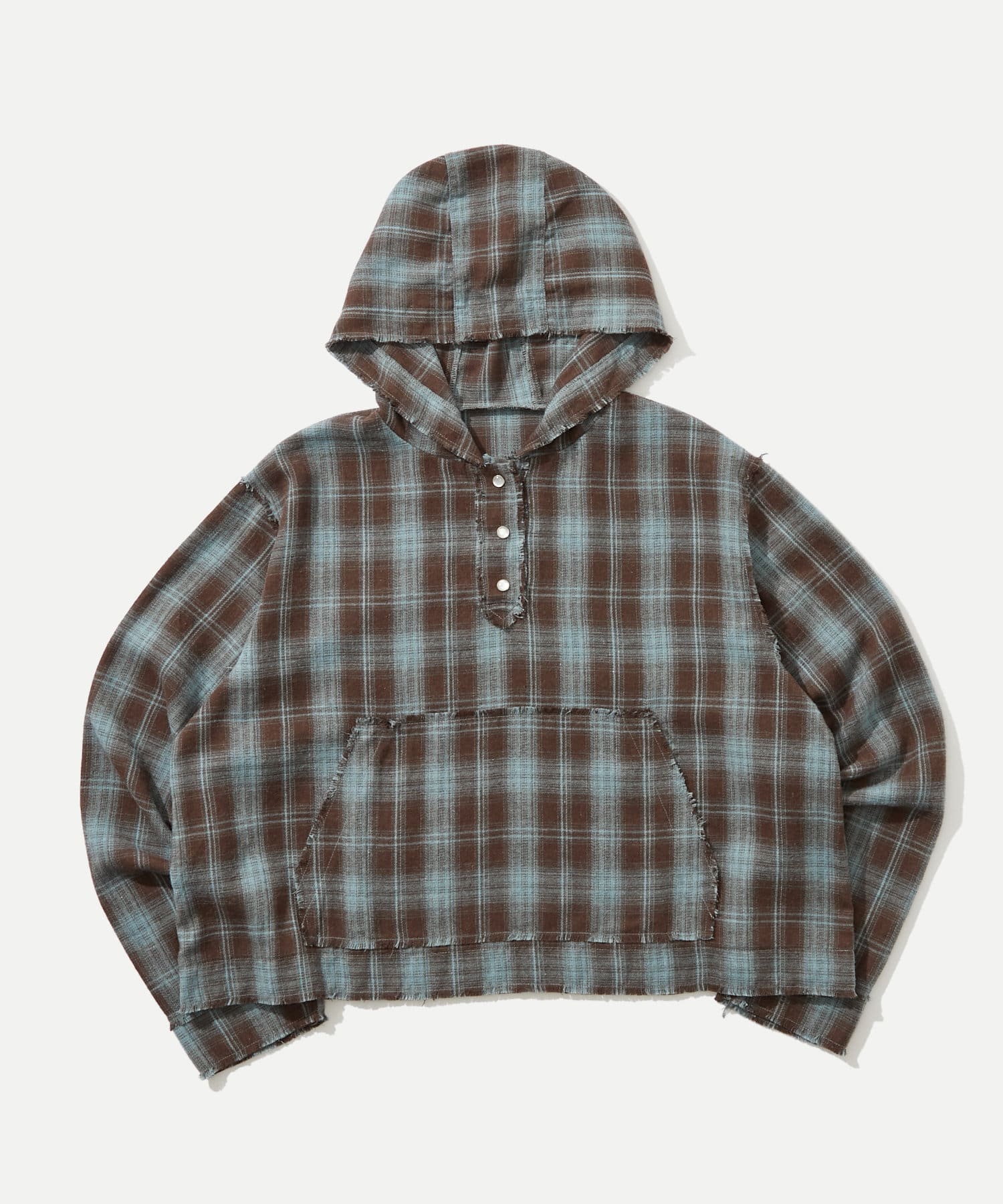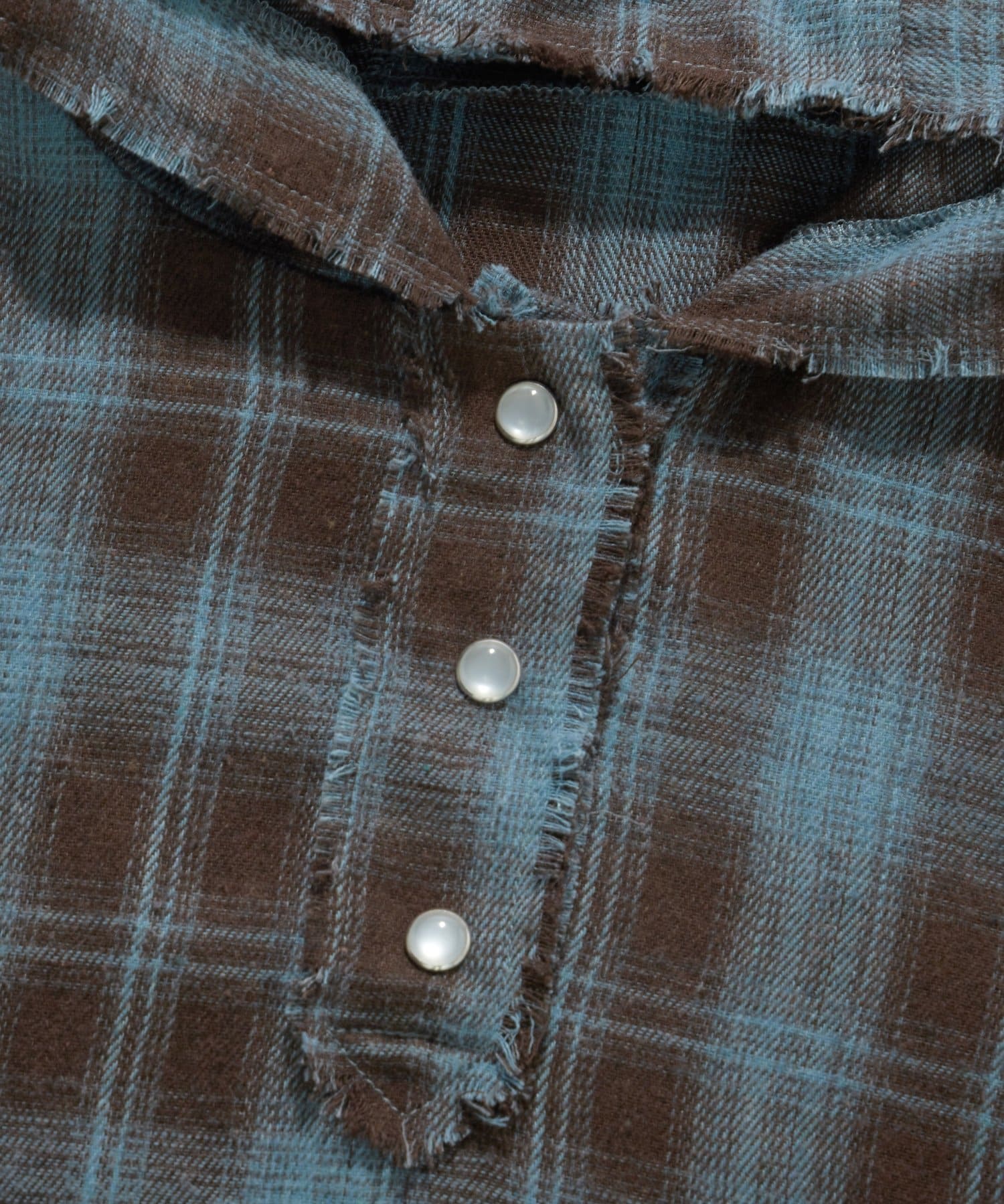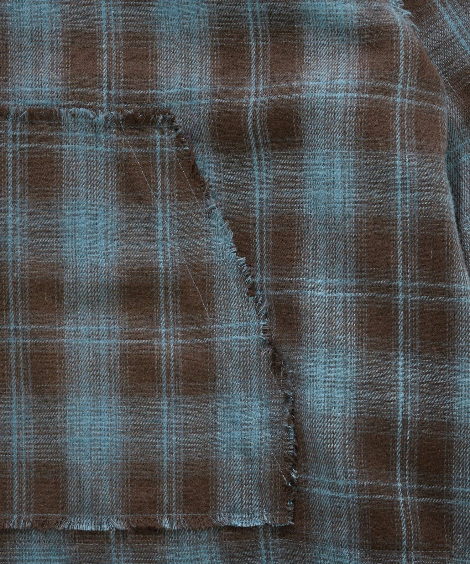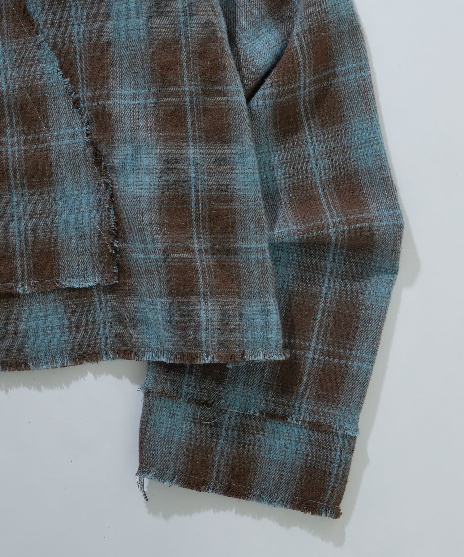 ・切りっぱなしのような、糸のほつれ感がポイントのチェックシャツ。