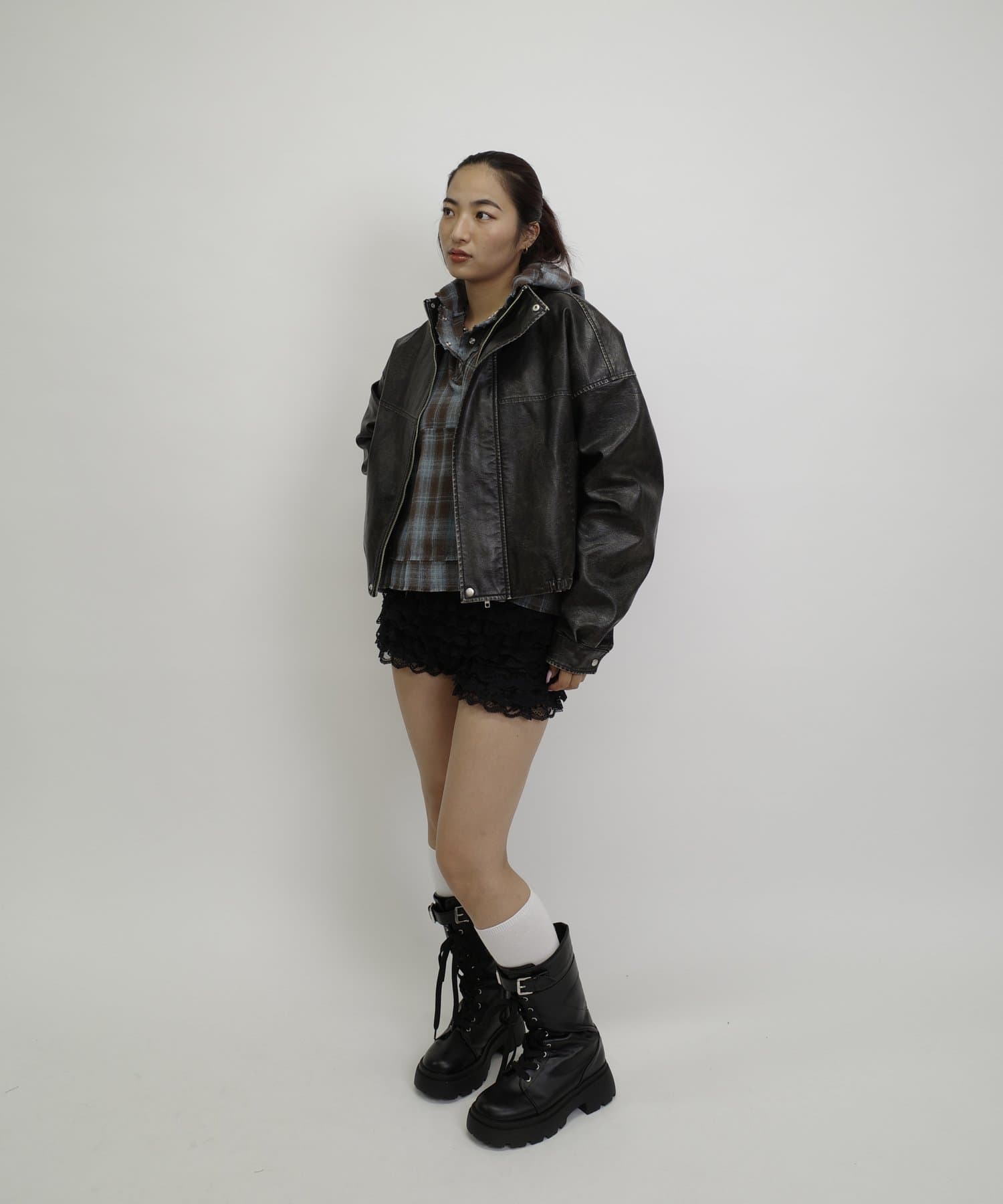 • 160cm/骨格ナチュラルOUTER:ヴィンテージライクレザーブルゾン