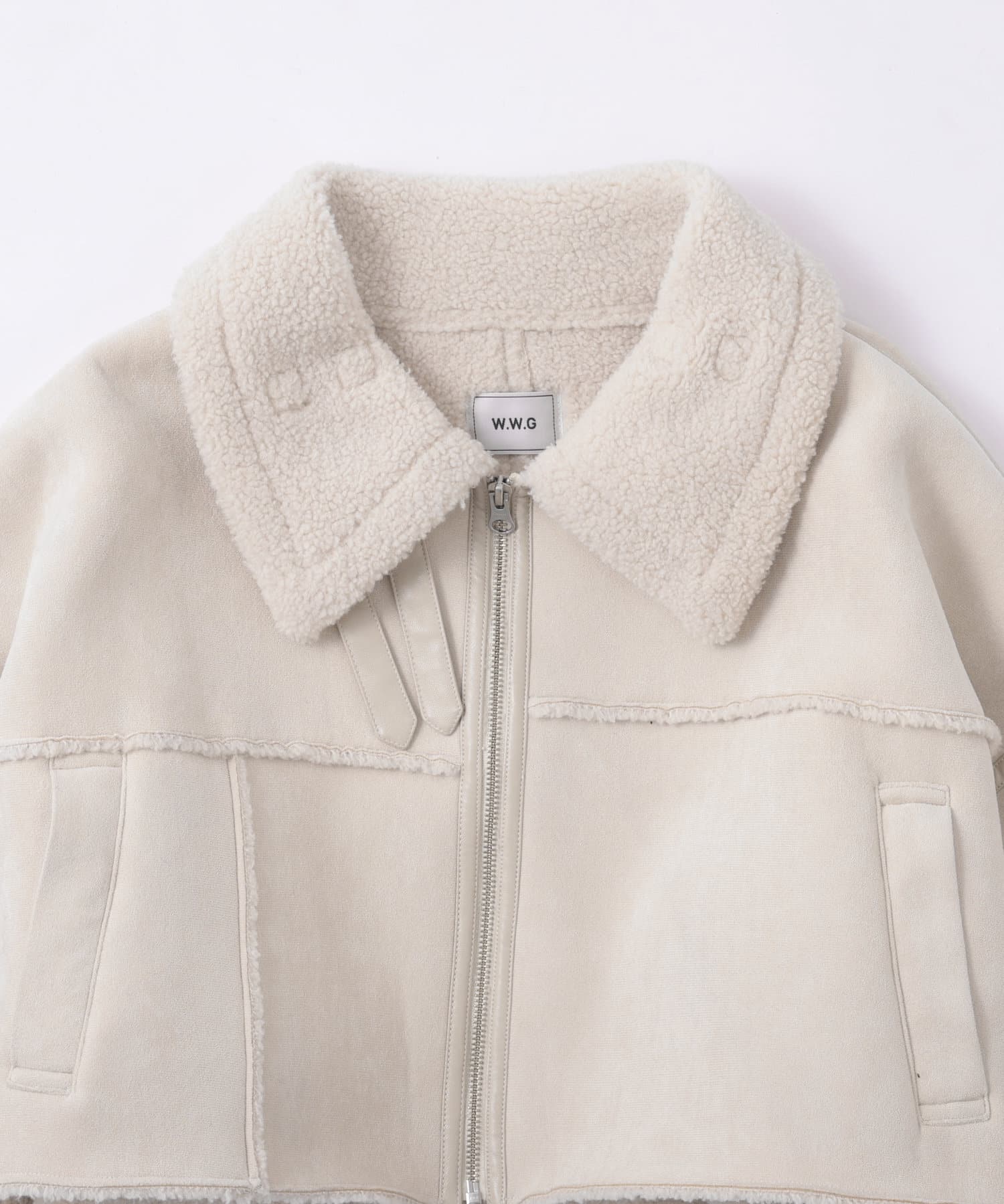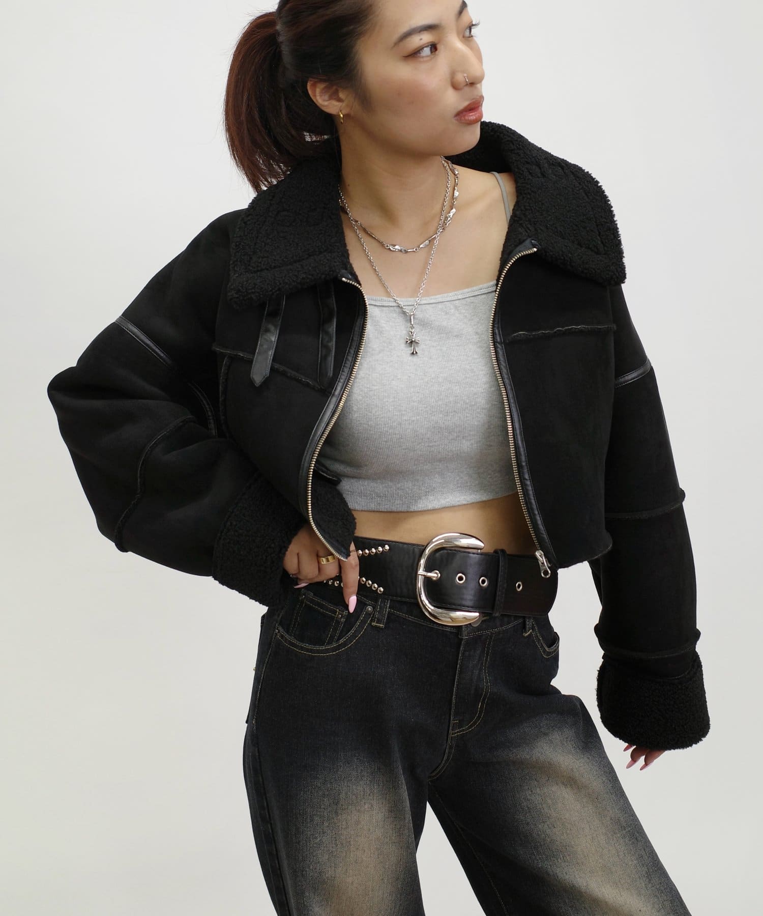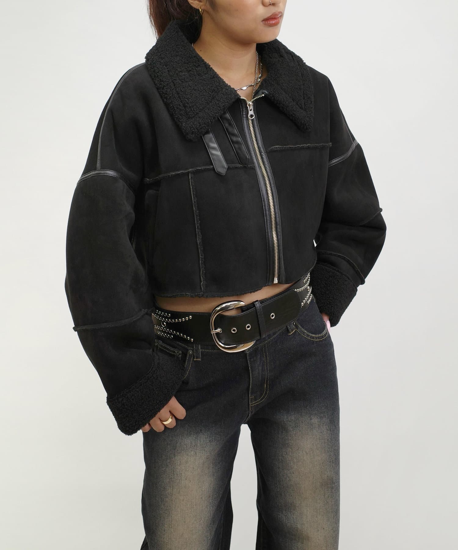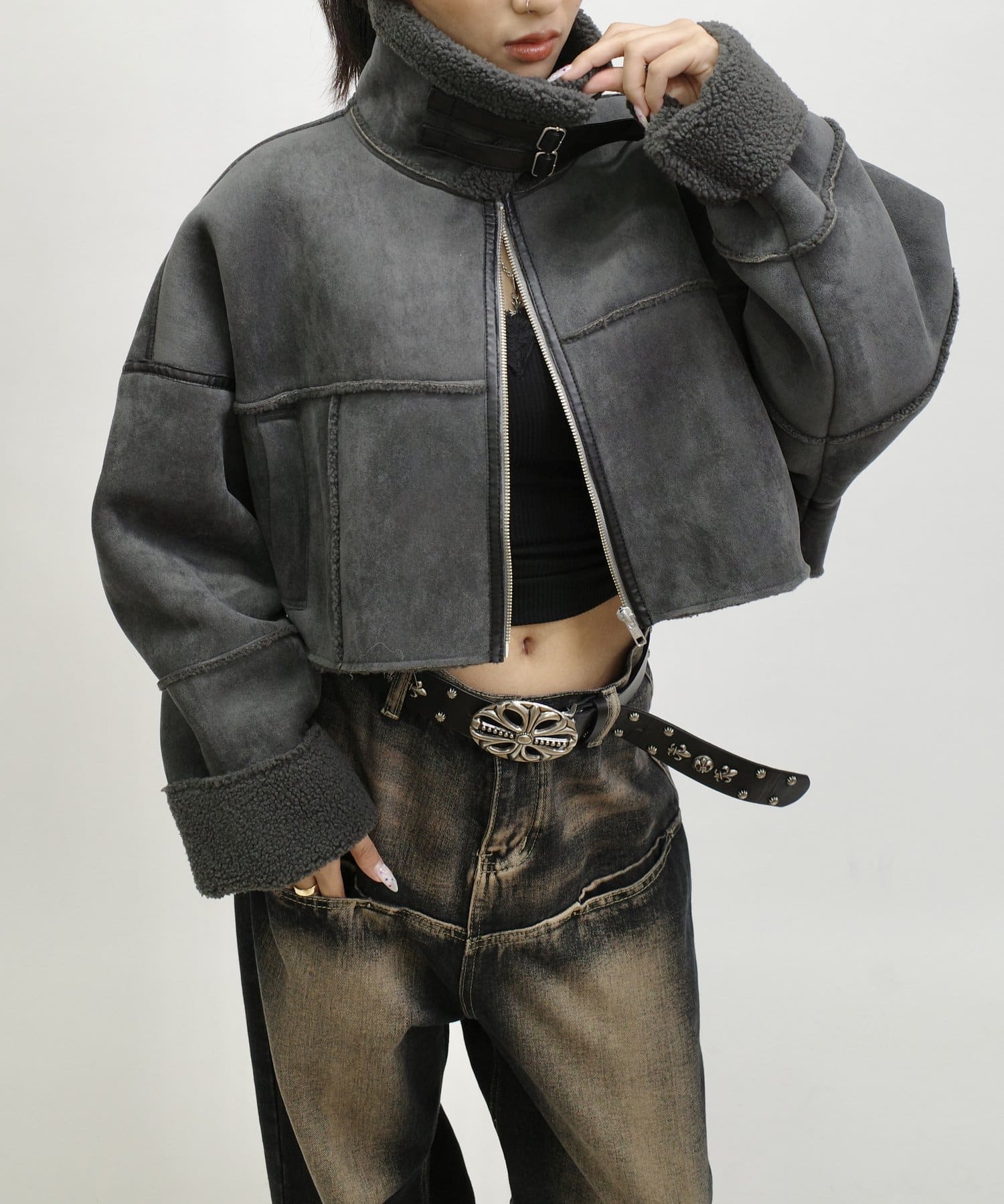 ショート丈にハイネックがポイントのムートンジャケット!