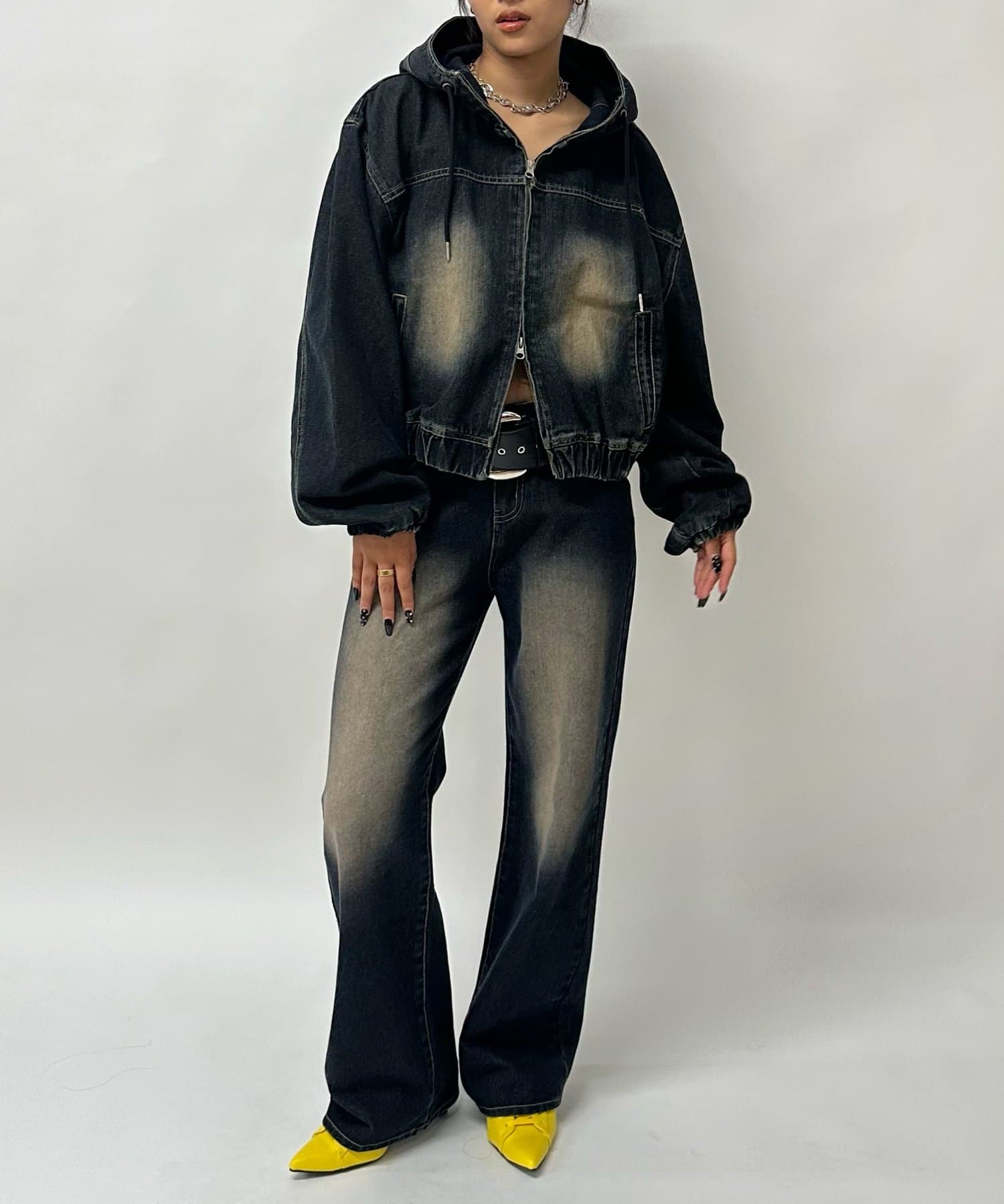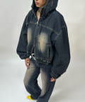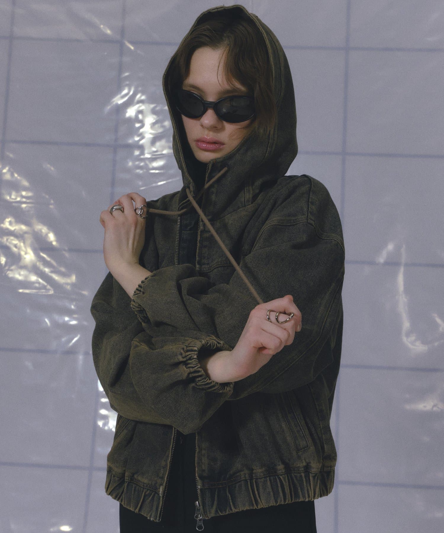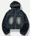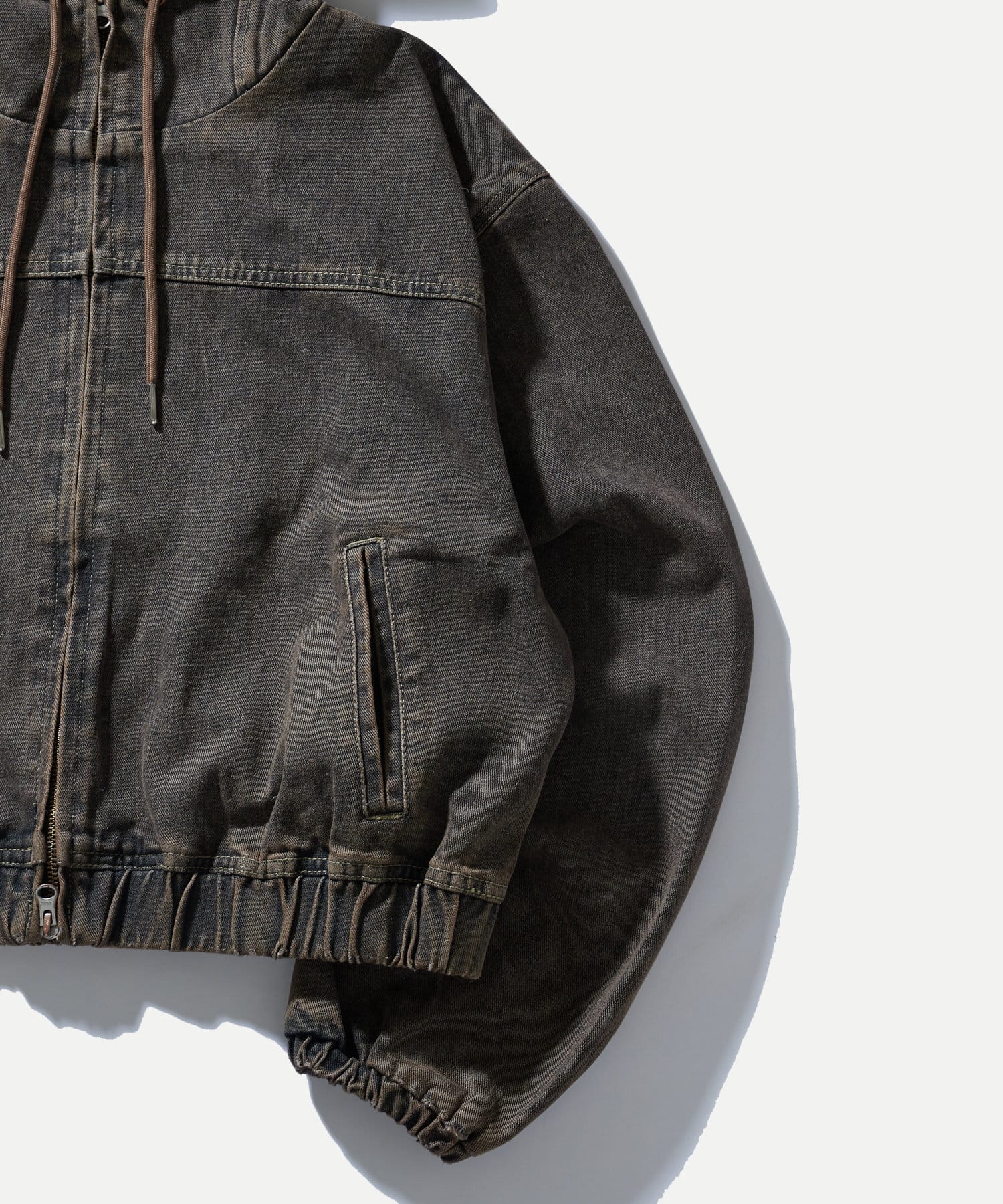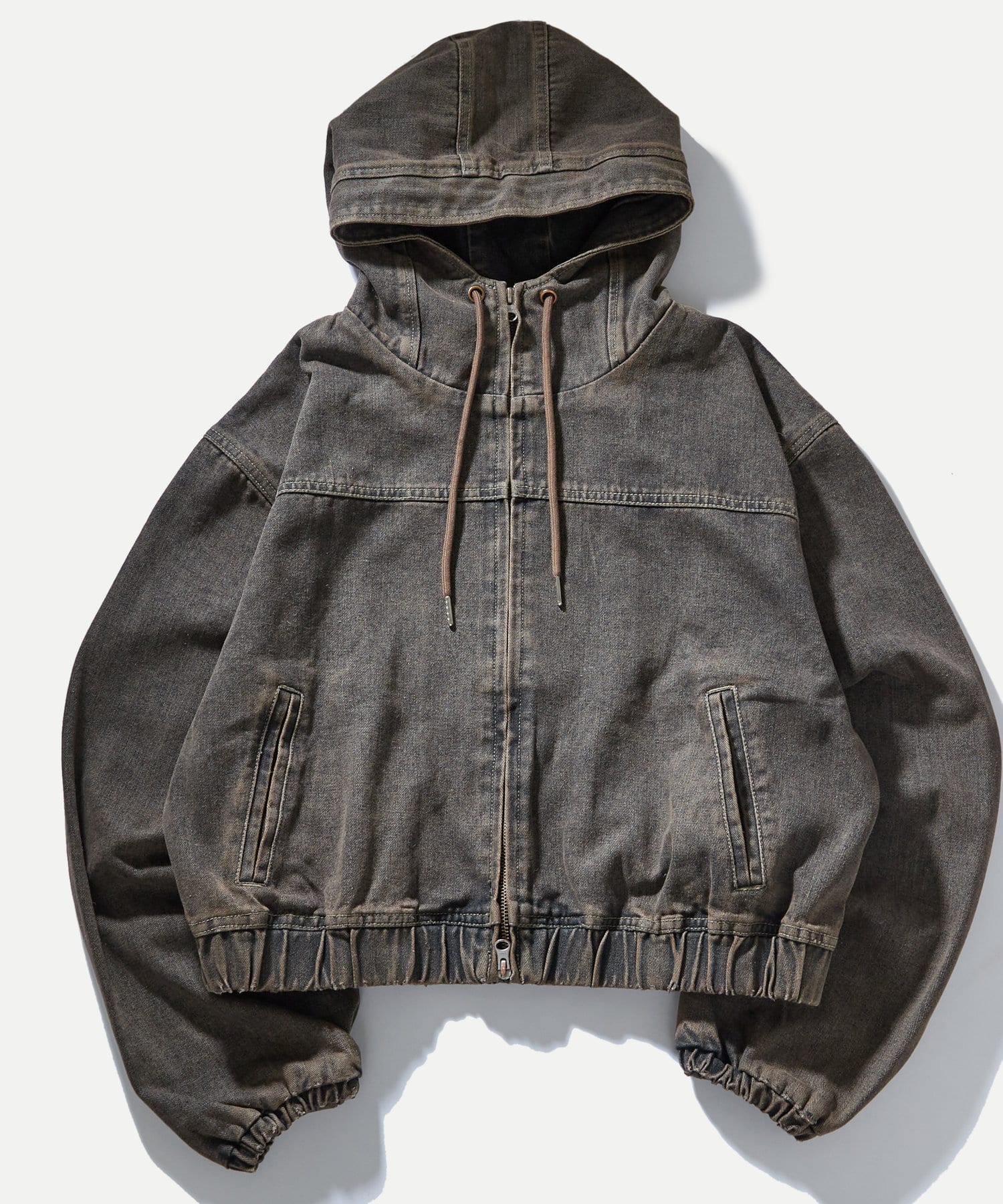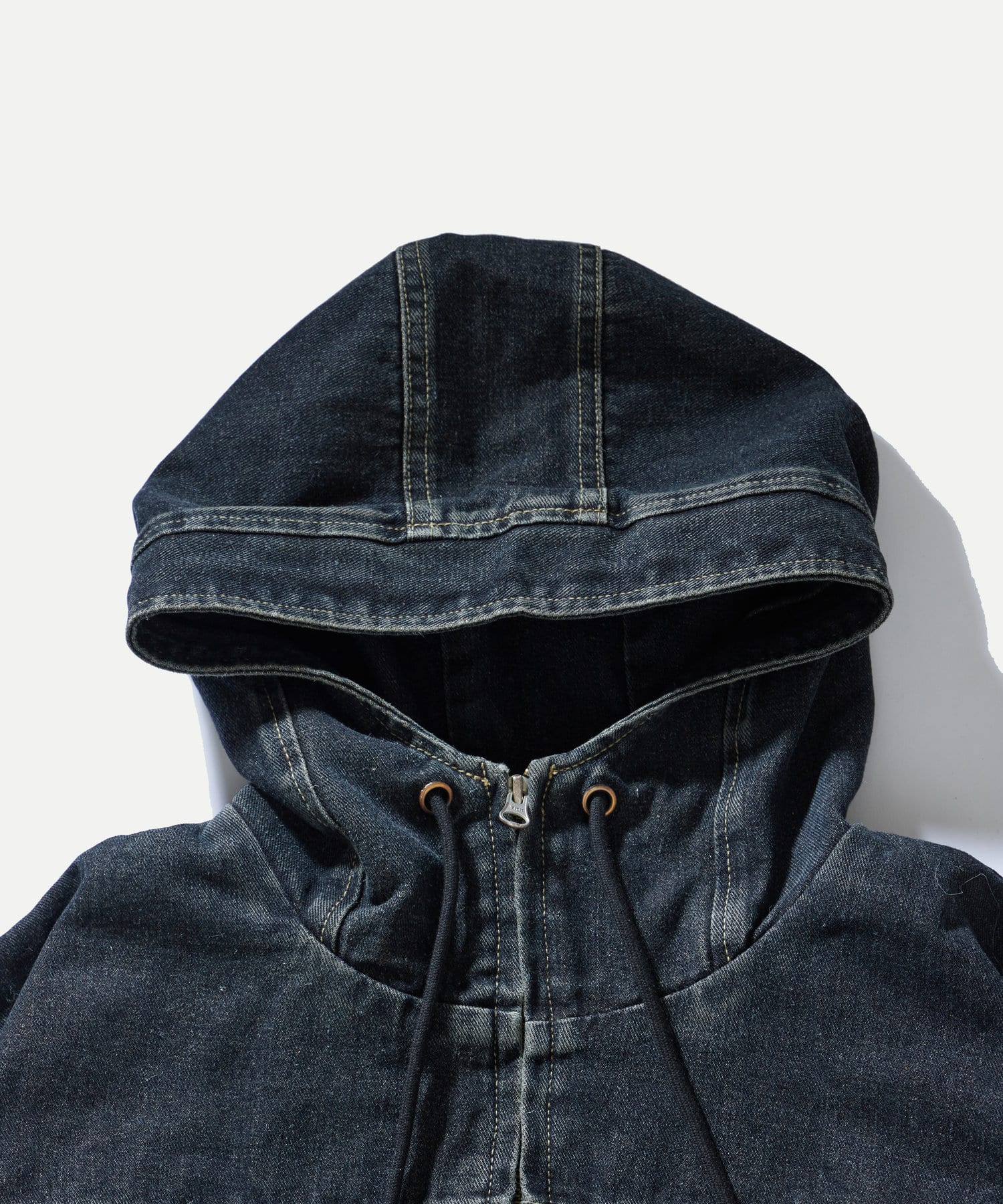 ヴィンテージライクな加工感がポイント!ジップパーカータイプのデニムブルゾン。