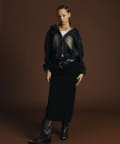 ・ジップを開けて羽織としてはもちろん、閉じた状態で下だけ開けたスリットのような着方もおすすめ。