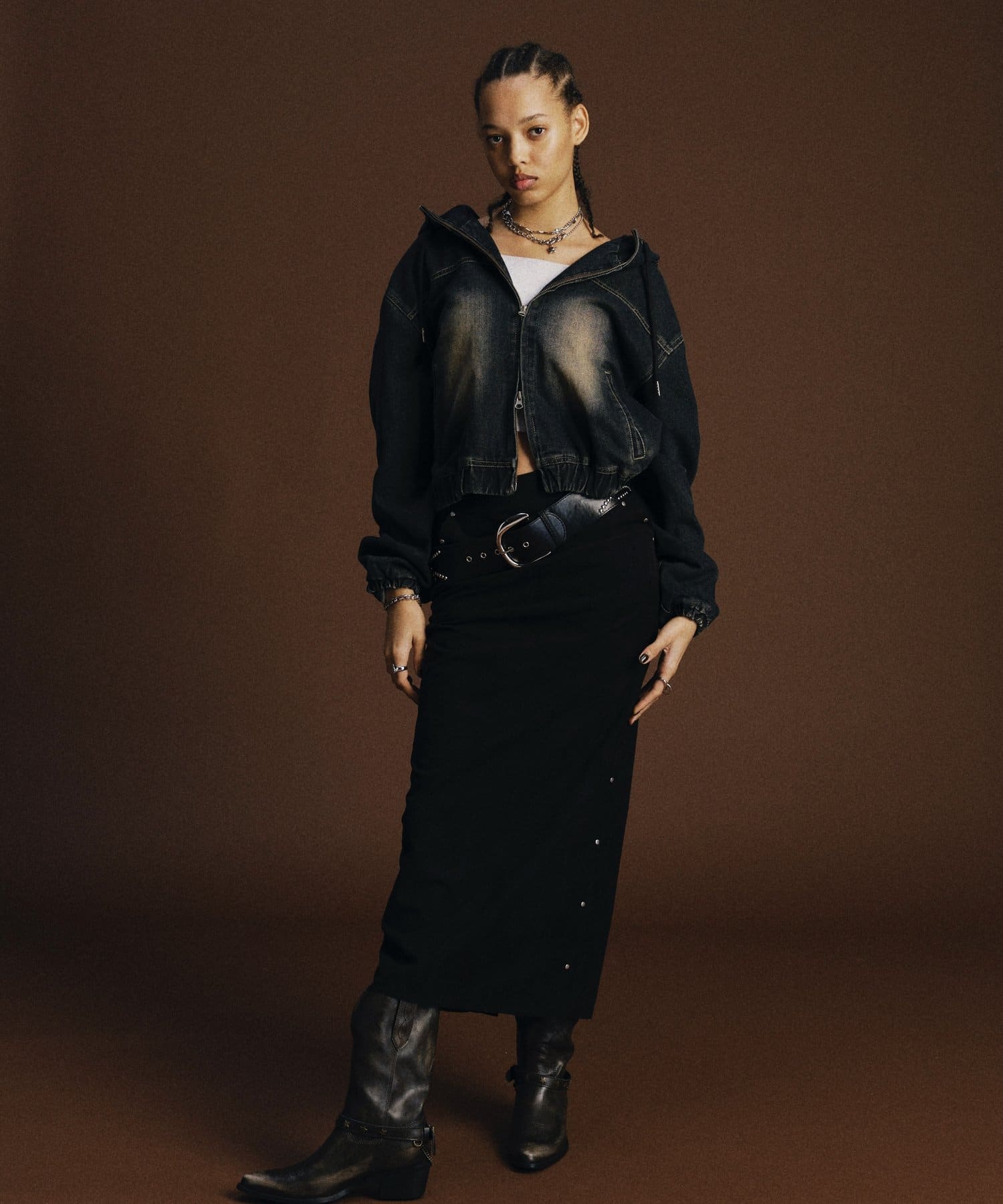 ・加工感を活かし、キレイめアイテムと合わせたMIXコーデがおすすめ。
