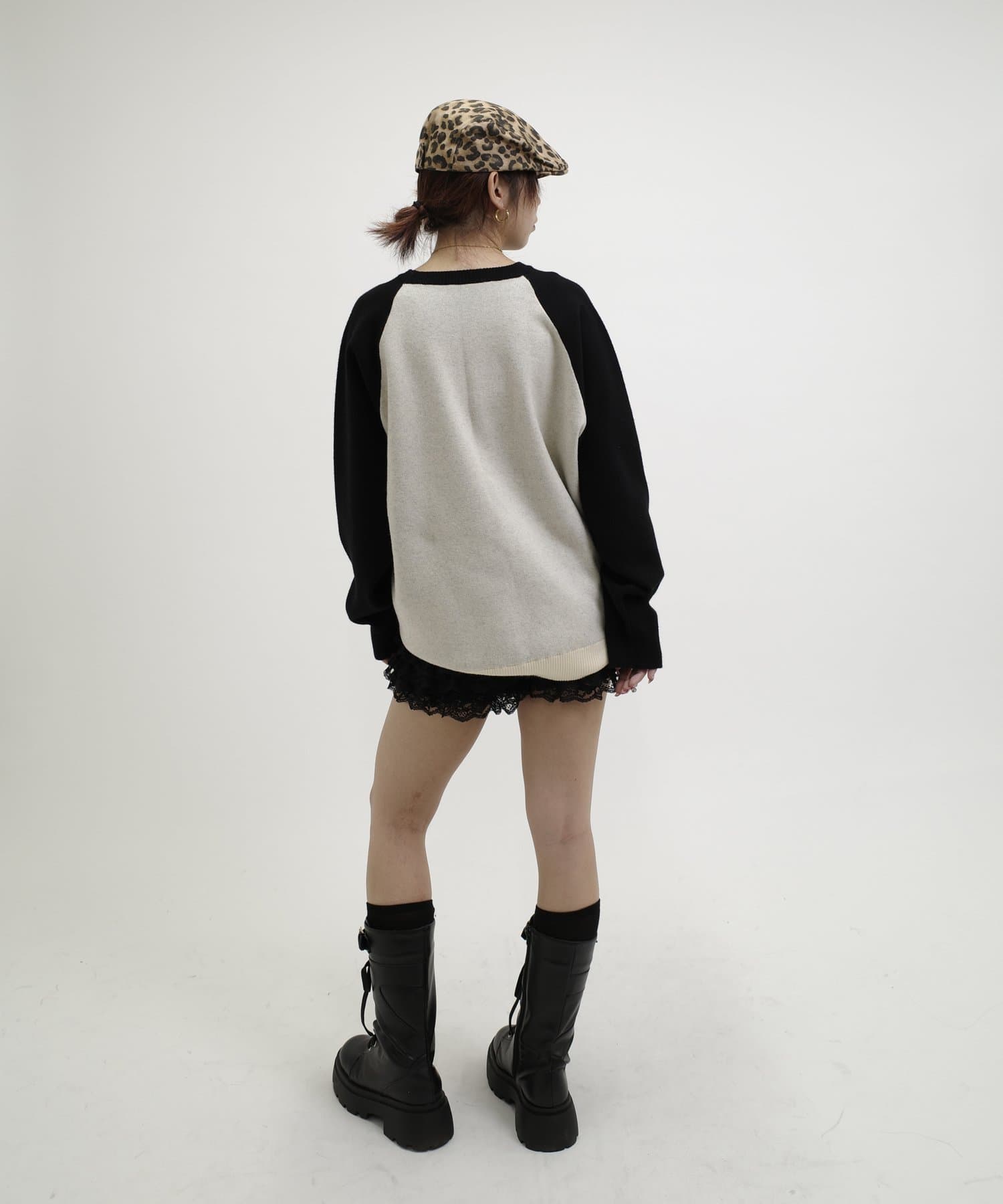 ・袖の切り替えがアクセント!1枚で完成するラグランニット。