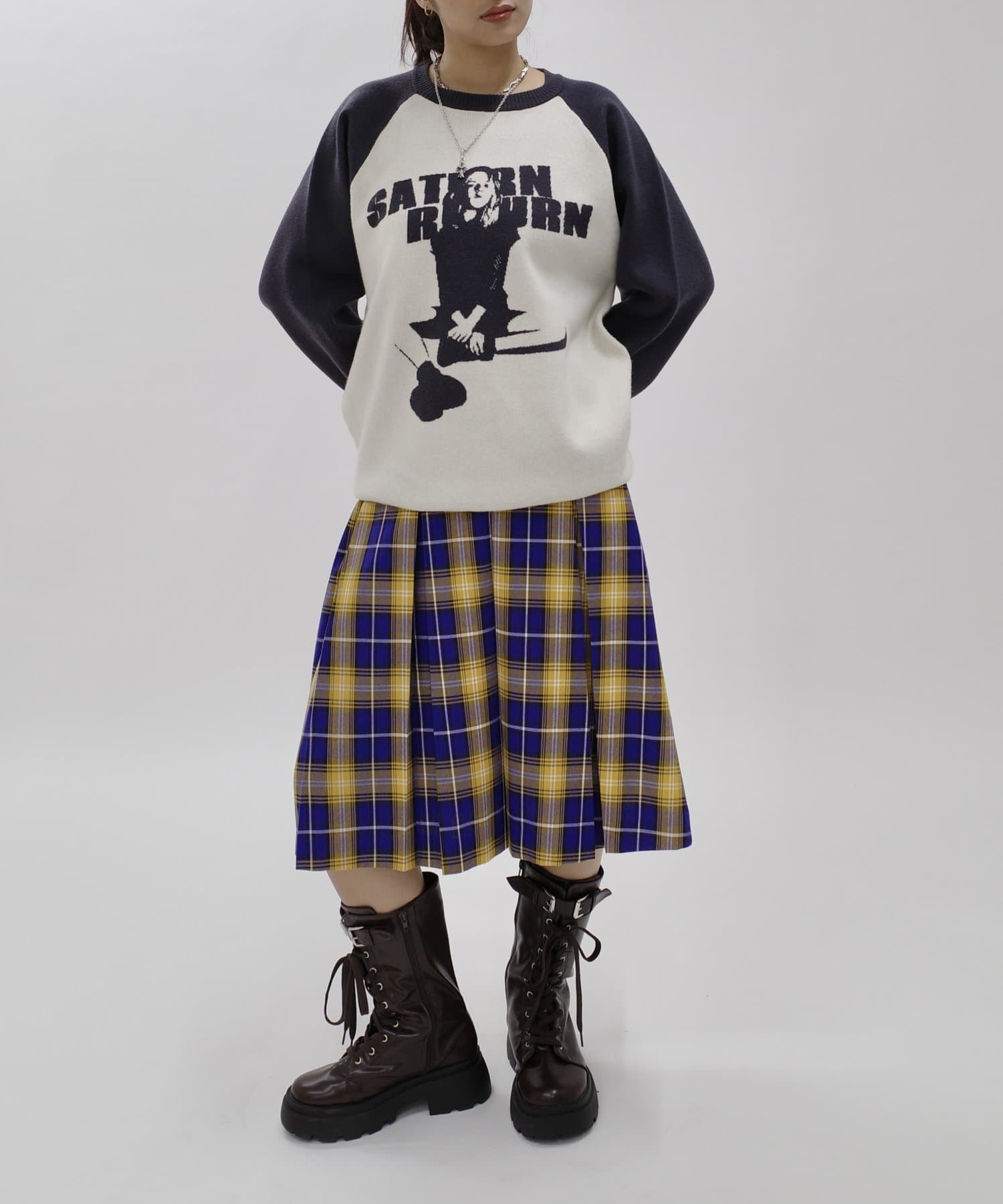 今季トレンドのチェックスカートでスクールライクな雰囲気に、