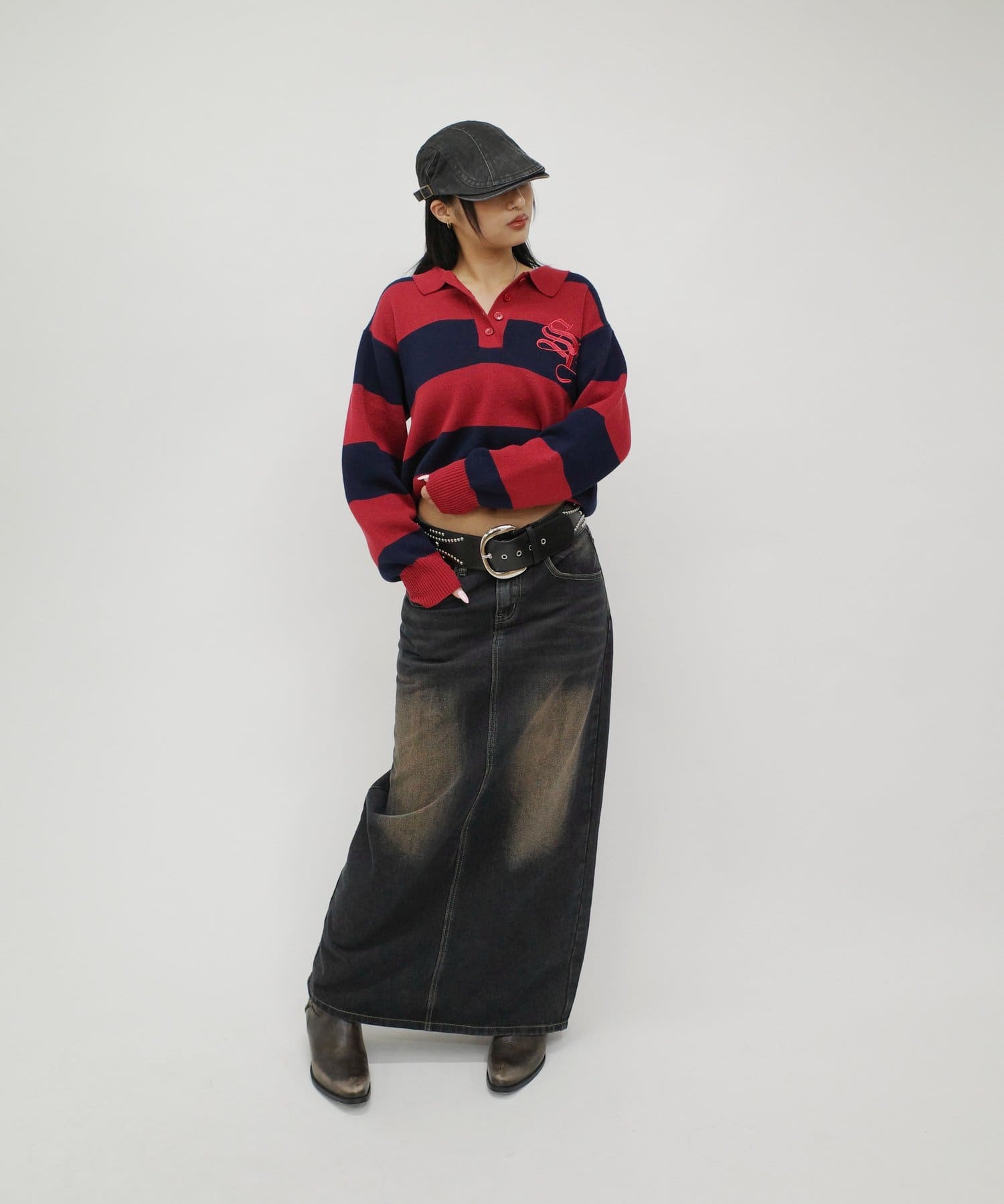 • 160cm/骨格ナチュラルSK:オーバーダイデニムロングスカート