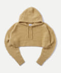 フードの存在感がポイントのニット